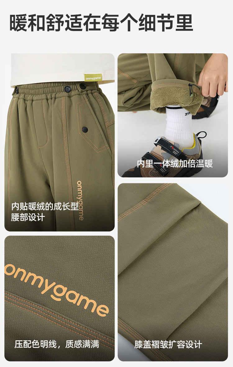 onmygame【明线彩壳裤】男童加绒长裤保暖防泼水裤子25秋冬新款