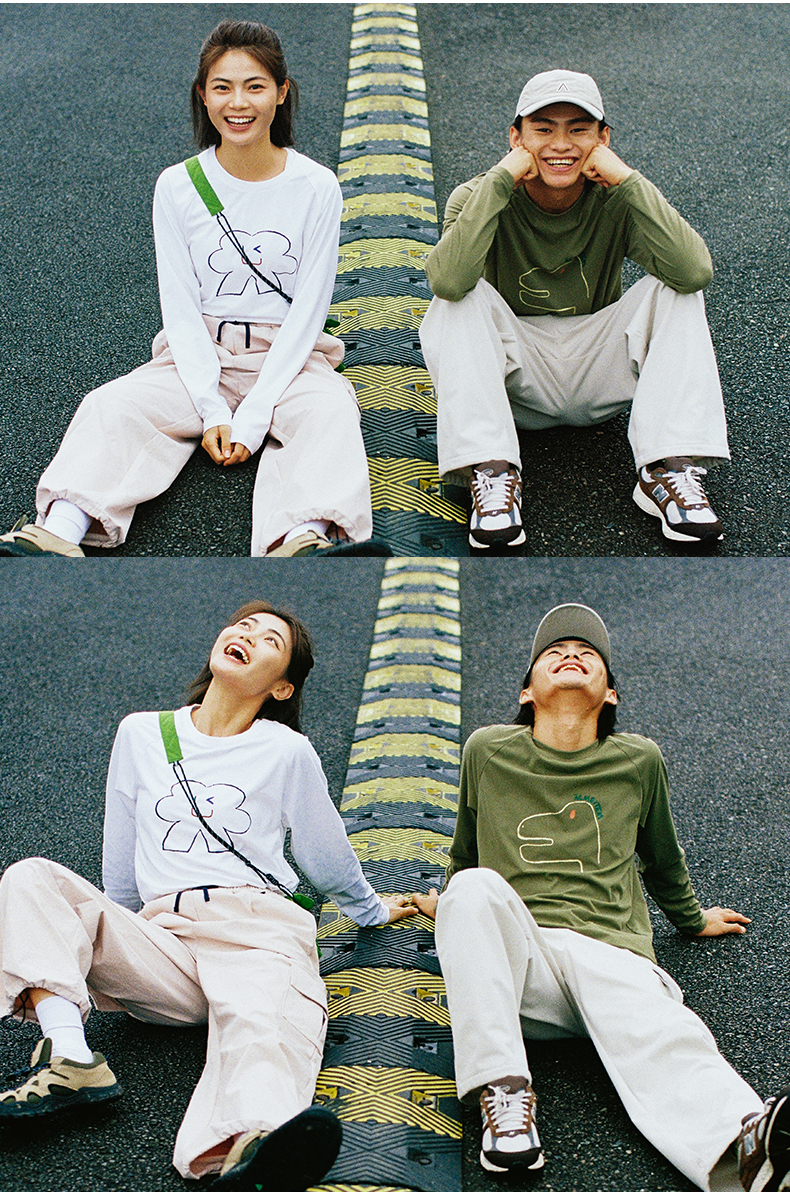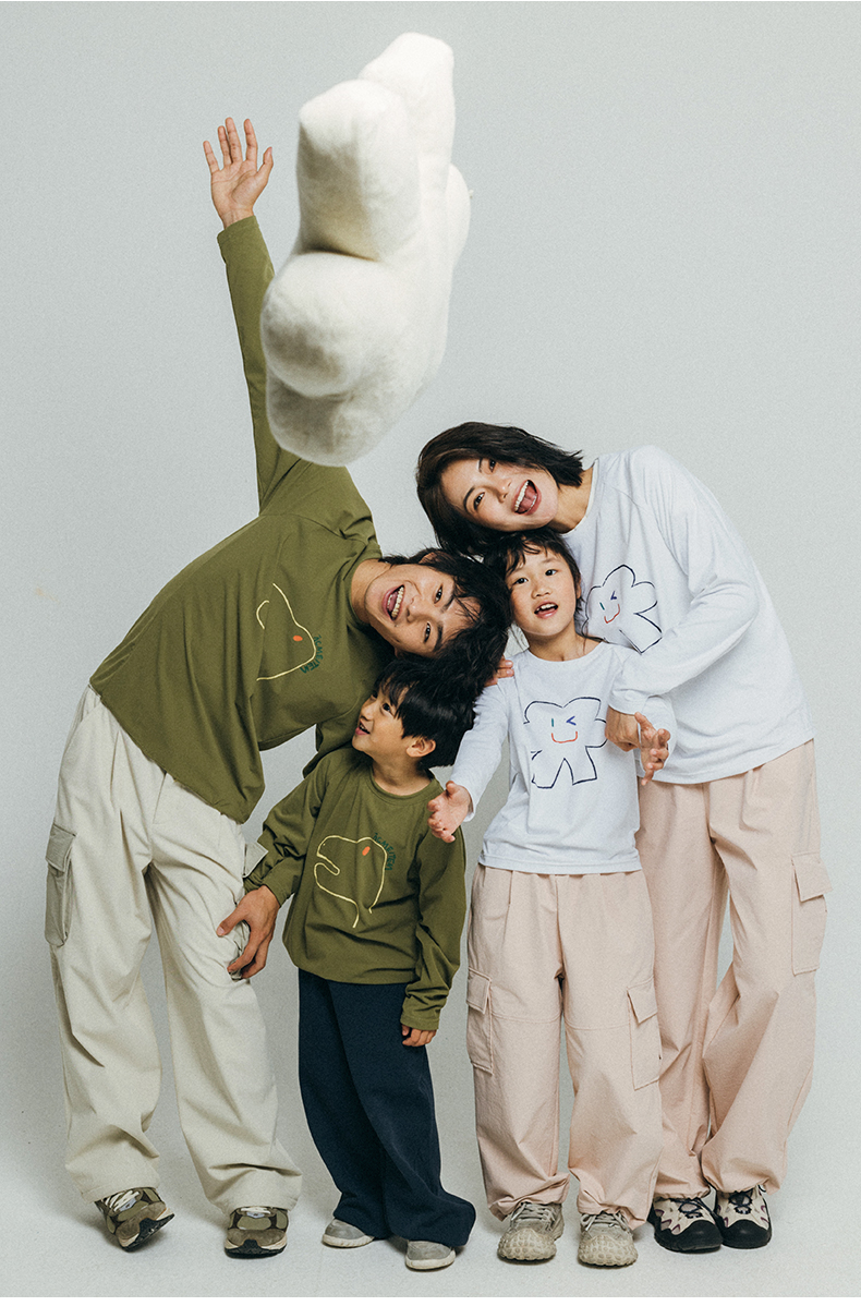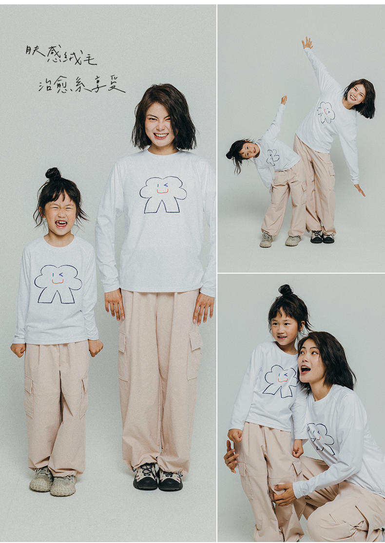 【福利特惠】ACMEITEM爱棵米 户外亲子趣味印花长袖T恤圆领宽松磨毛打底衫男女GAF3341455E GAF3340058E