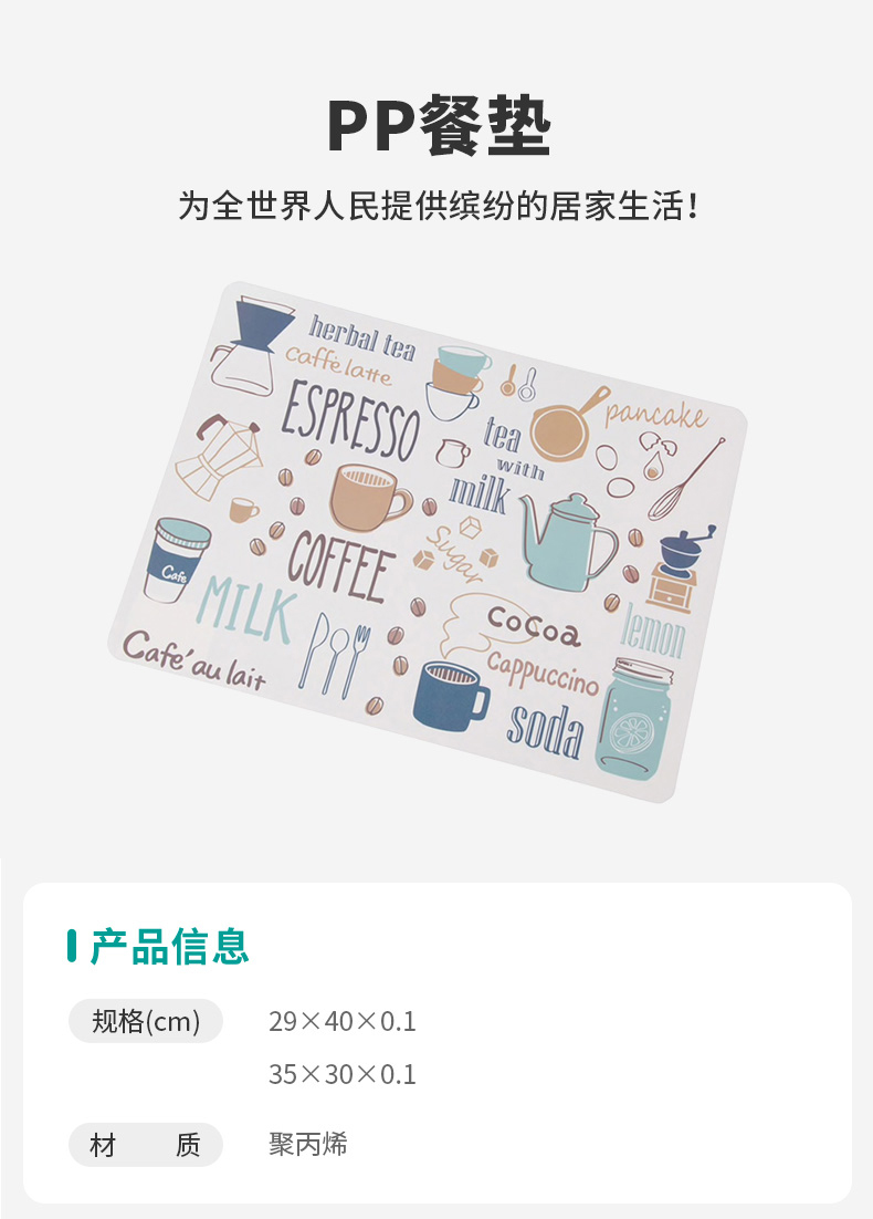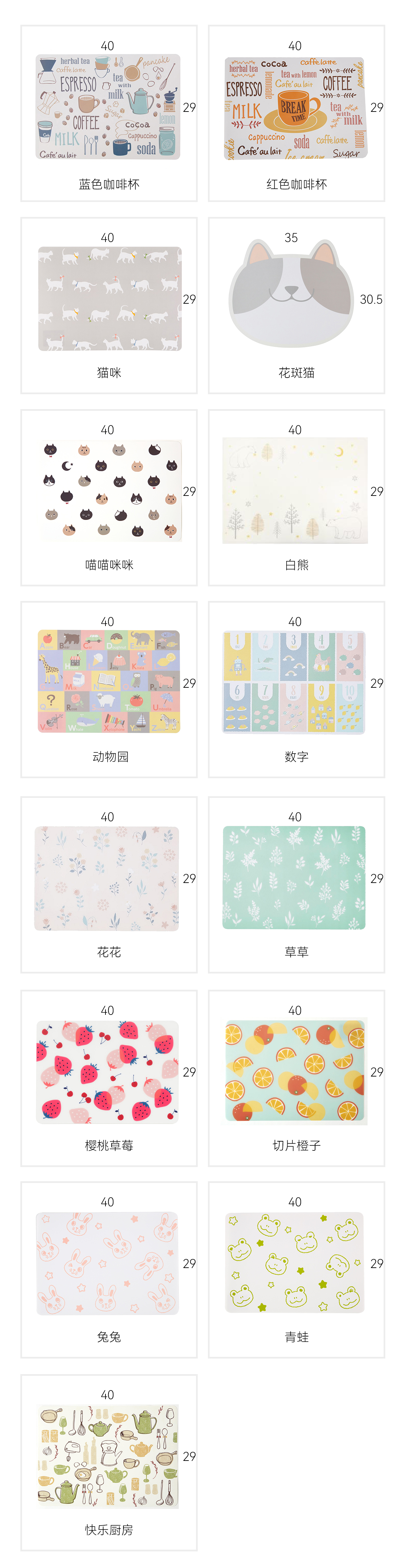 PP餐垫 猫咪/动物园/花斑猫/咖啡杯/兔兔/青蛙/白熊/数字/草草/花花/快乐厨房/春花烂漫/樱桃草莓/切片橙子/喵喵咪咪
