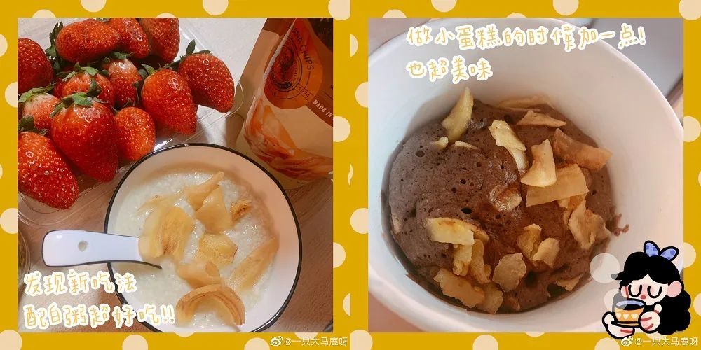 ✅除了直接吃,香蕉大师香蕉片还可以煮粥、配冰淇淋,平时喝酸奶时放几片进去,你会非常惊喜!