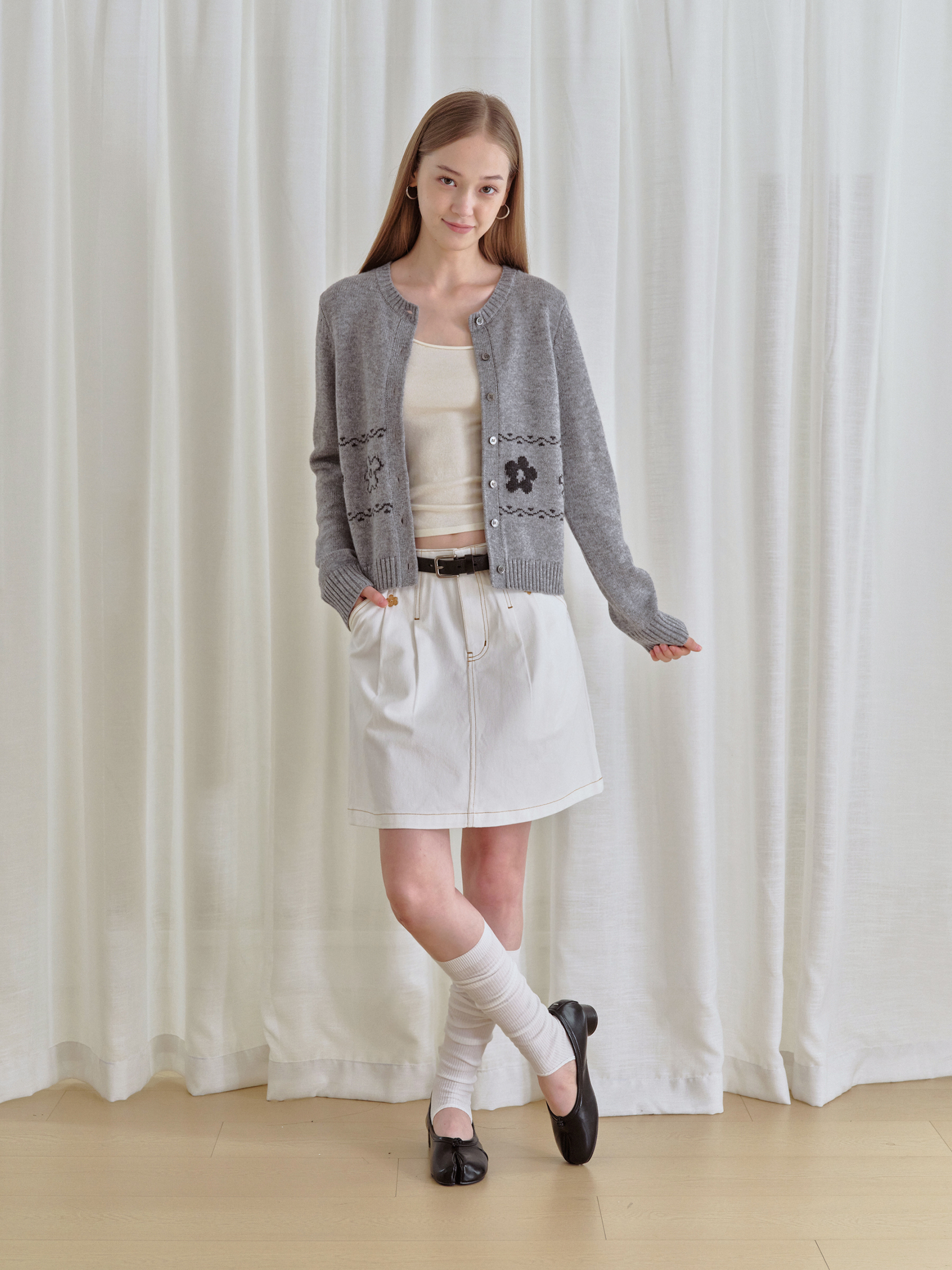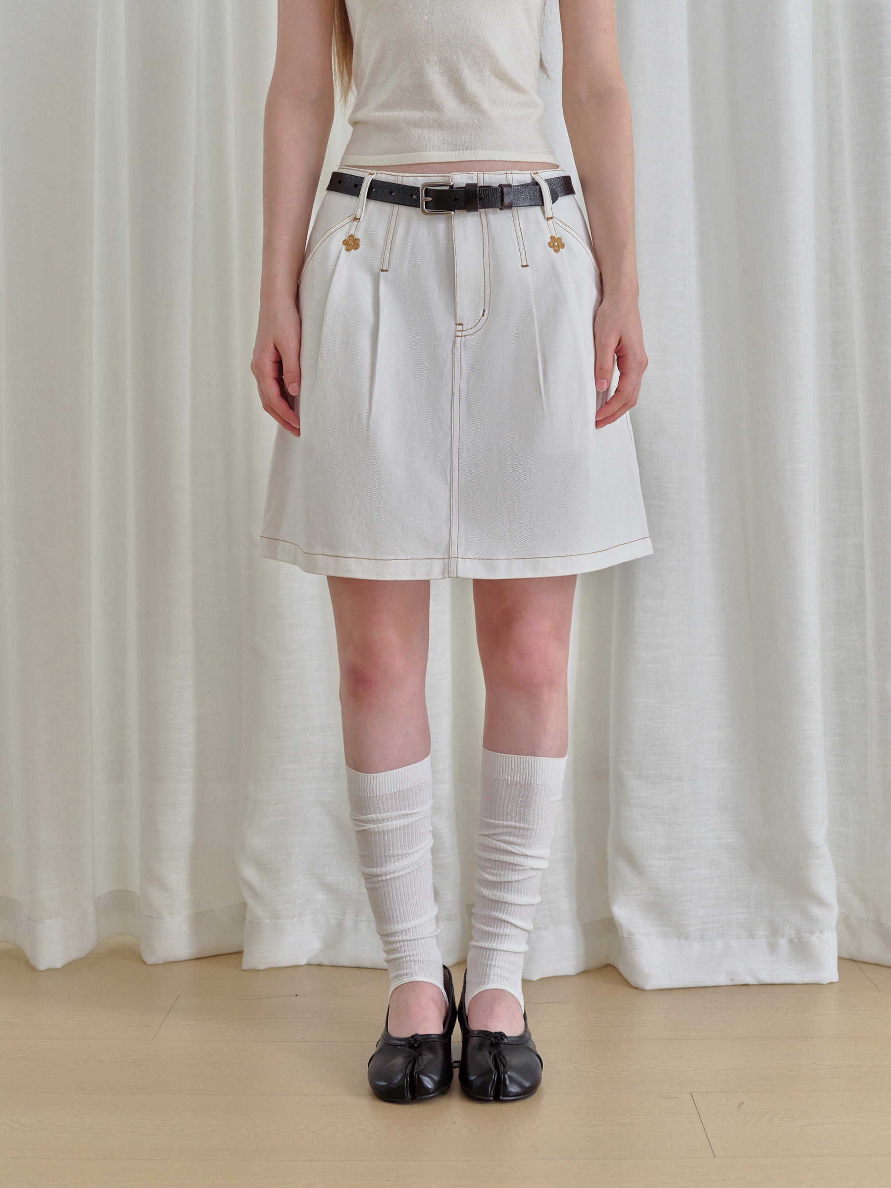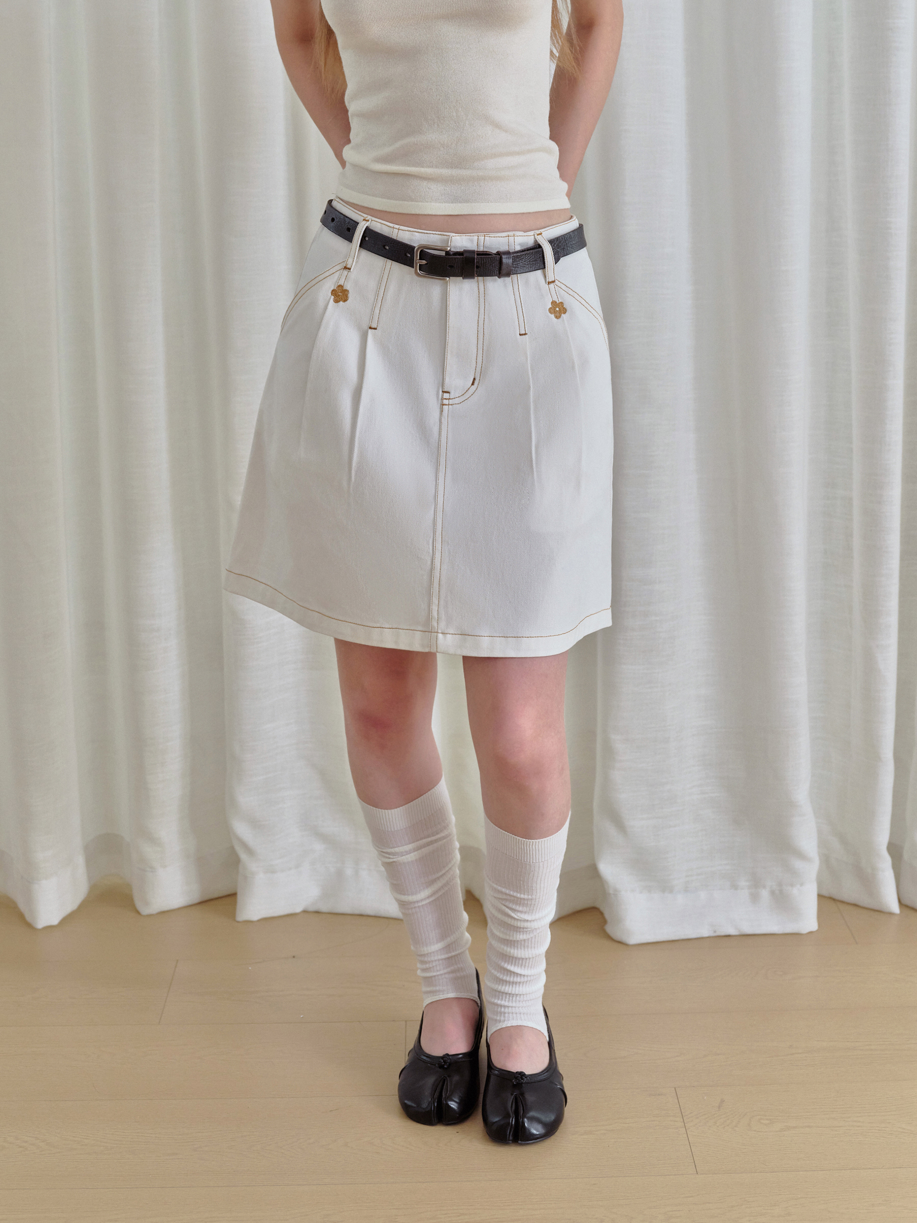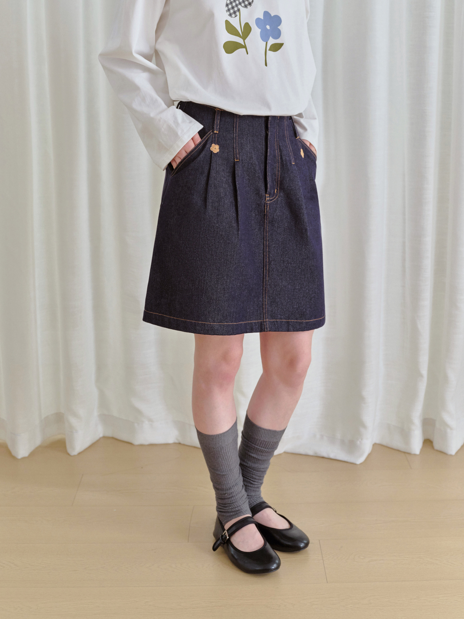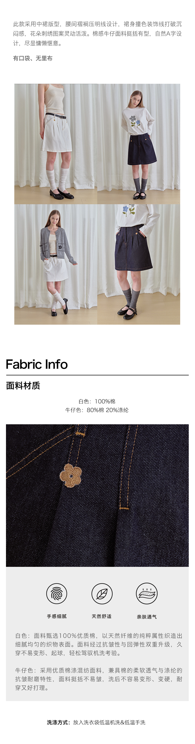 ForPoem 现货 25/FW原创设计复古刺绣花朵明线牛仔短裙女百搭高腰A字半身裙