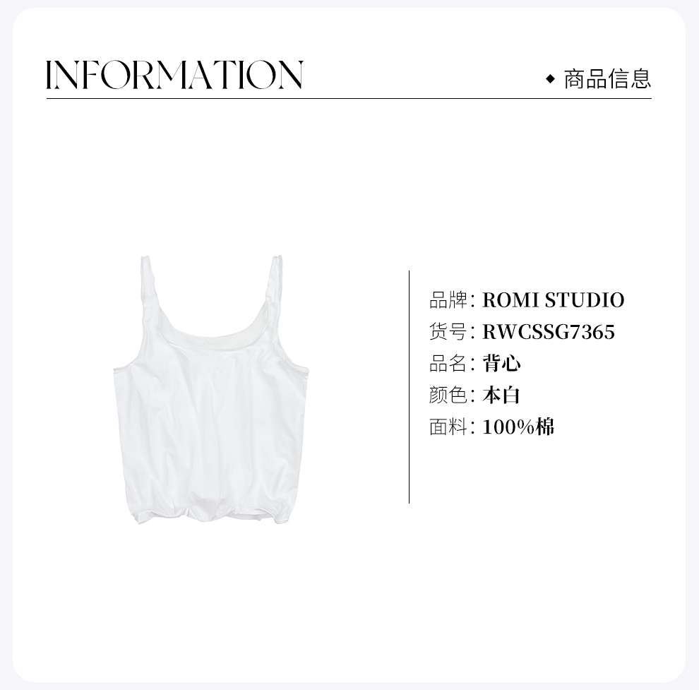 ROMI STUDIO100%棉砂洗加软宽松卷边铝丝打底内搭背心&短袖T恤RWCSSG7365