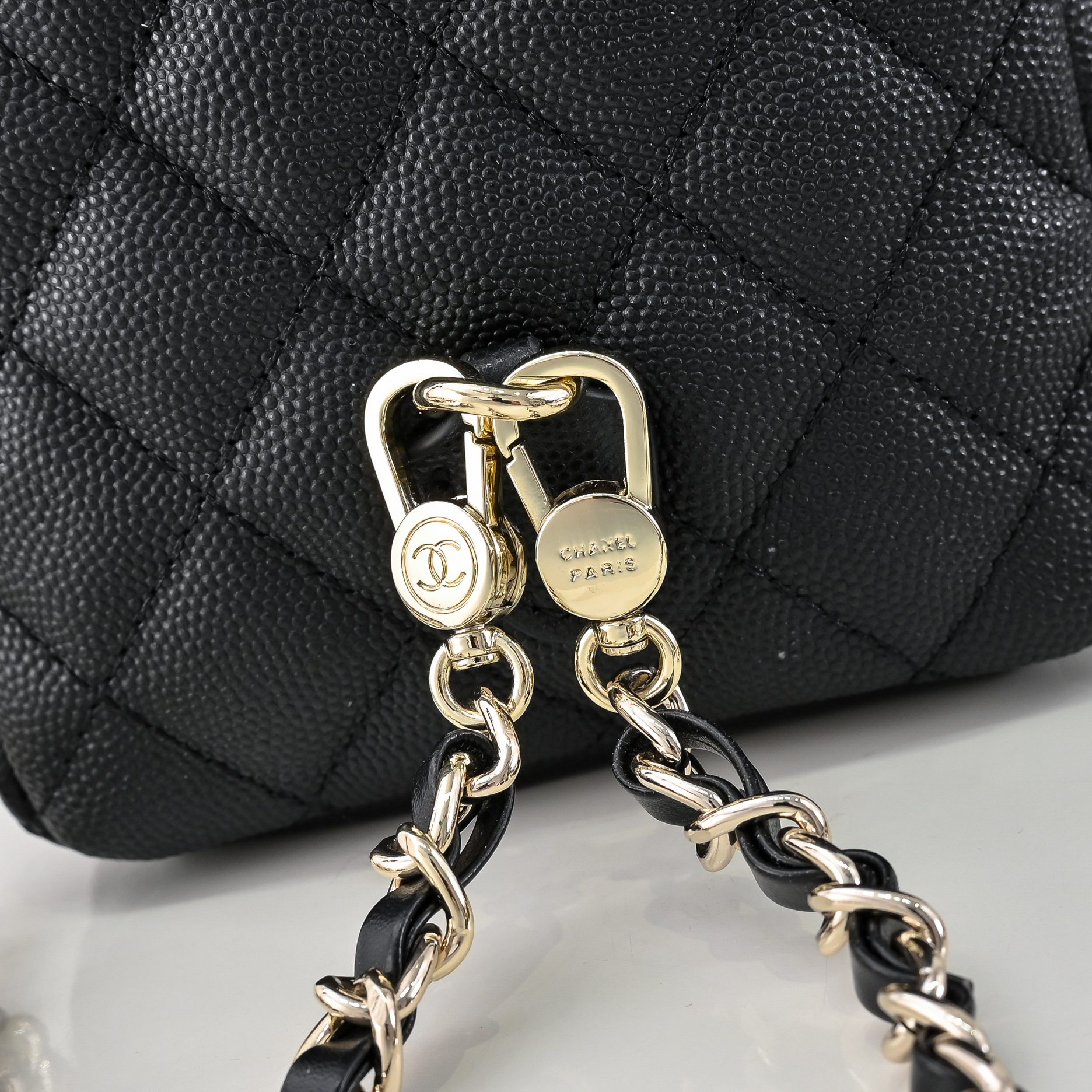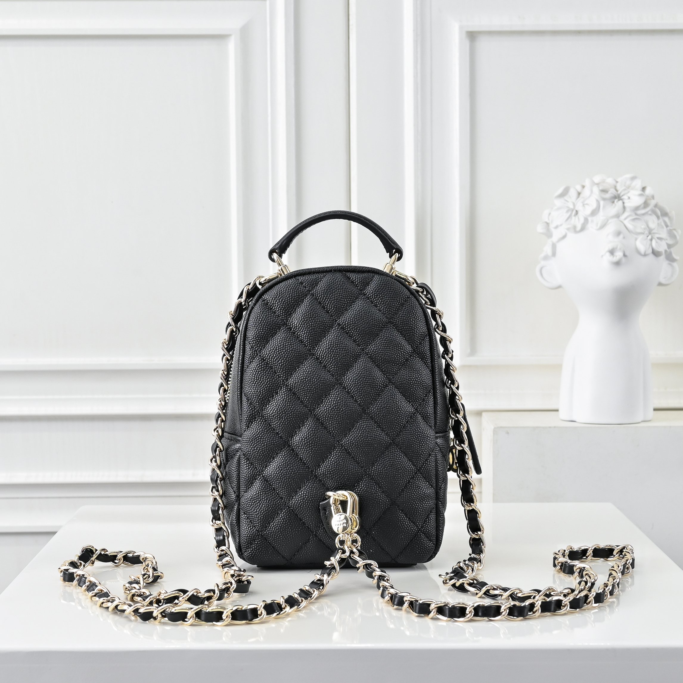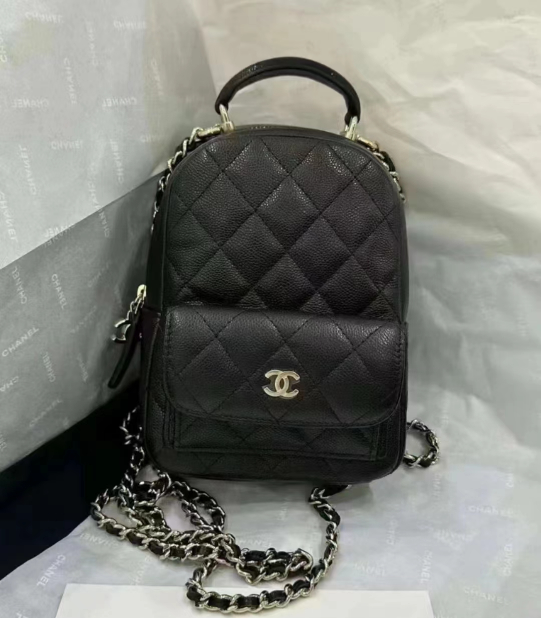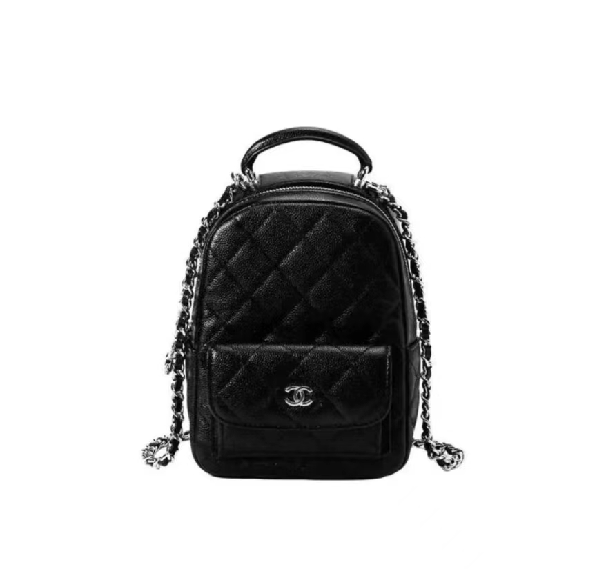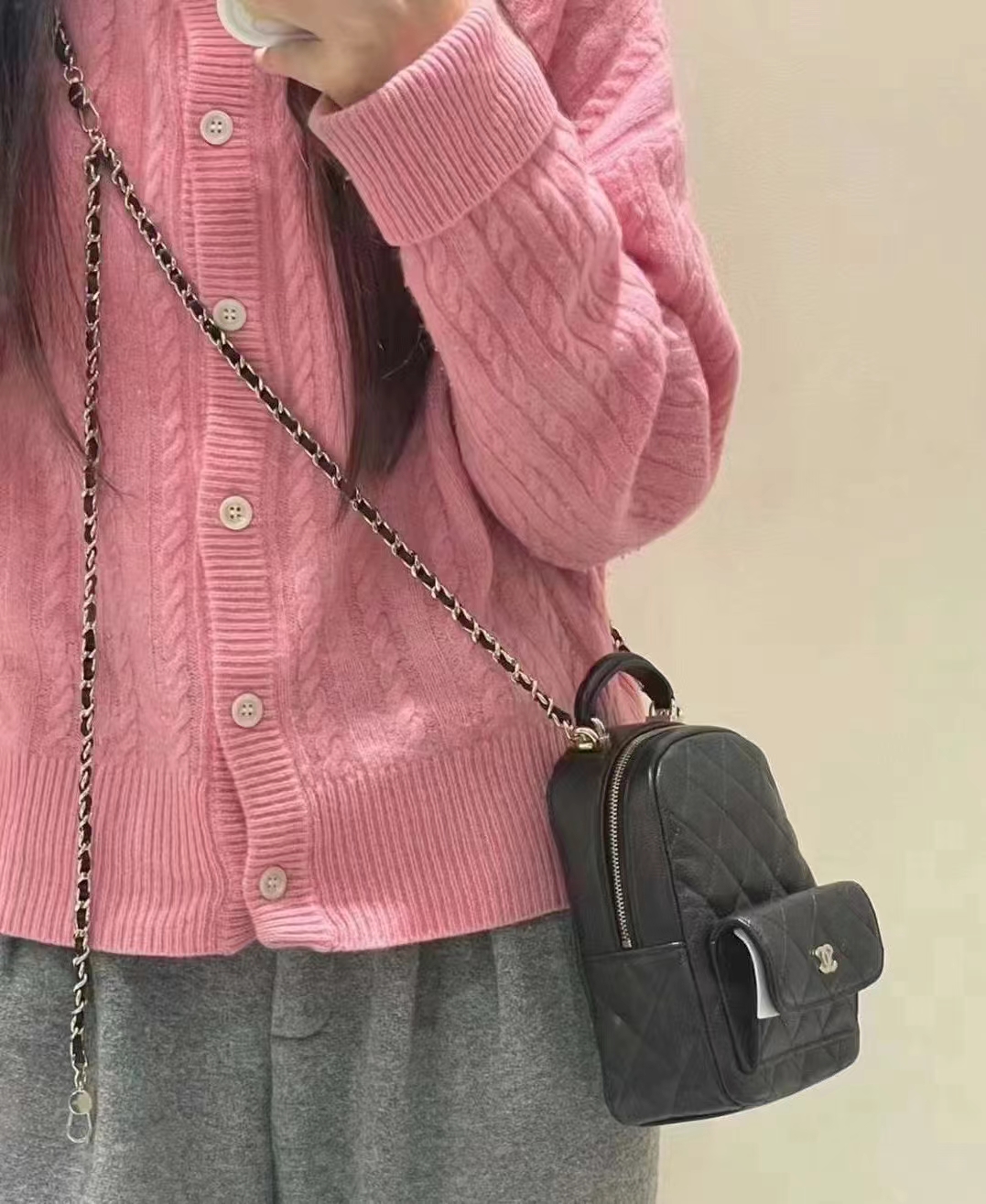 香奶奶 24p 早春度假系列 银扣链条 背包双肩包 女款 黑色(HH)