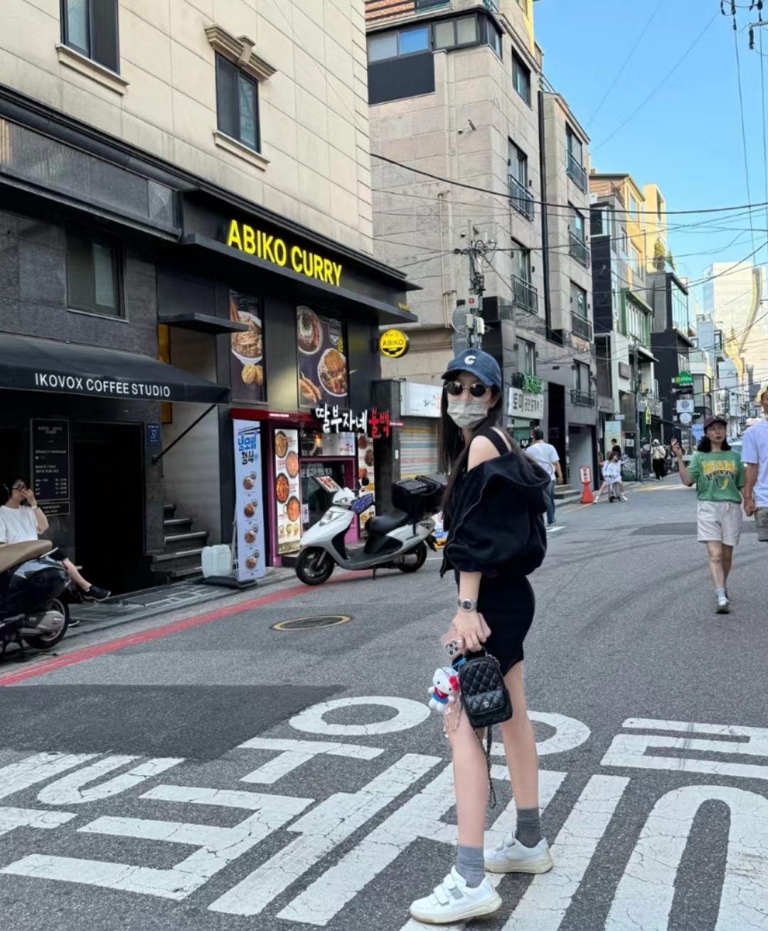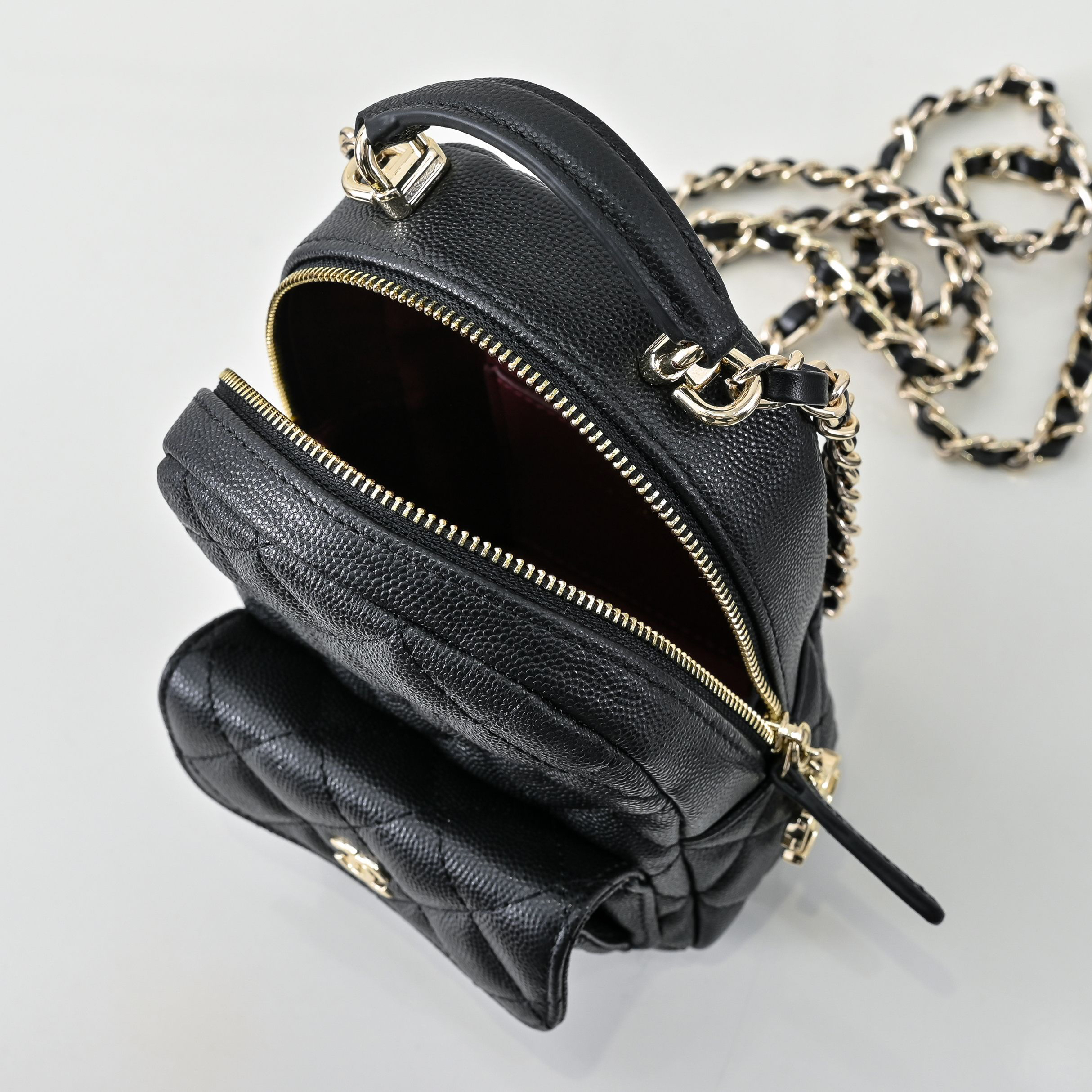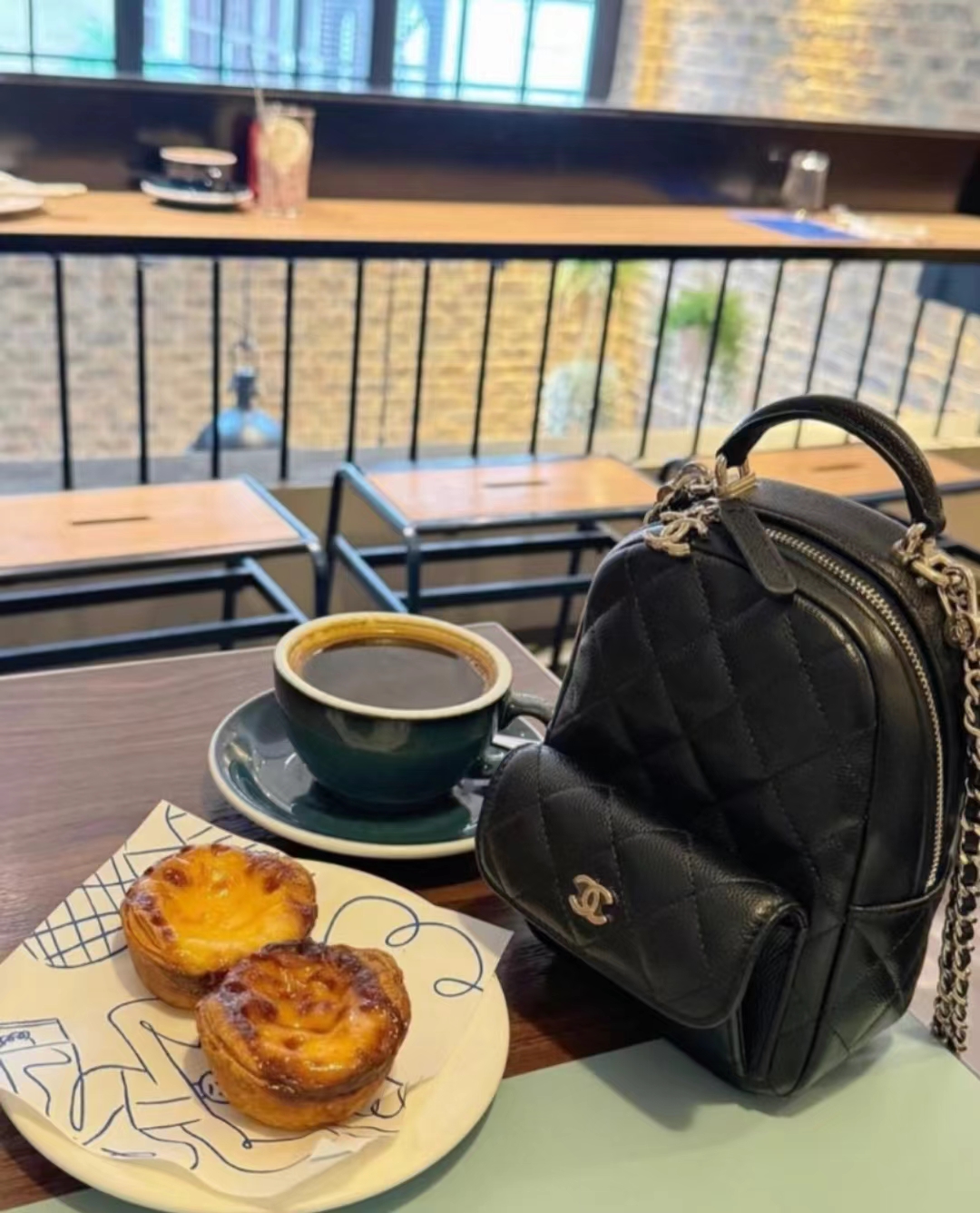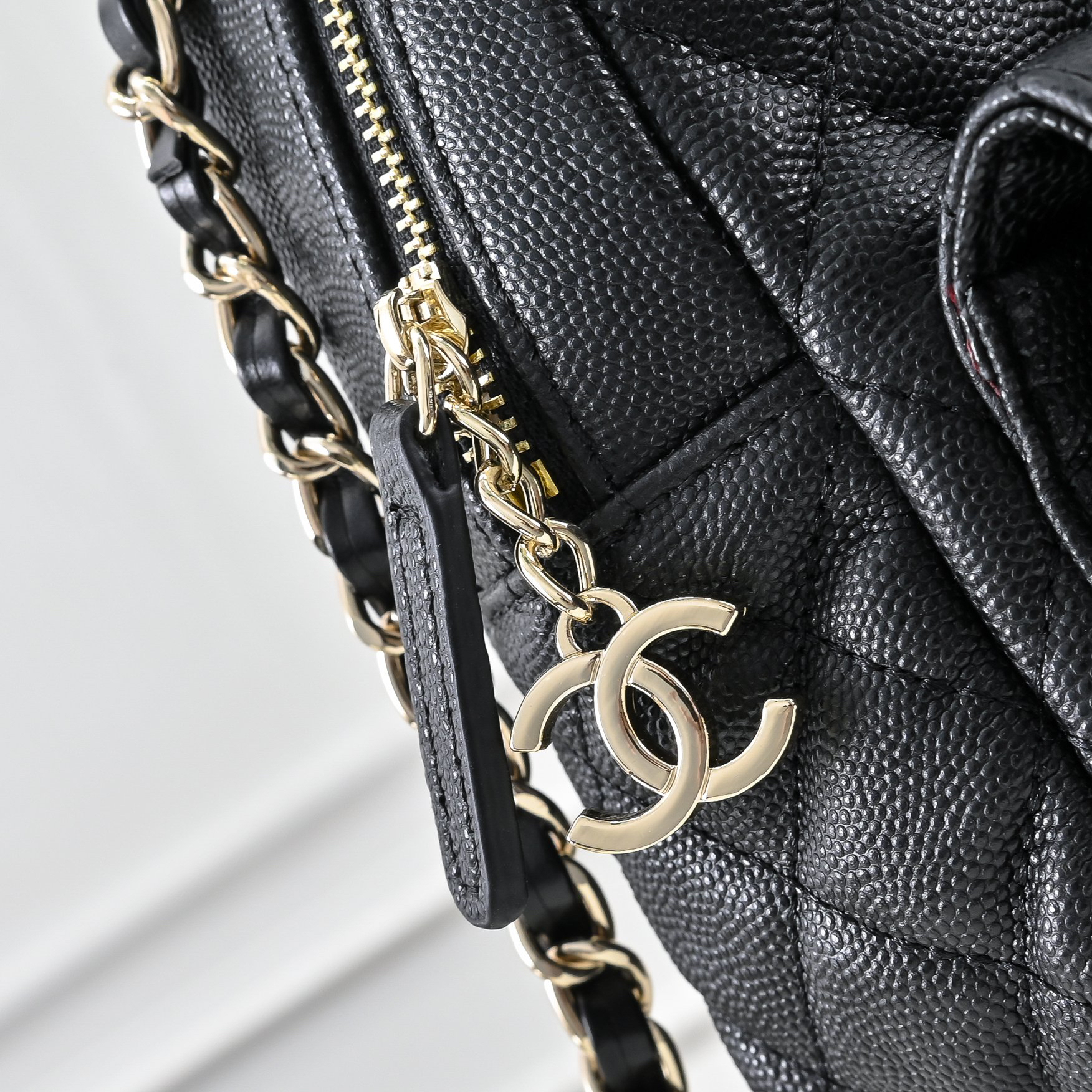香奶奶 24p 早春度假系列 银扣链条 背包双肩包 女款 黑色(HH)