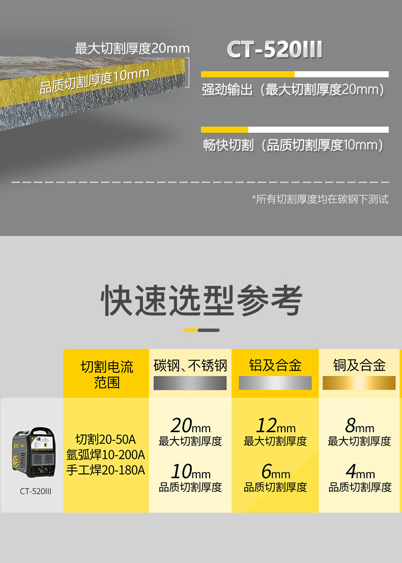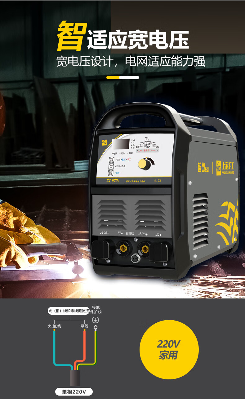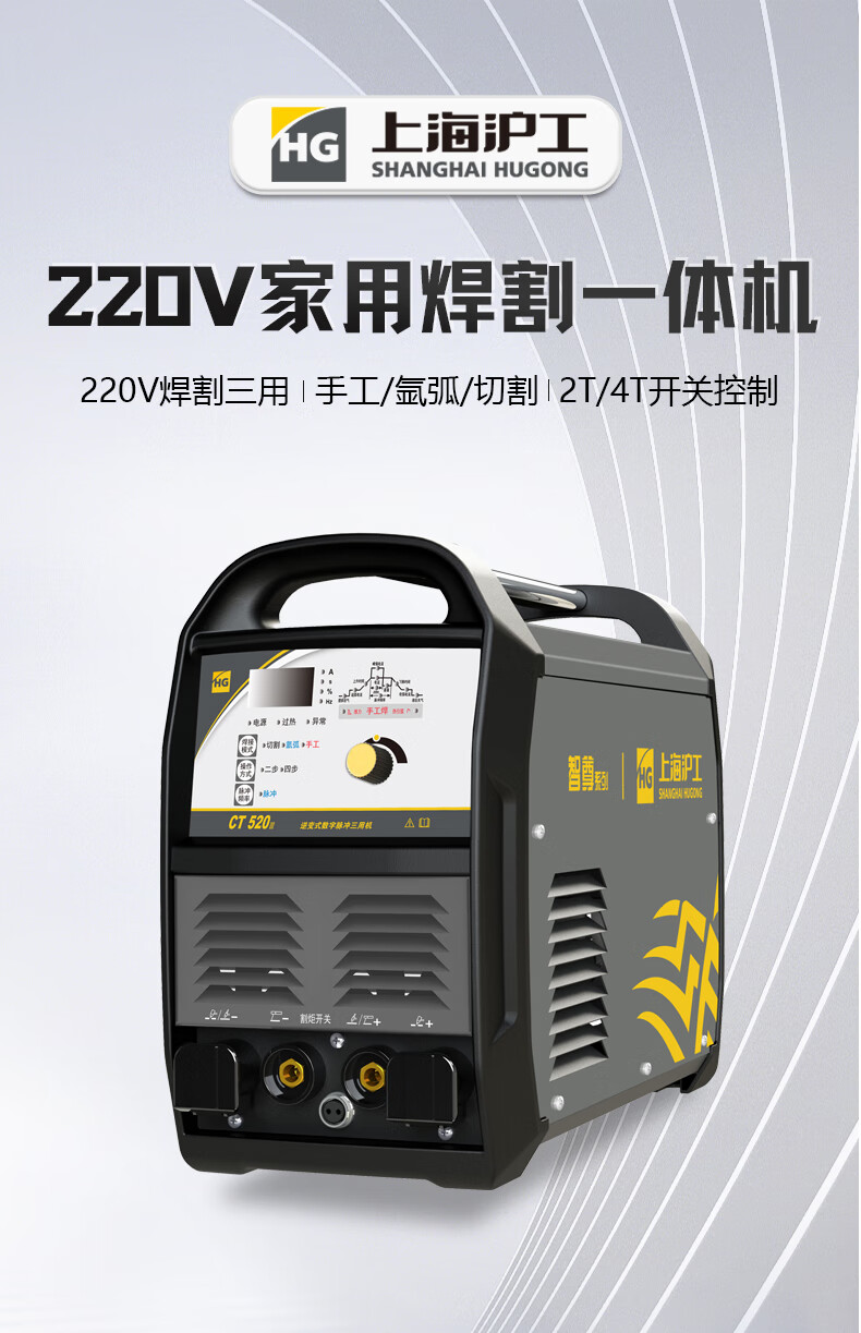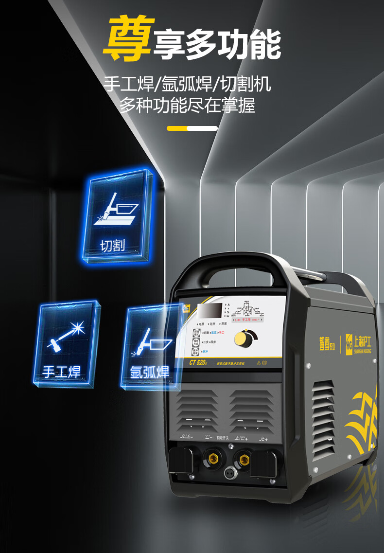上海沪工CT-520 III多功能机220v等离子切割机,手工焊,氩弧焊,脉冲氩弧焊 多功能机,适配PT-31切割枪。