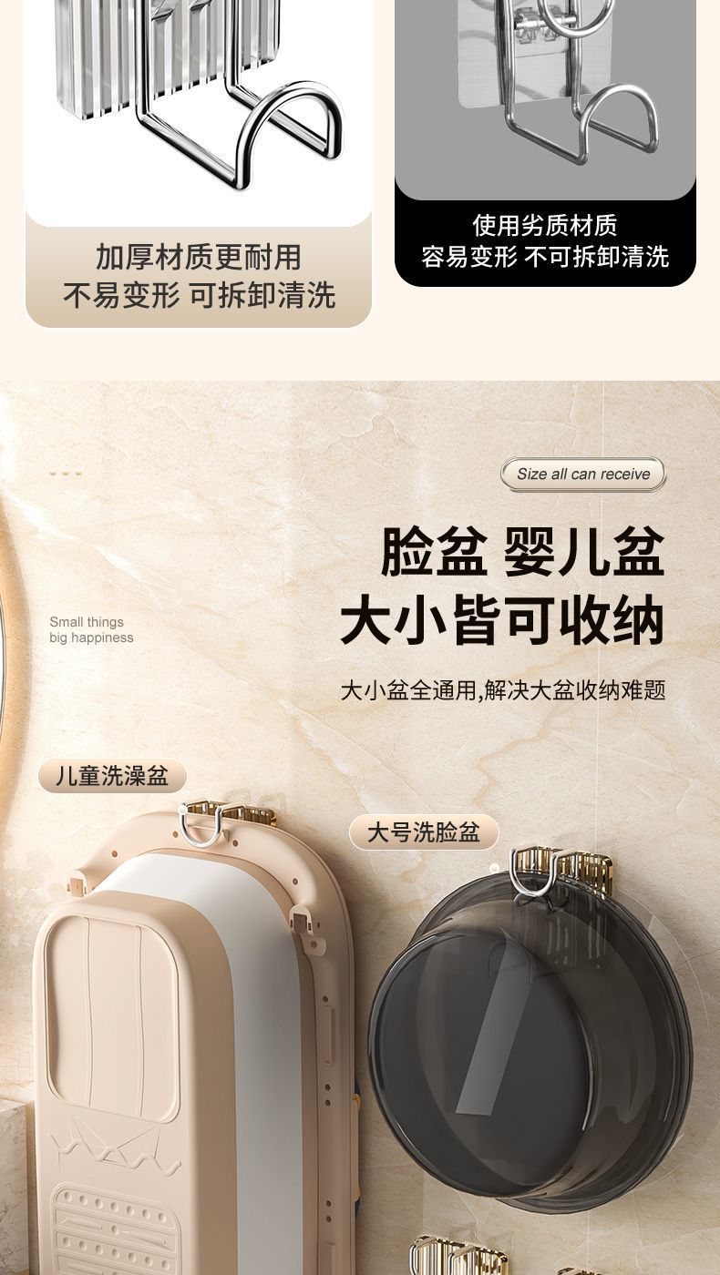 【9.9/任选2件,少拍不发货!】不锈钢脸盆挂钩免打孔脸盆架宿舍洗脸盆置物架卫生间浴室收纳
