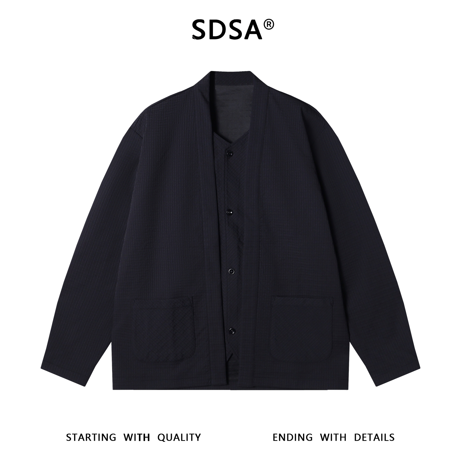 23158SDSA男士秋冬新款痞帅男装纯色提花纽扣开衫假两件夹克百搭外套