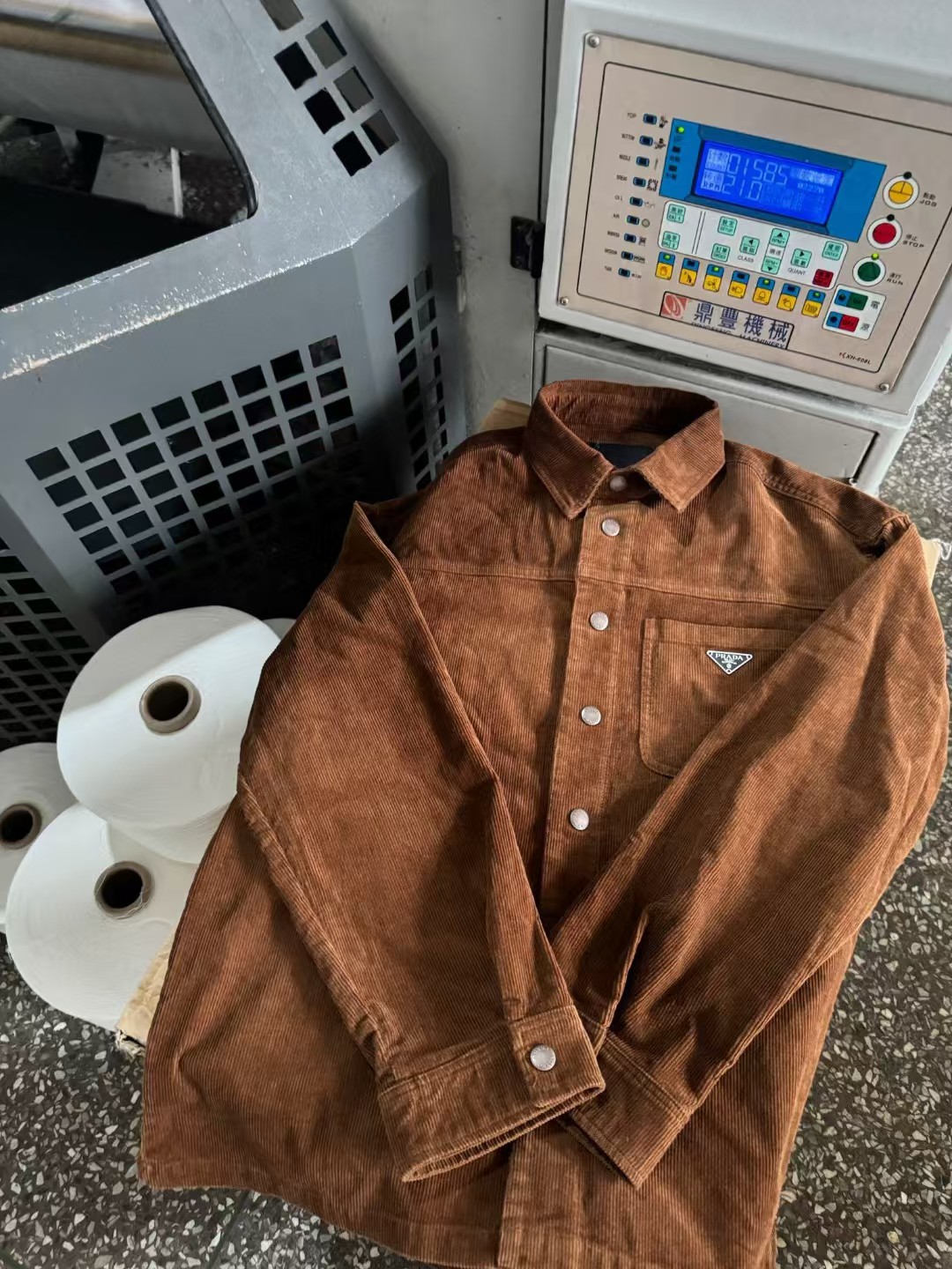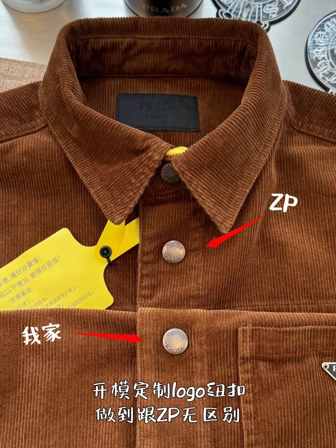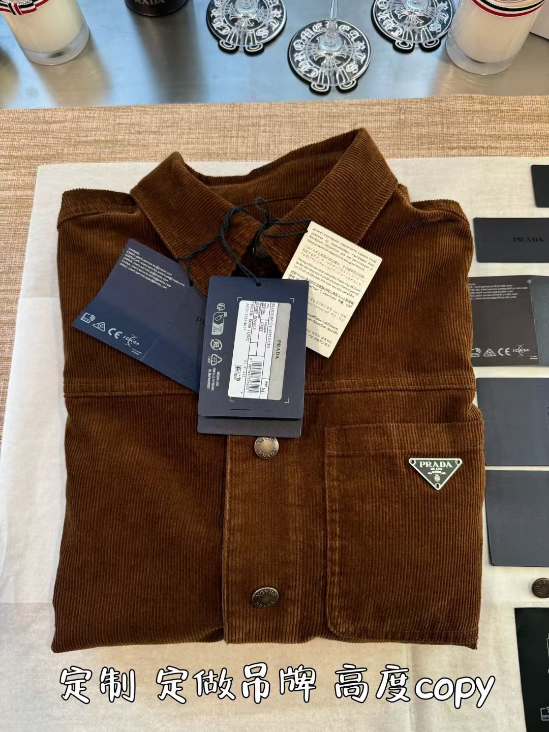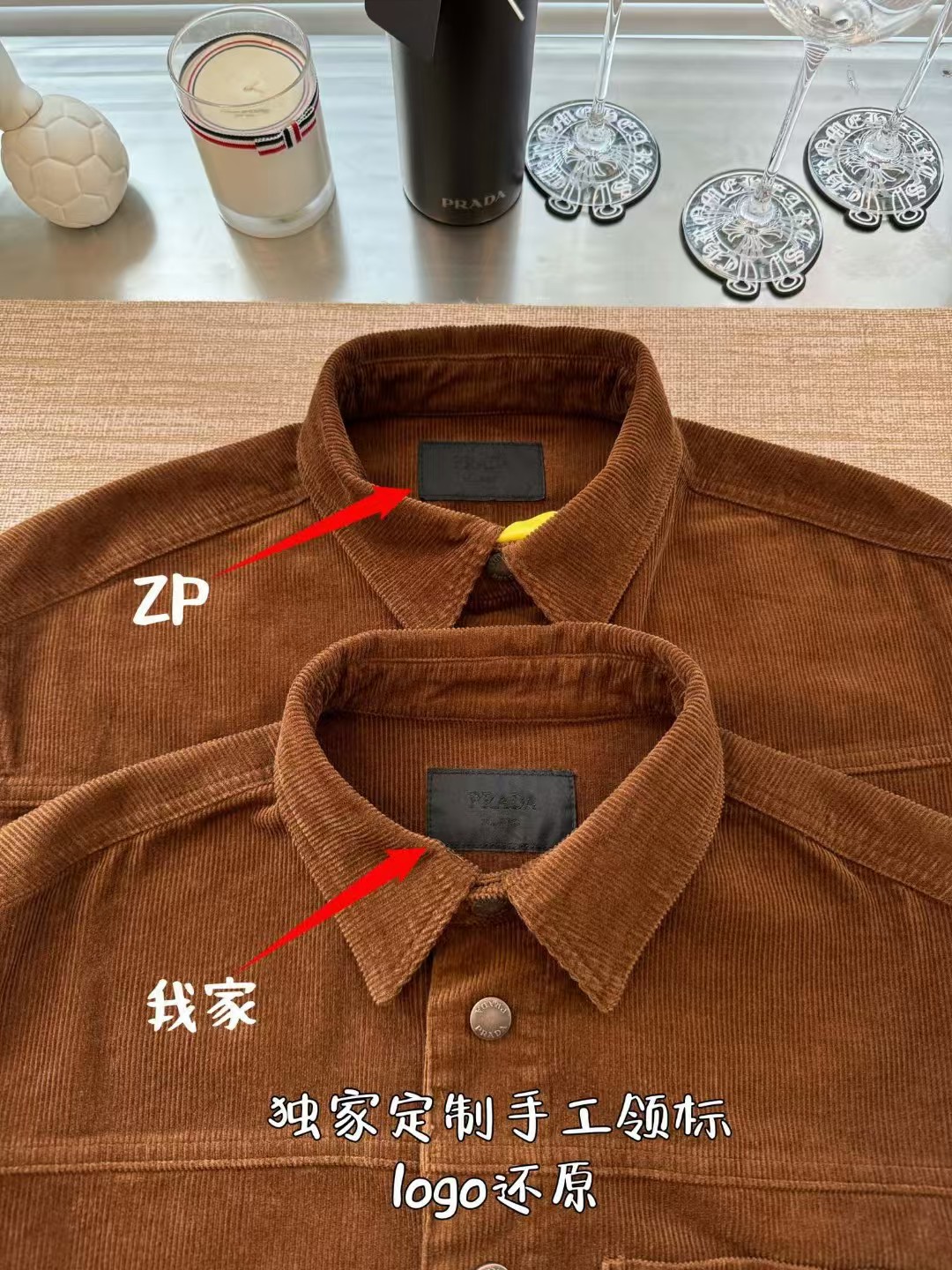 PRADA 24FW 灯芯绒美拉德夹克外套🫡风靡全球美拉德色系 上身很出圈,温暖又深沉,还有大地气息 超适合秋冬穿搭,层次感高级感 直接拉满,整件衣服采用韩国灯芯绒 立体感很强 全身定制开模五金 真正做到1:1copy!!闭眼入 码数:S M L XL