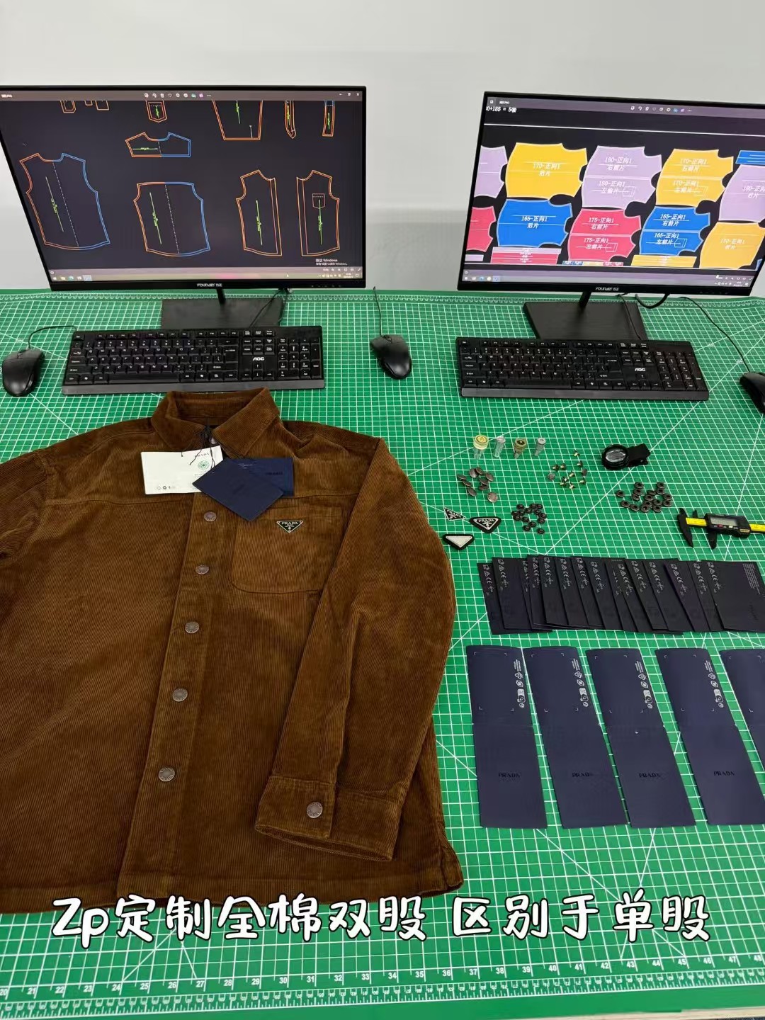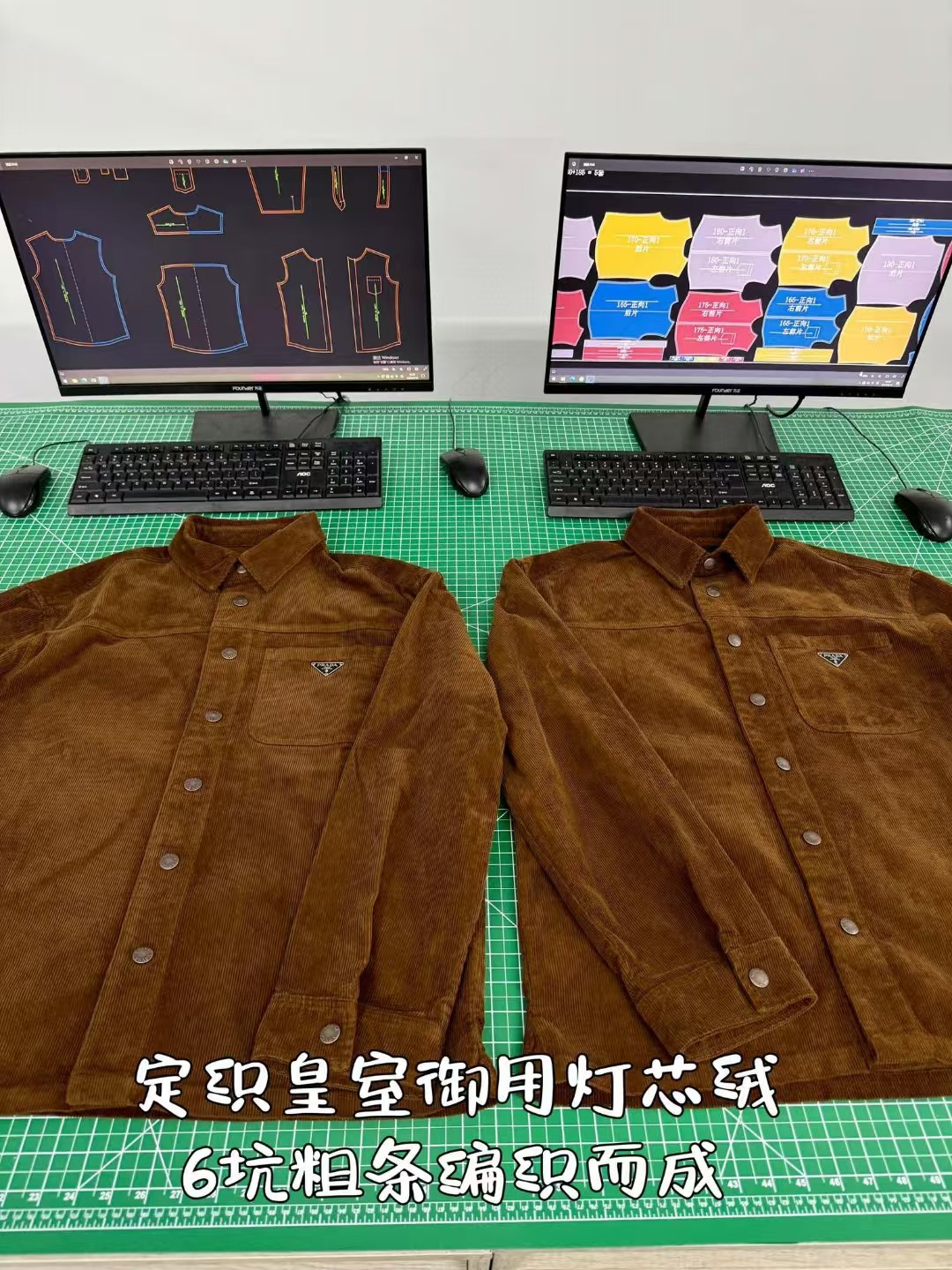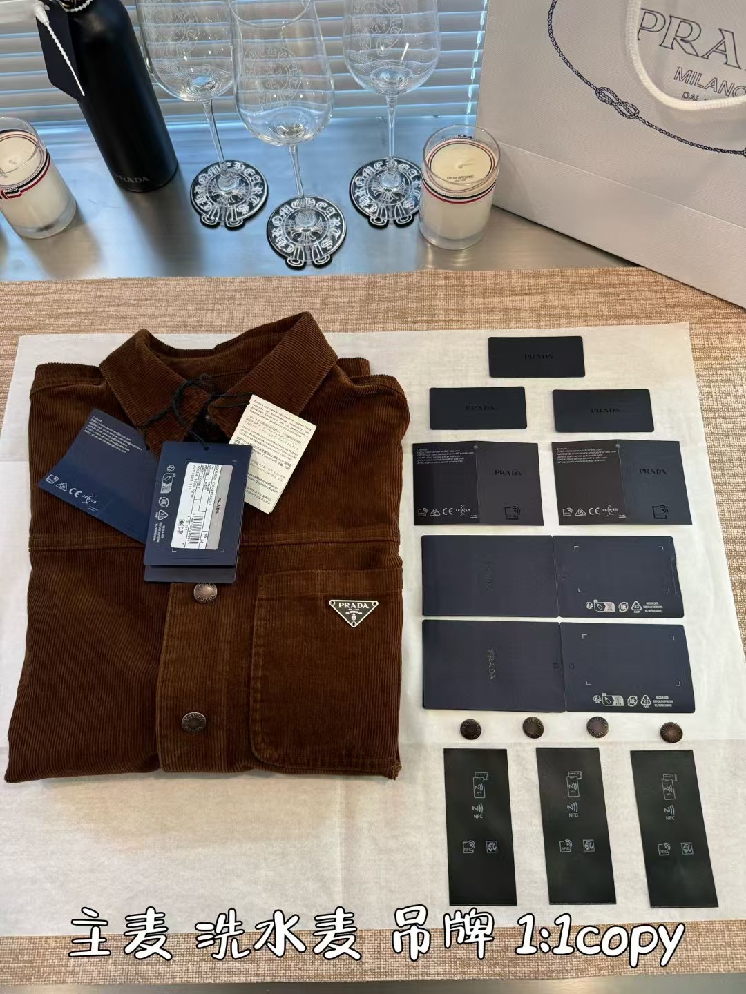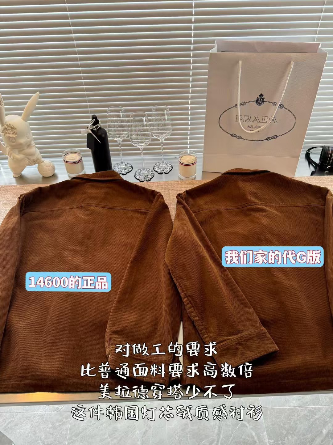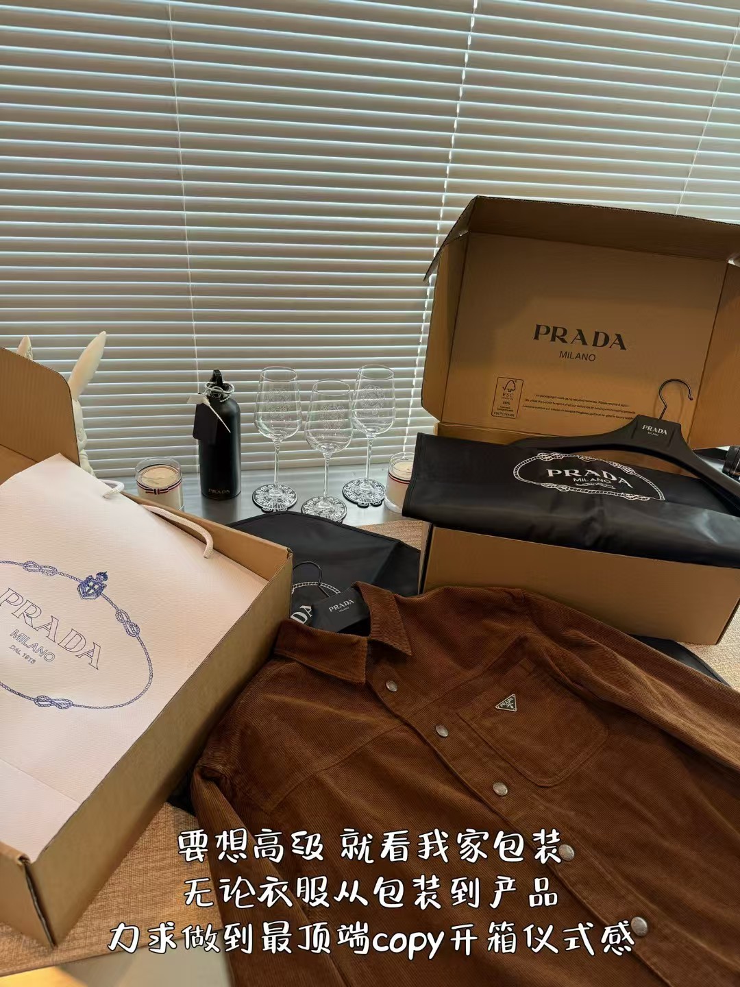 PRADA 24FW 灯芯绒美拉德夹克外套🫡风靡全球美拉德色系 上身很出圈,温暖又深沉,还有大地气息 超适合秋冬穿搭,层次感高级感 直接拉满,整件衣服采用韩国灯芯绒 立体感很强 全身定制开模五金 真正做到1:1copy!!闭眼入 码数:S M L XL