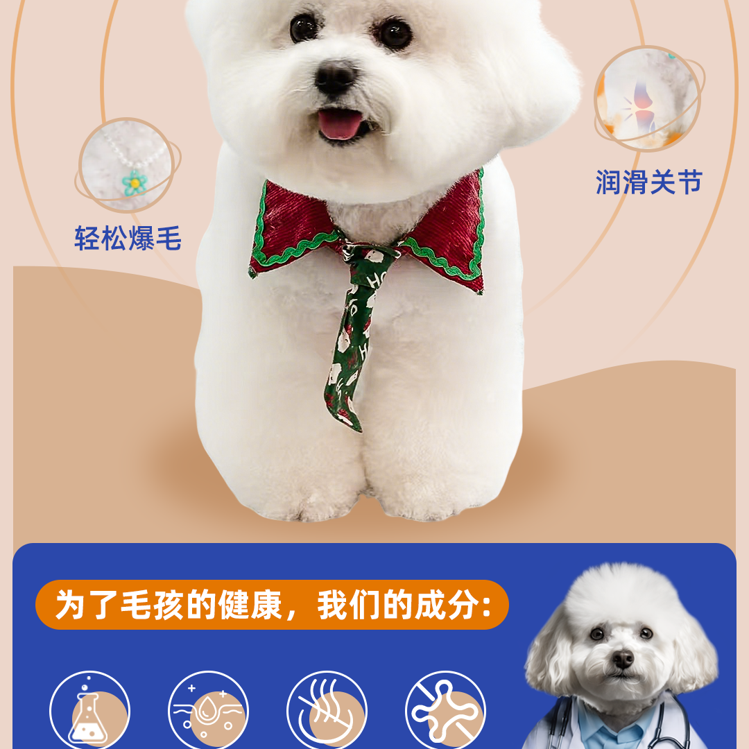 qwe比熊狗狗深海鱼油RTG犬用宠物专用高含量卵磷脂美毛防掉毛