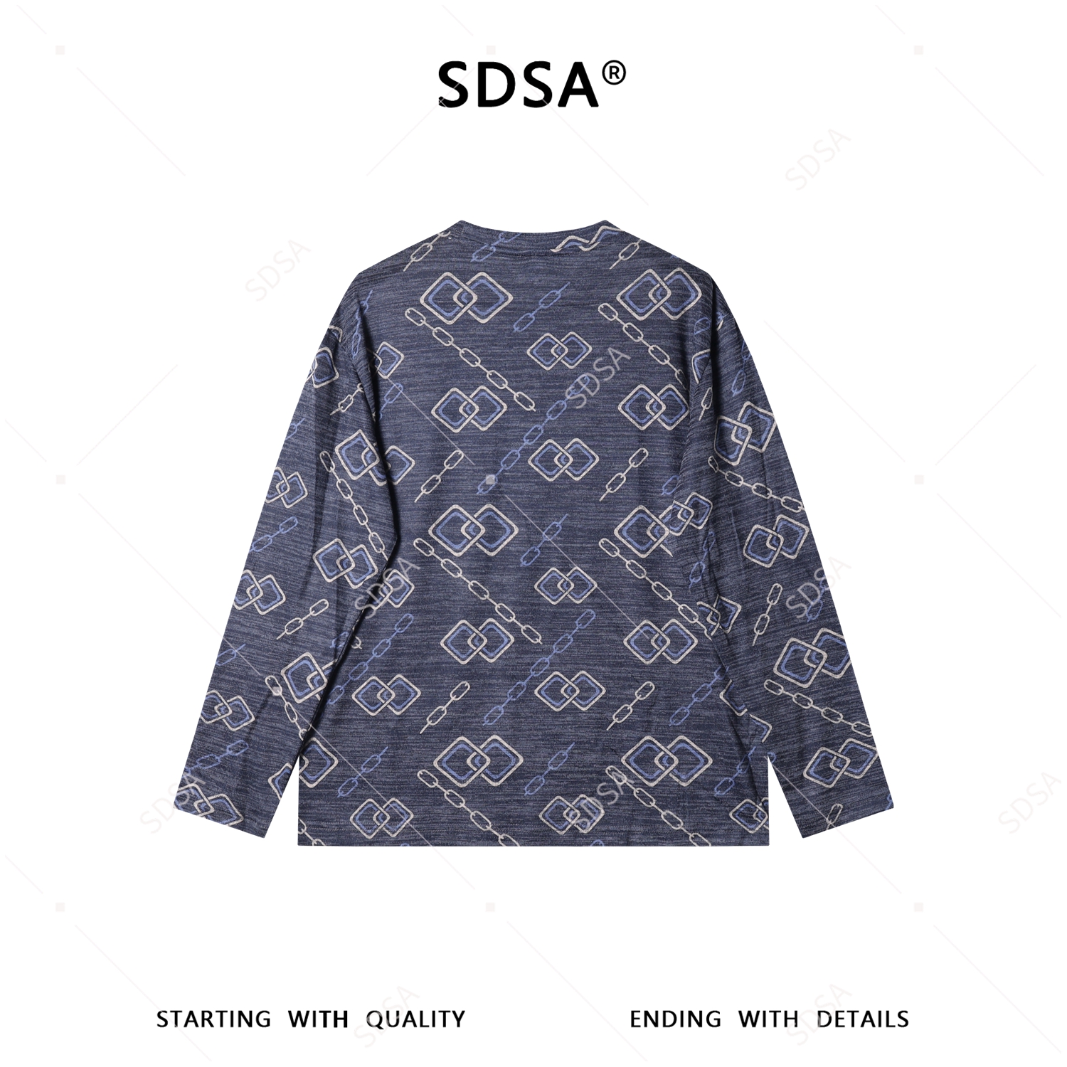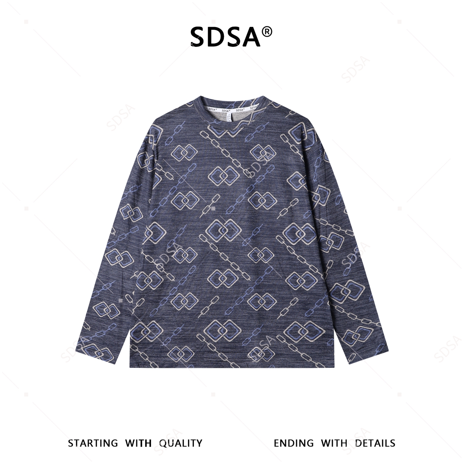26T82SDSA男装2026新款潮牌街头风满印长袖男女同款锁链纹宽松圆领T恤