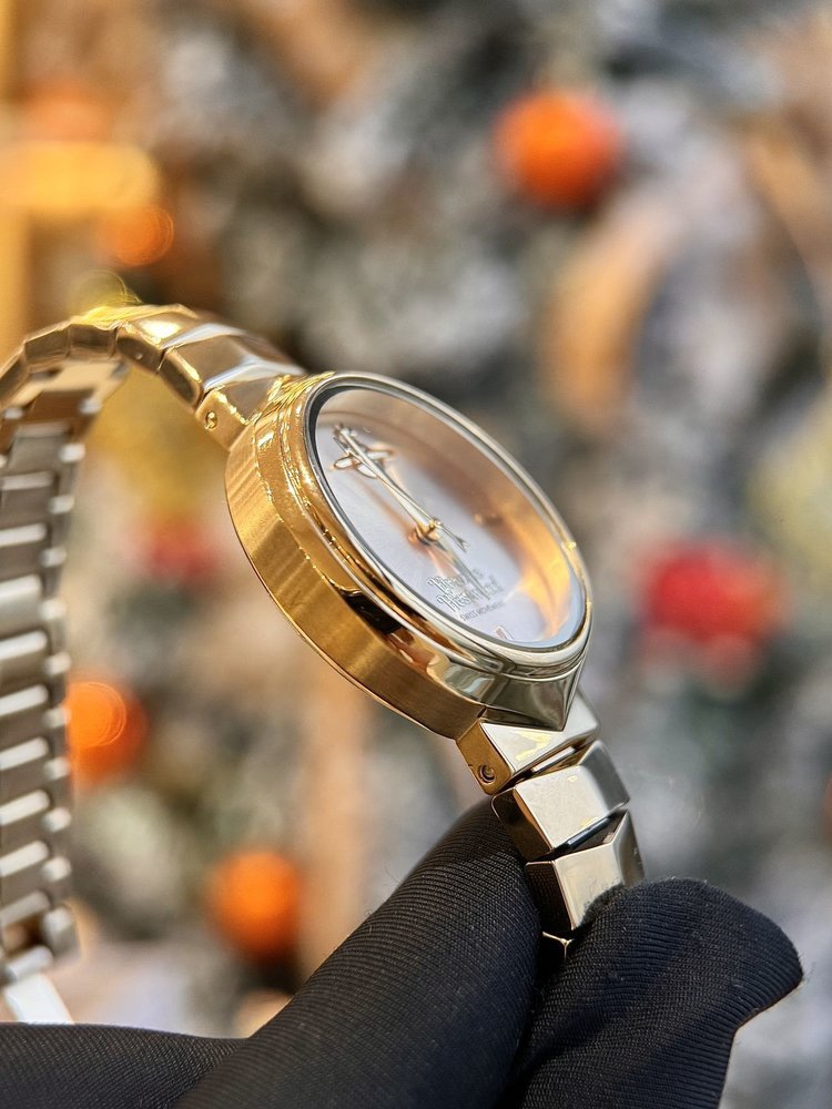 这个是椭圆表盘搭配太阳纹面,有隐隐约约的渐变就是经典与现代美学相结合,特别有那种摩登气质的感觉有没有!