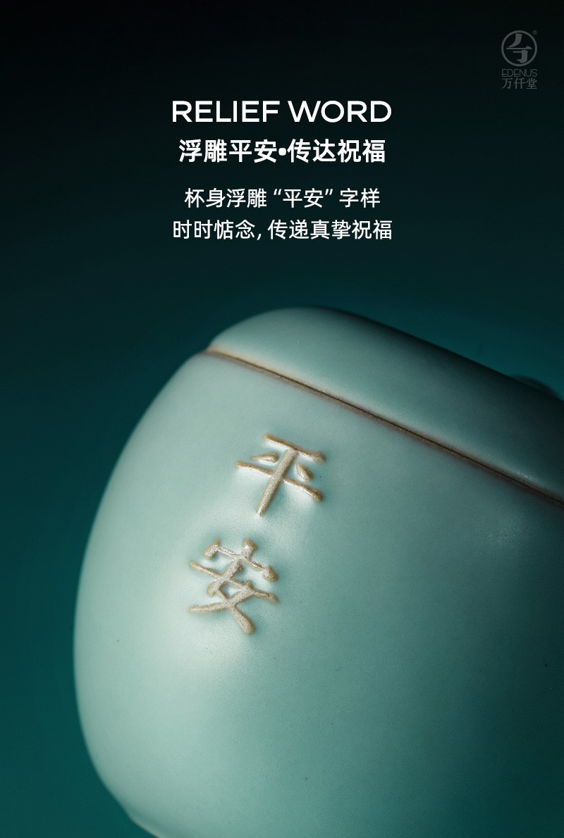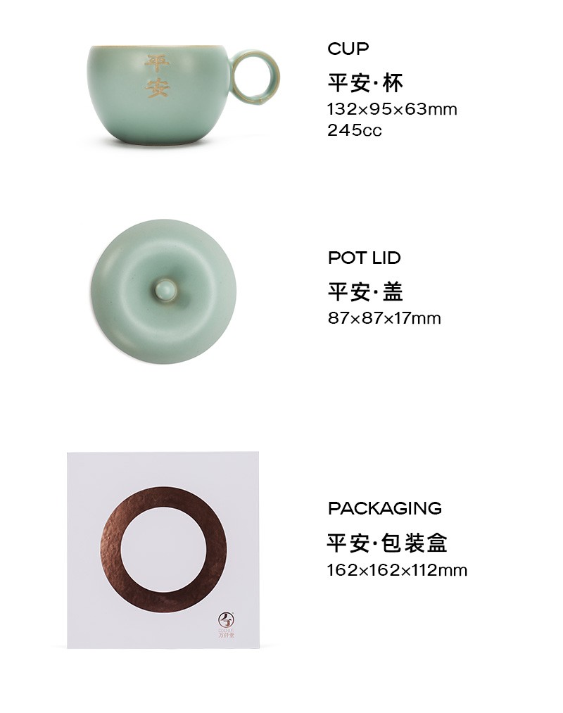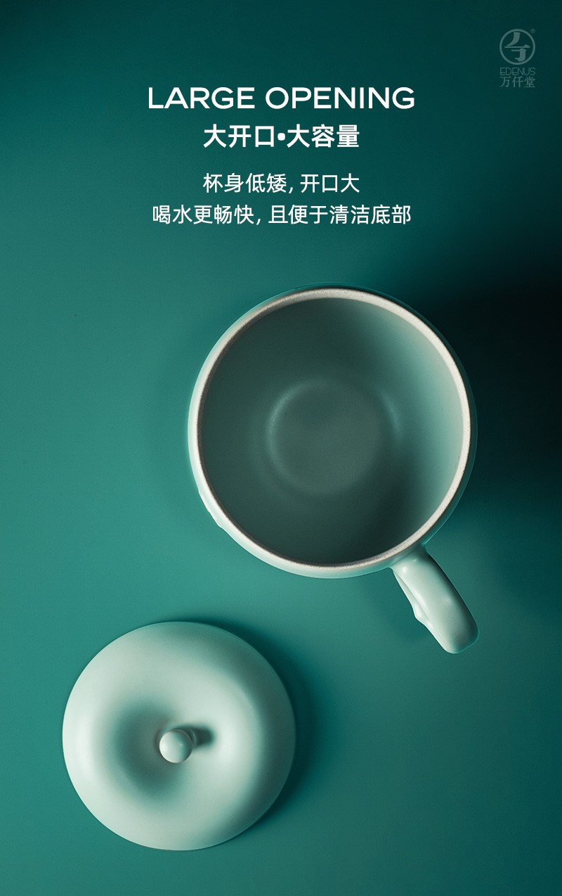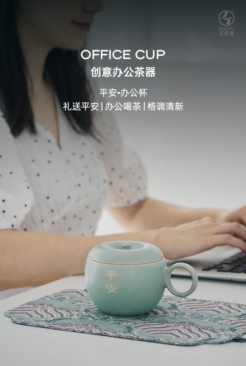 万仟堂 平安办公杯 陶瓷水杯马克杯女 创意苹果造型水果茶具 防尘带盖马克杯 大容量水杯 古绿釉 1杯 245ml