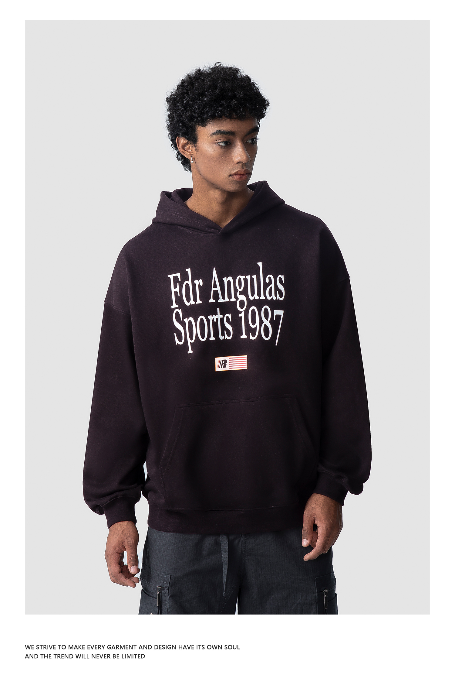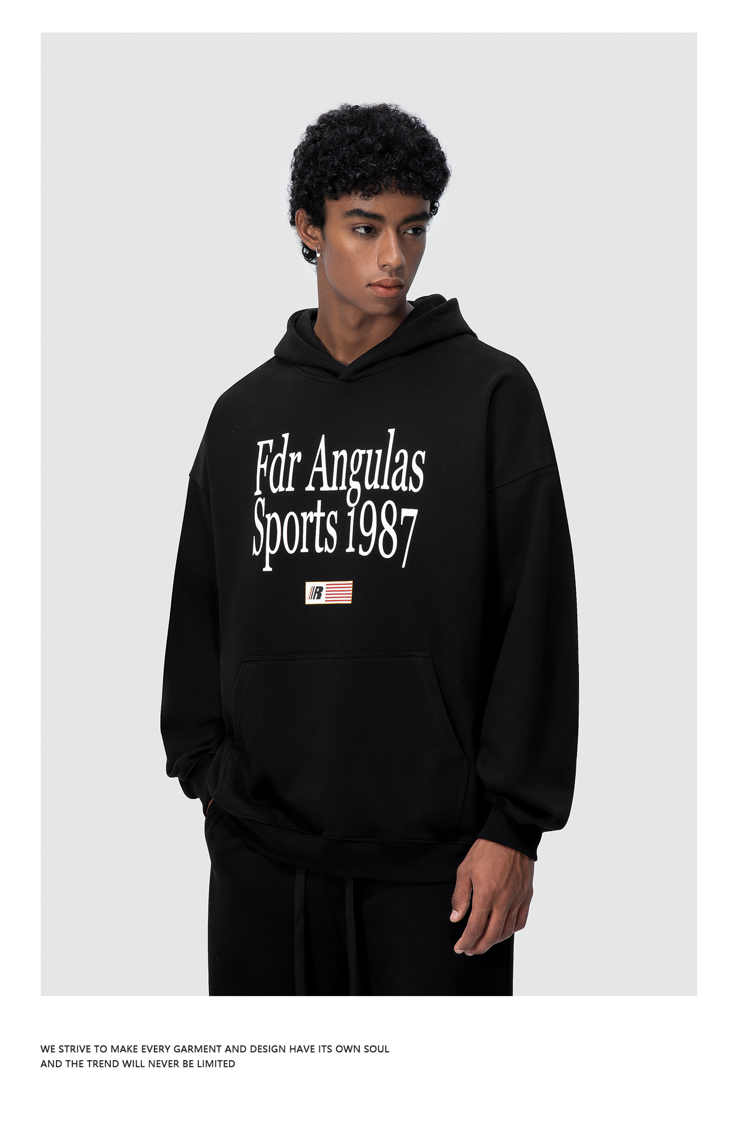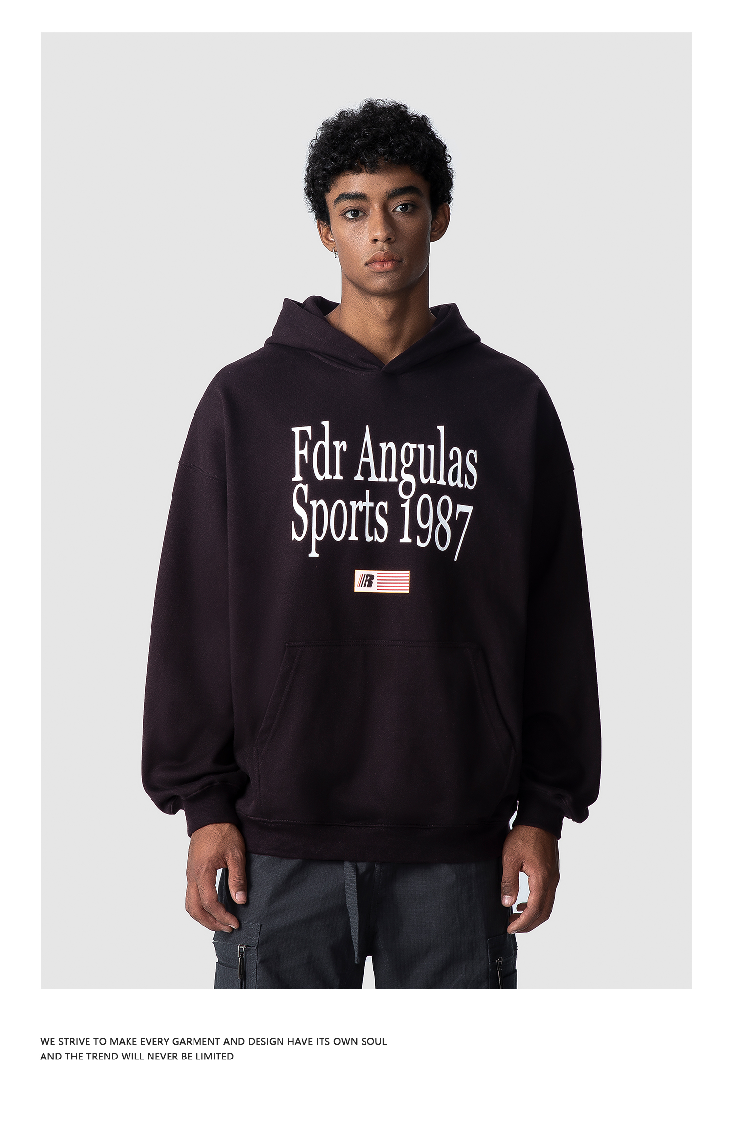 FDR 国潮美式复古字母图案印花加绒连帽卫衣男女秋冬季情侣装上衣