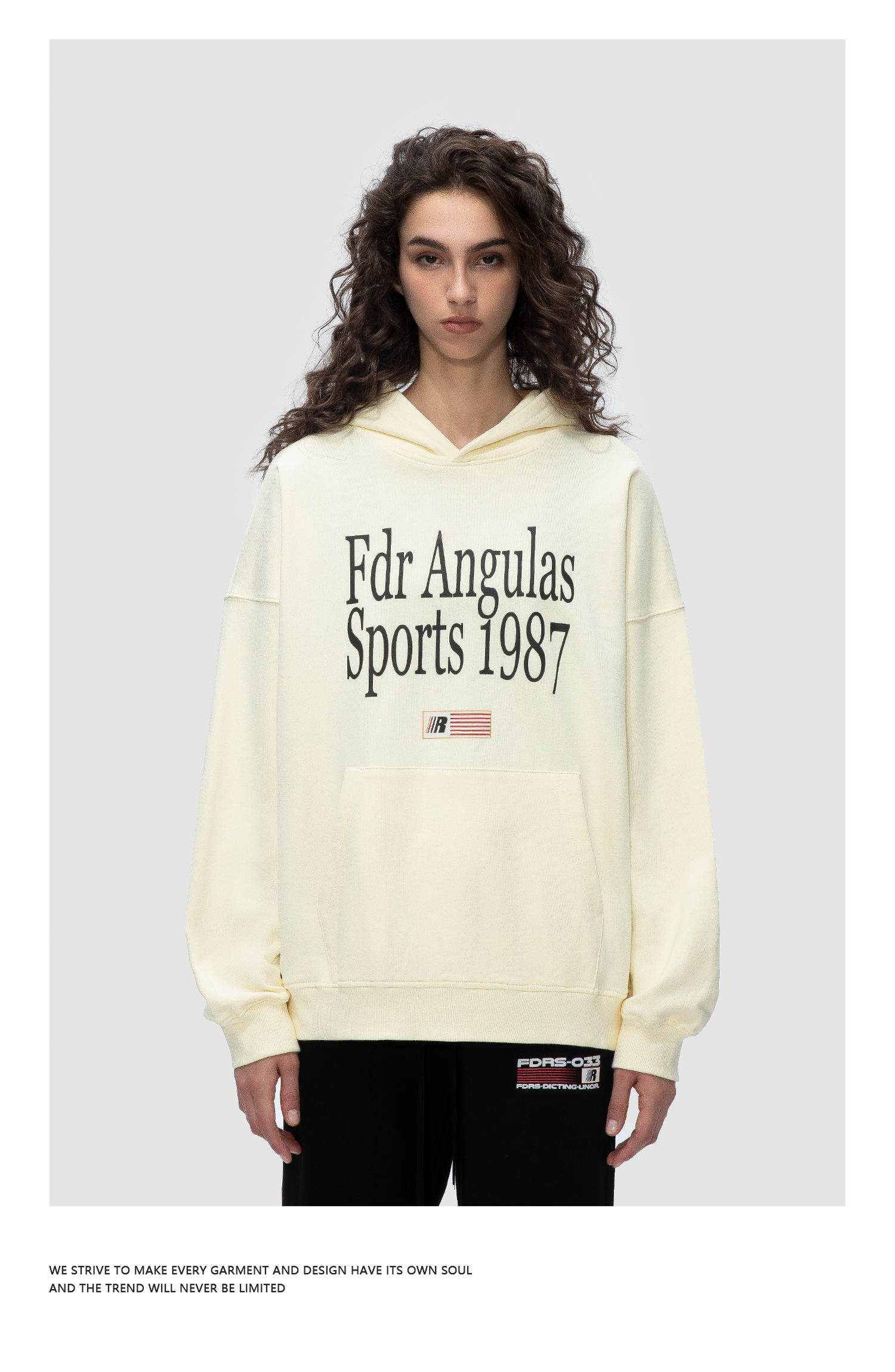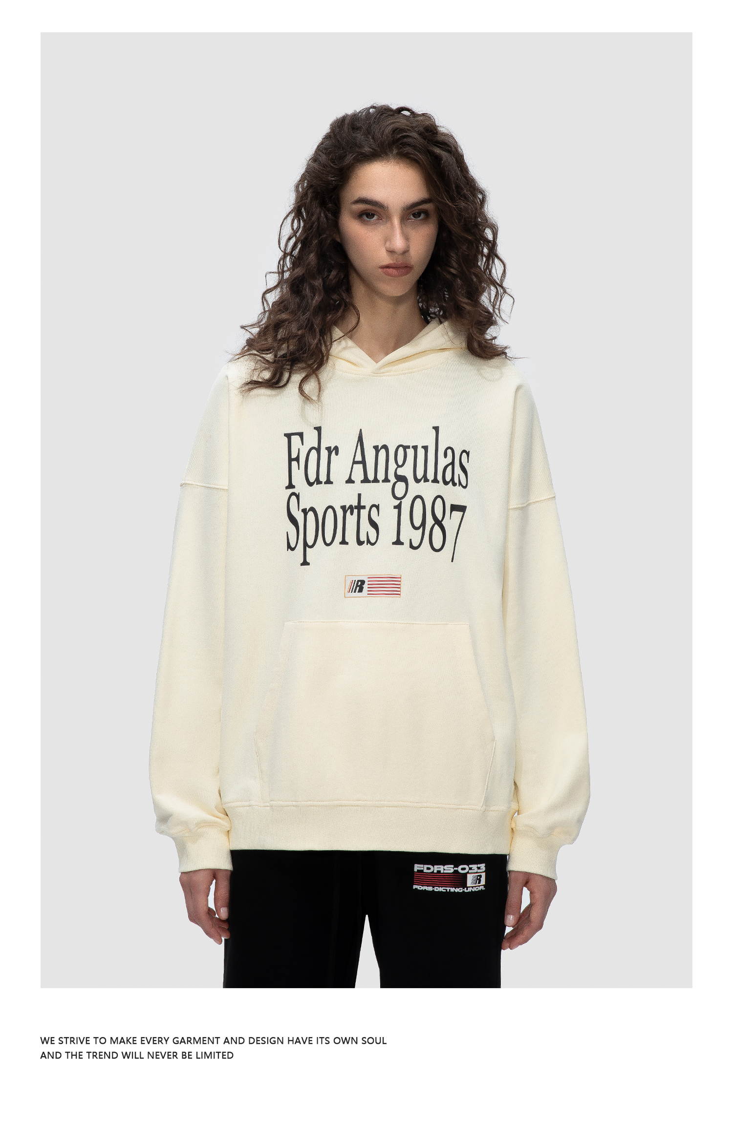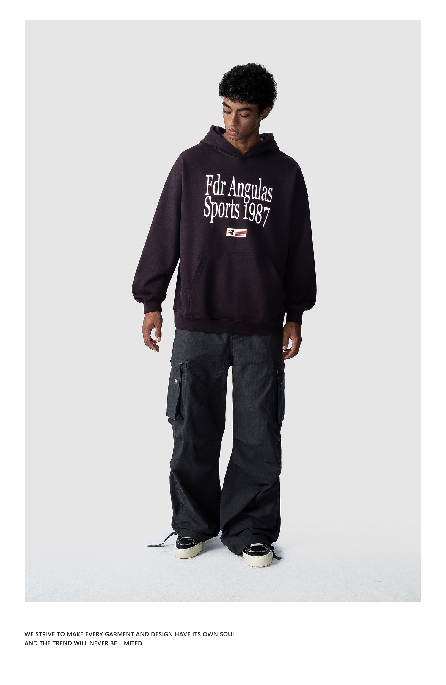 FDR 国潮美式复古字母图案印花加绒连帽卫衣男女秋冬季情侣装上衣