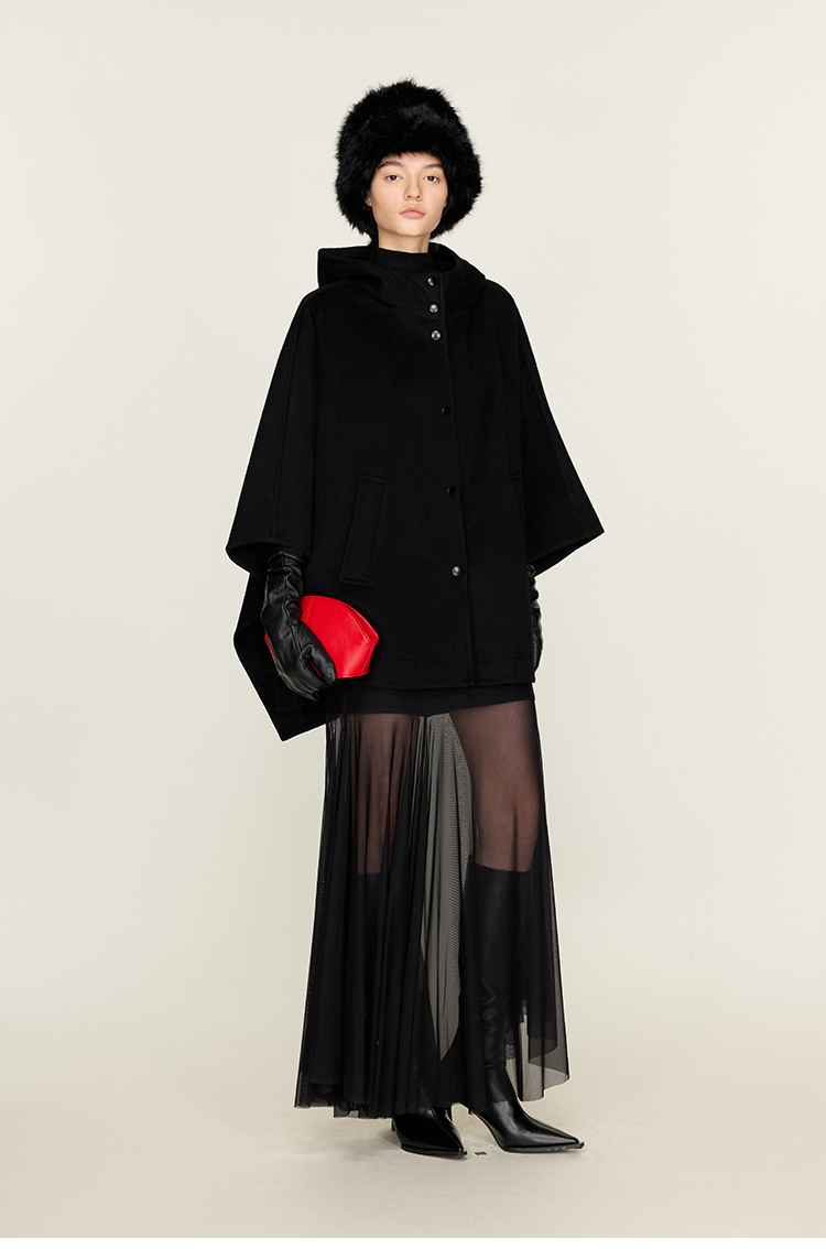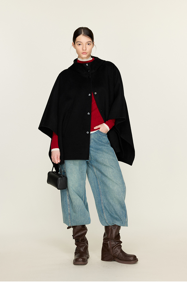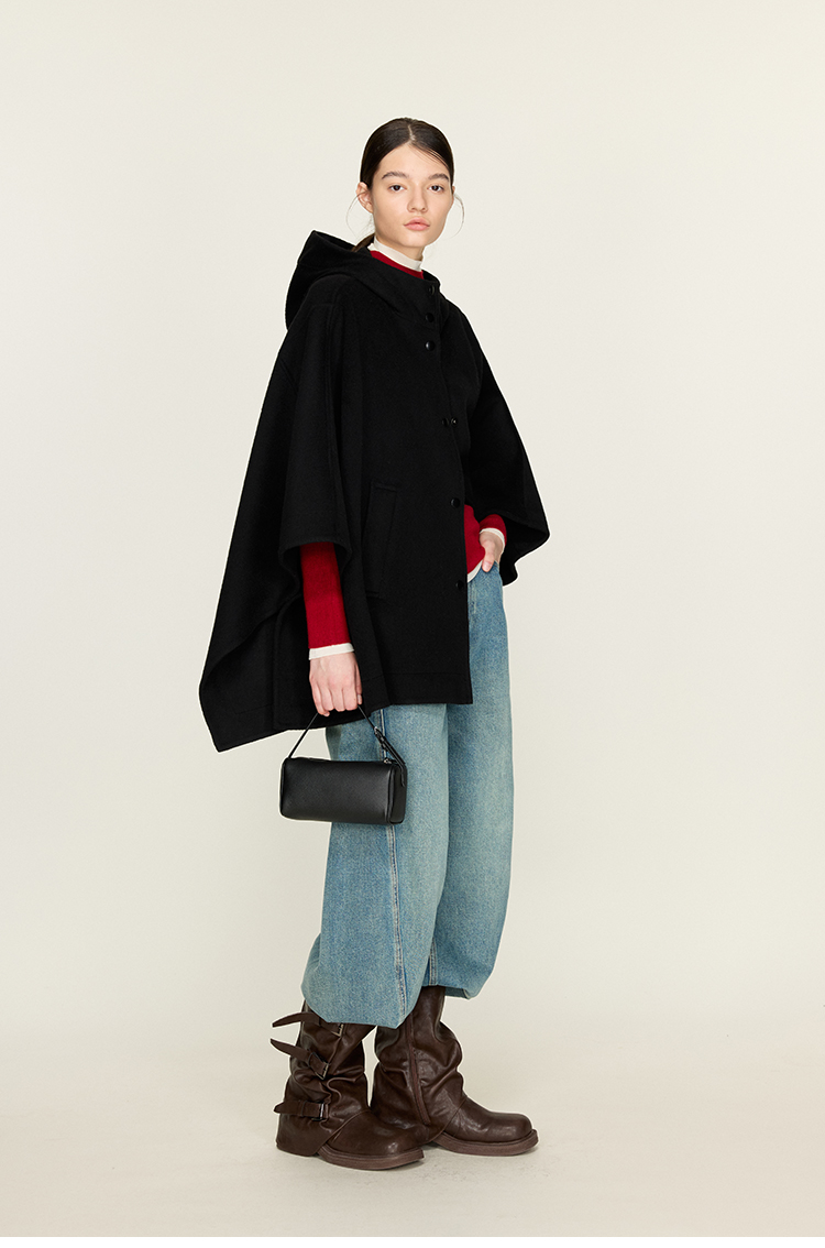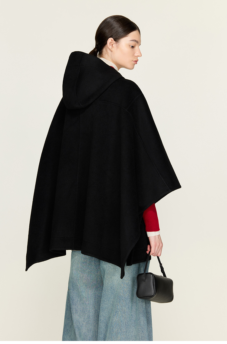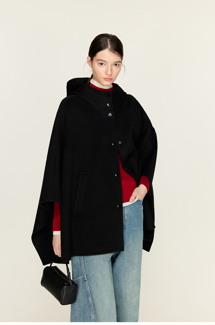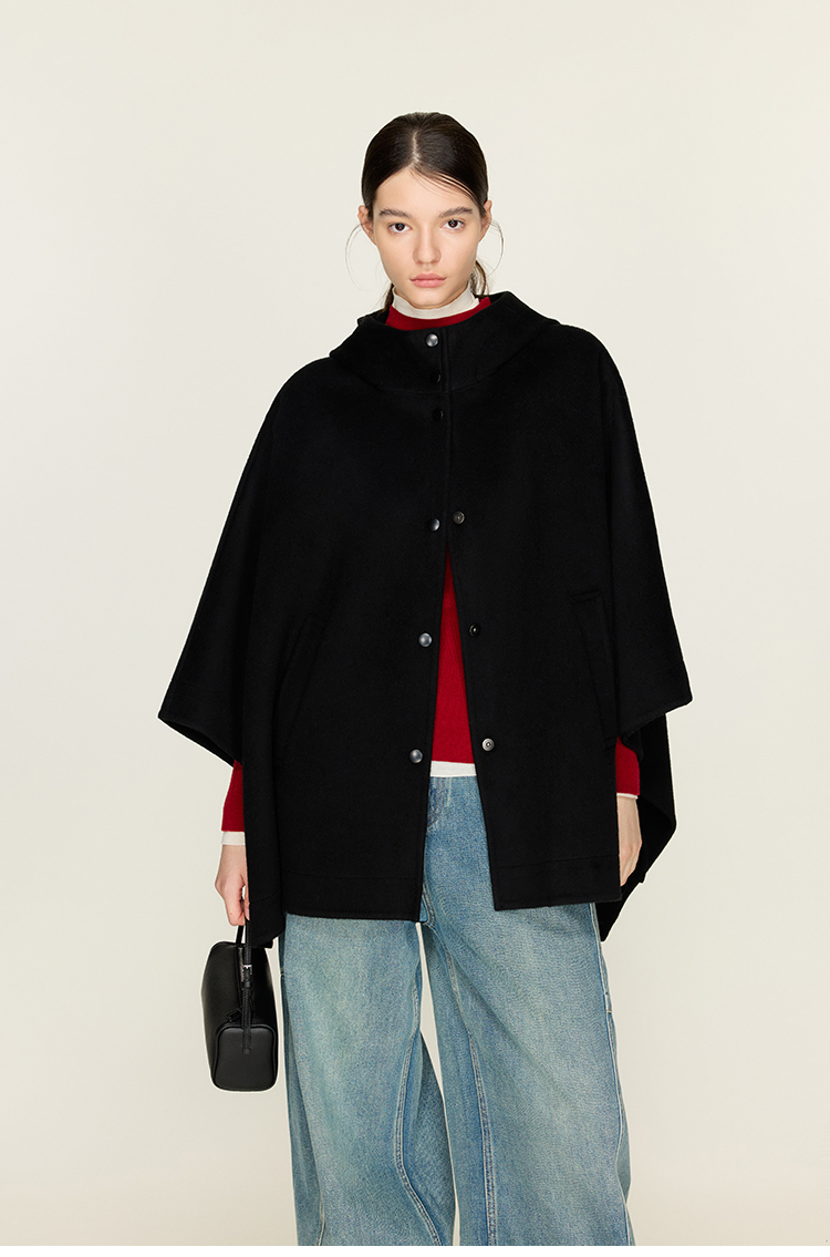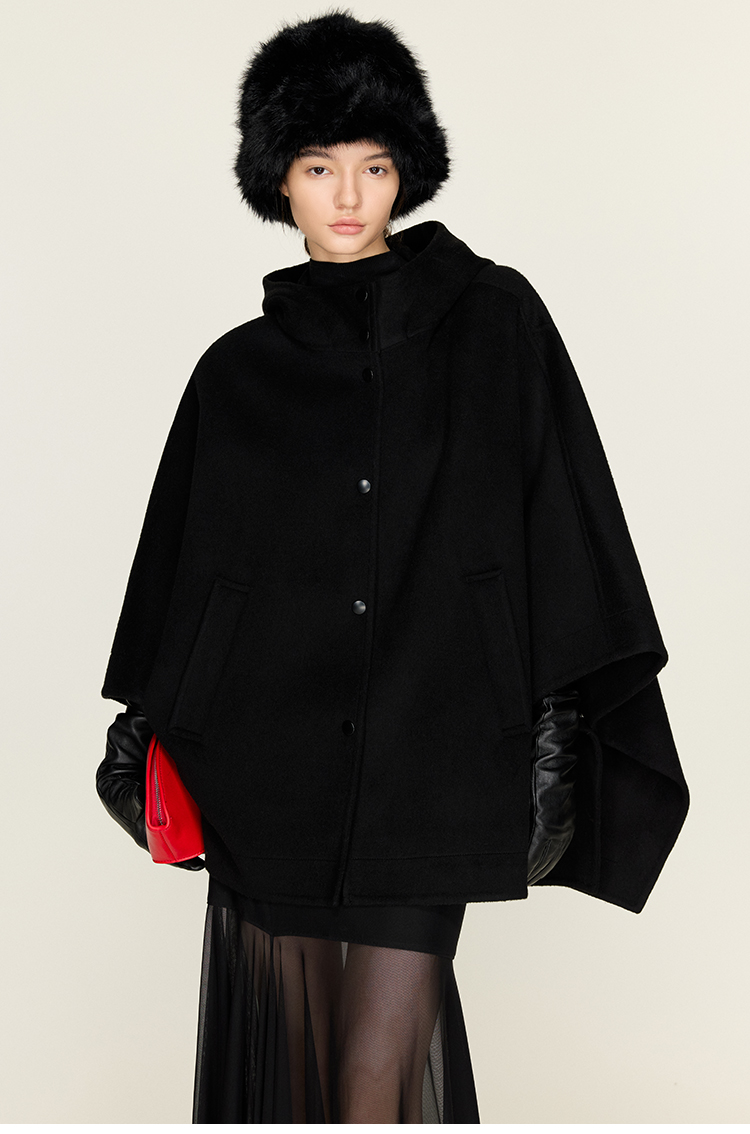 N°28 山羊绒连帽斗篷毛呢外套女秋冬复古宽松显瘦中长款呢子大衣8855A1D597
