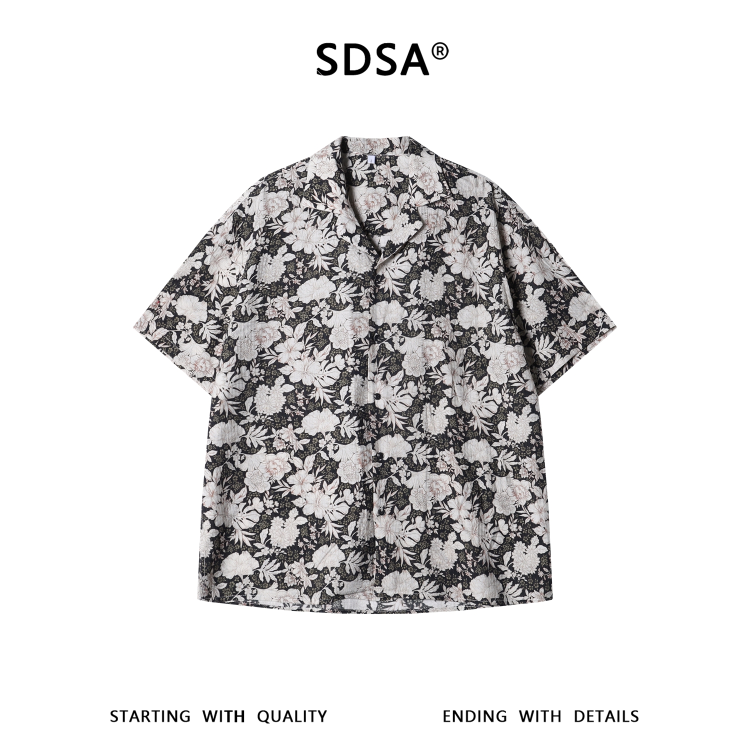 SDSA男装2026新款高贵轻奢复古撞色满印花卉翻领短袖衬衫百搭休闲