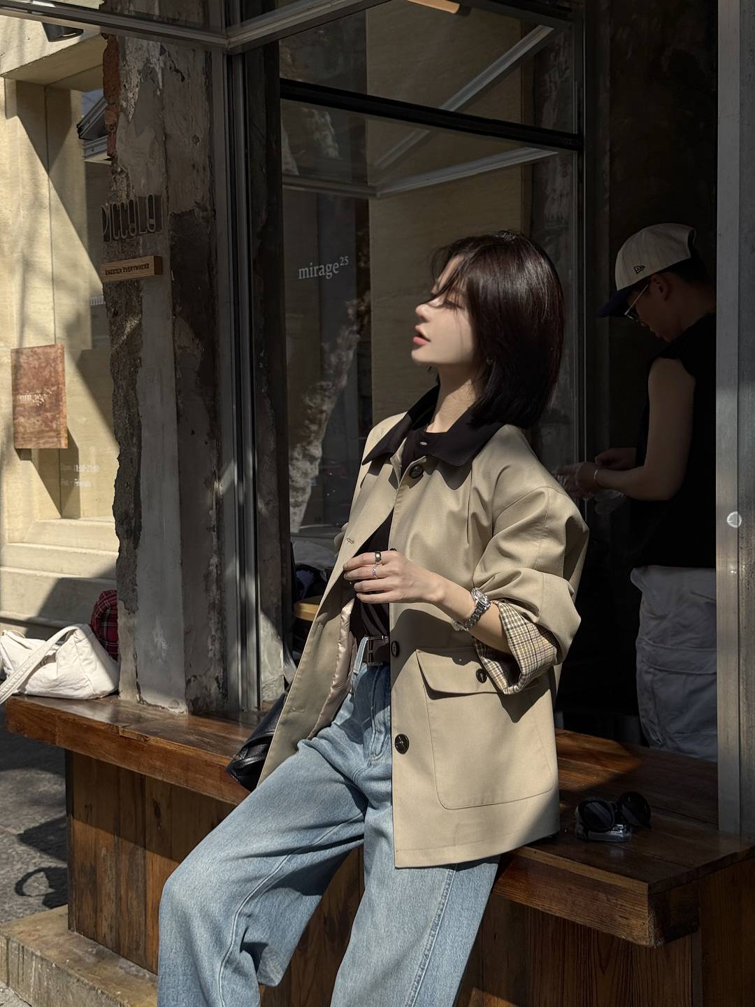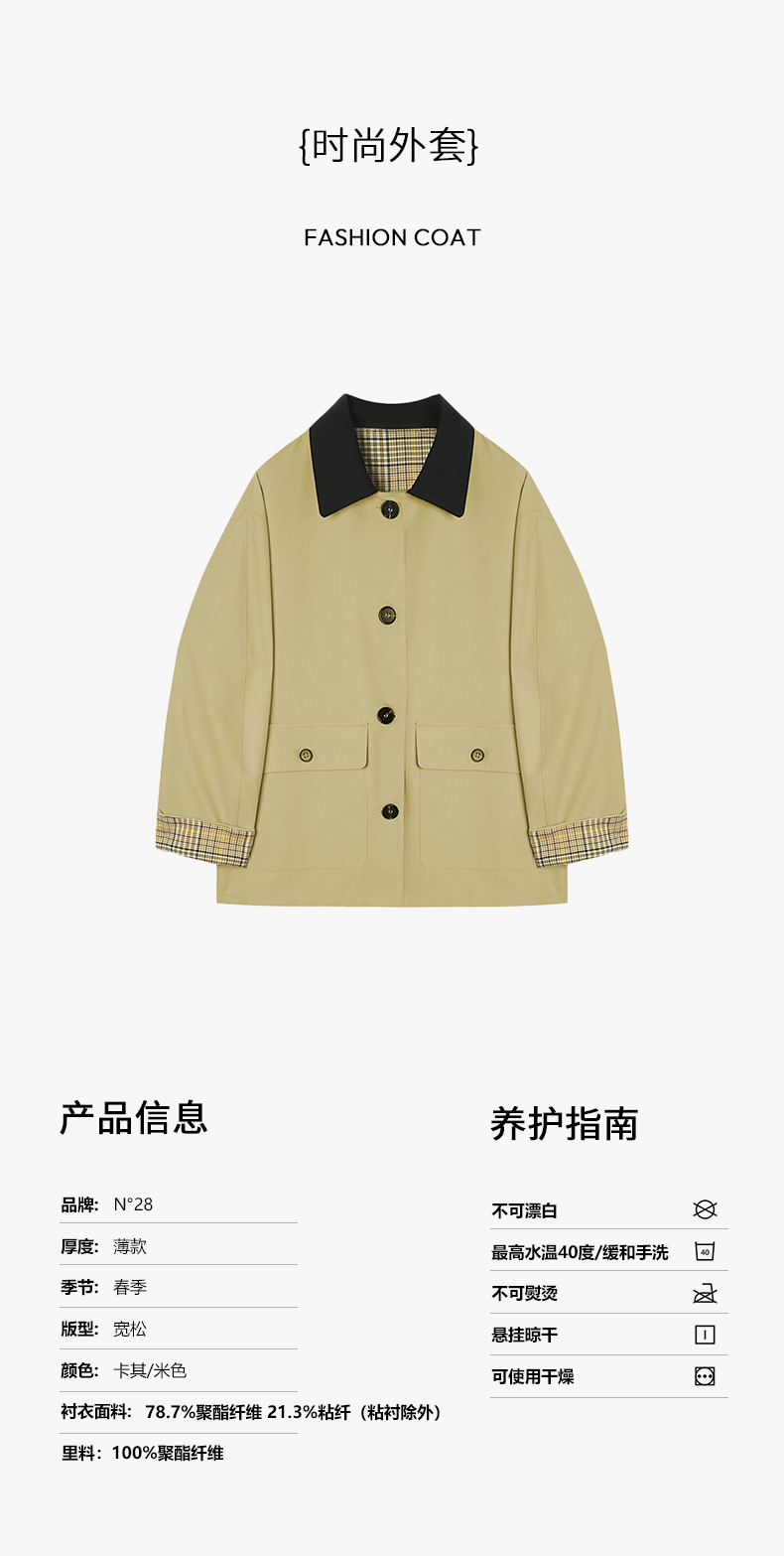 【破价】【巴恩风】气质高级中长款风衣 拼色格纹内衬外套895131F312