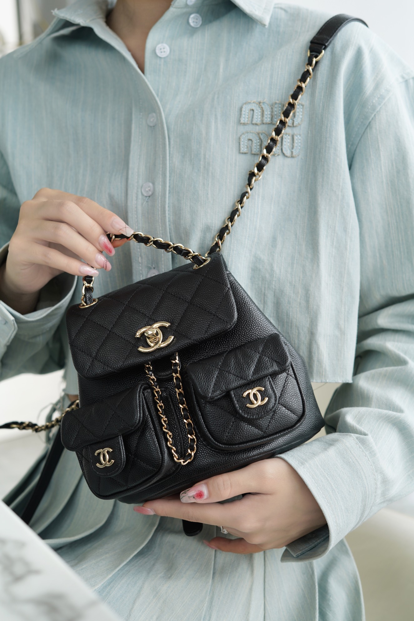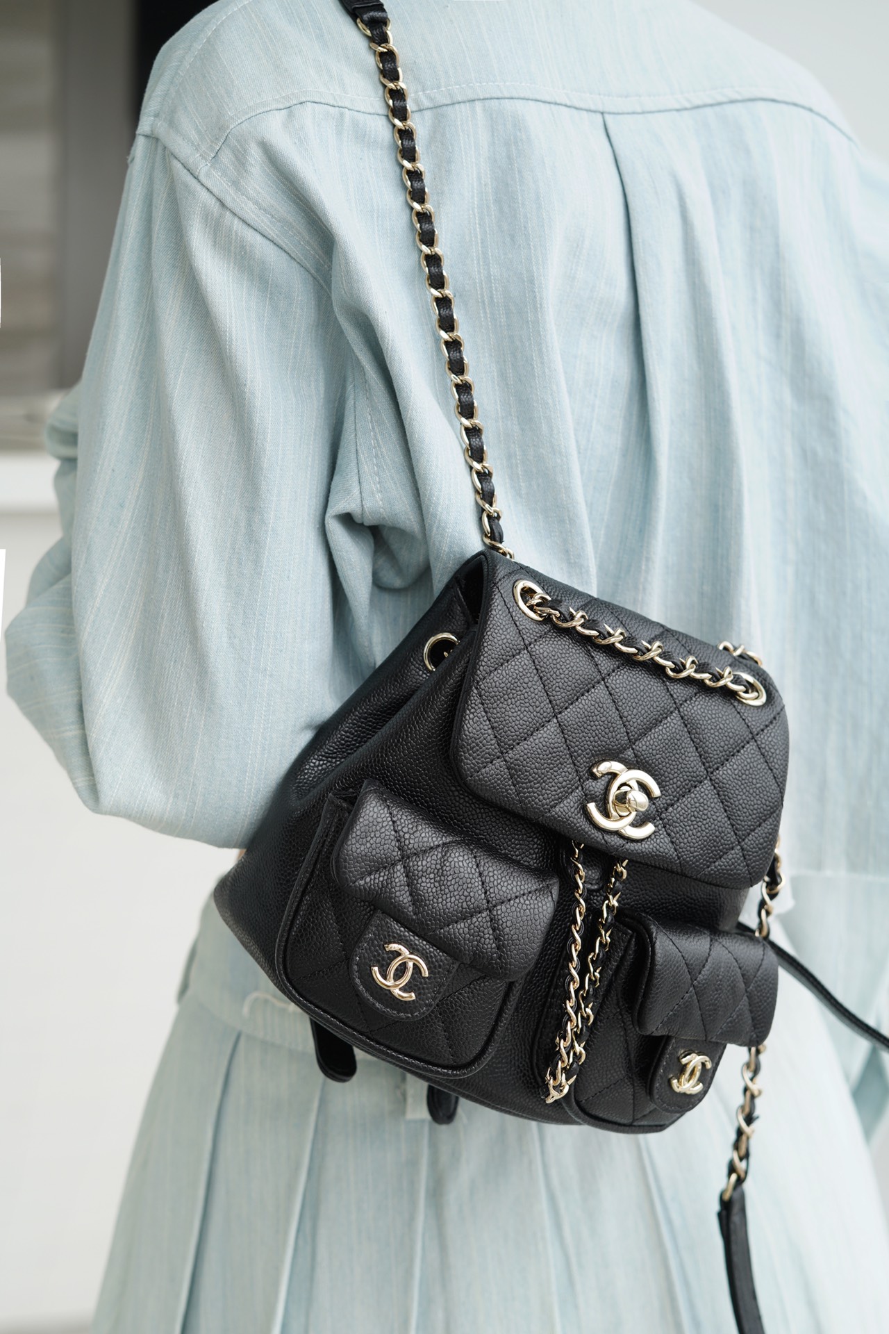 本季黑马?? 法国????《????????》皮革厂,软度并存的一级原产小牛皮??,与上季Duma双肩如出一撤,改变了前侧下方口袋变成两小只,实用度还是颜值都让人无法拒绝呀~容量很ok,日常出行放的全都能放得下!