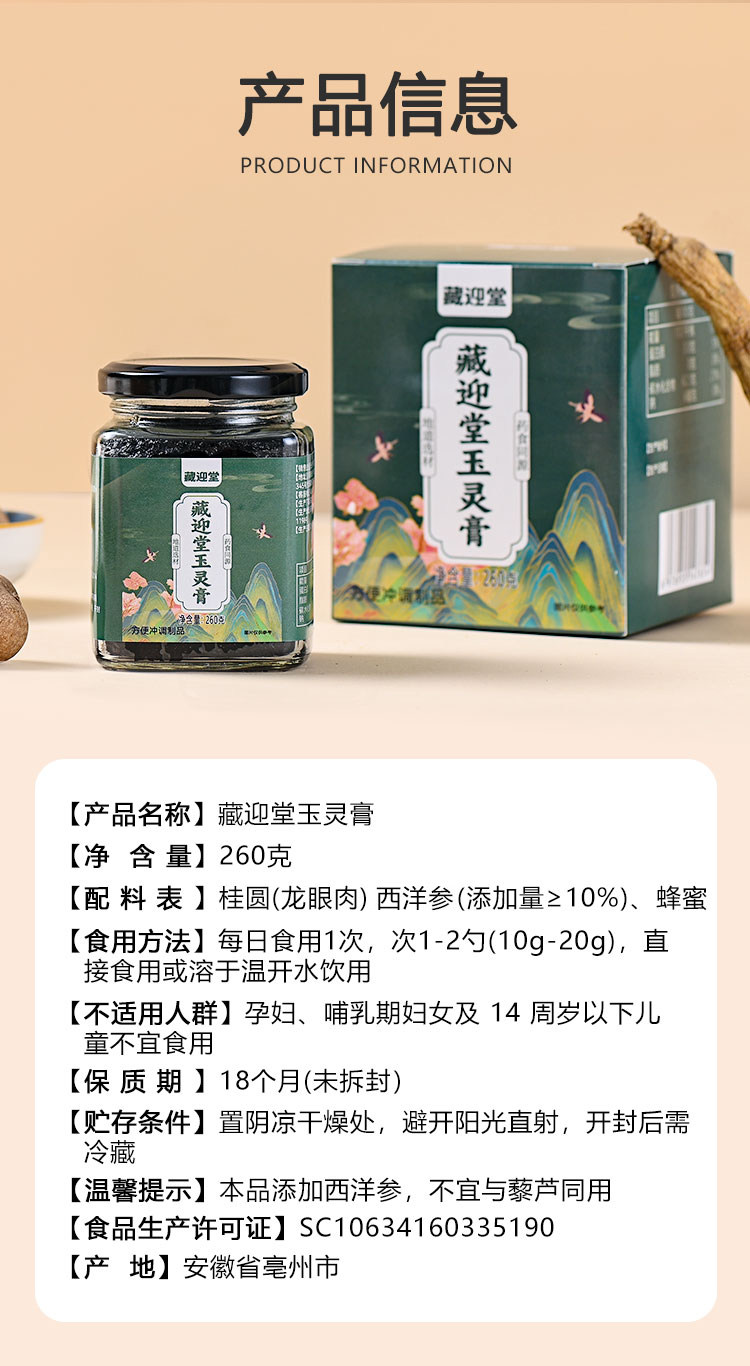 藏迎堂玉灵膏蒸桂圆补气养血西洋参玉灵膏气色安神助眠官方旗舰店