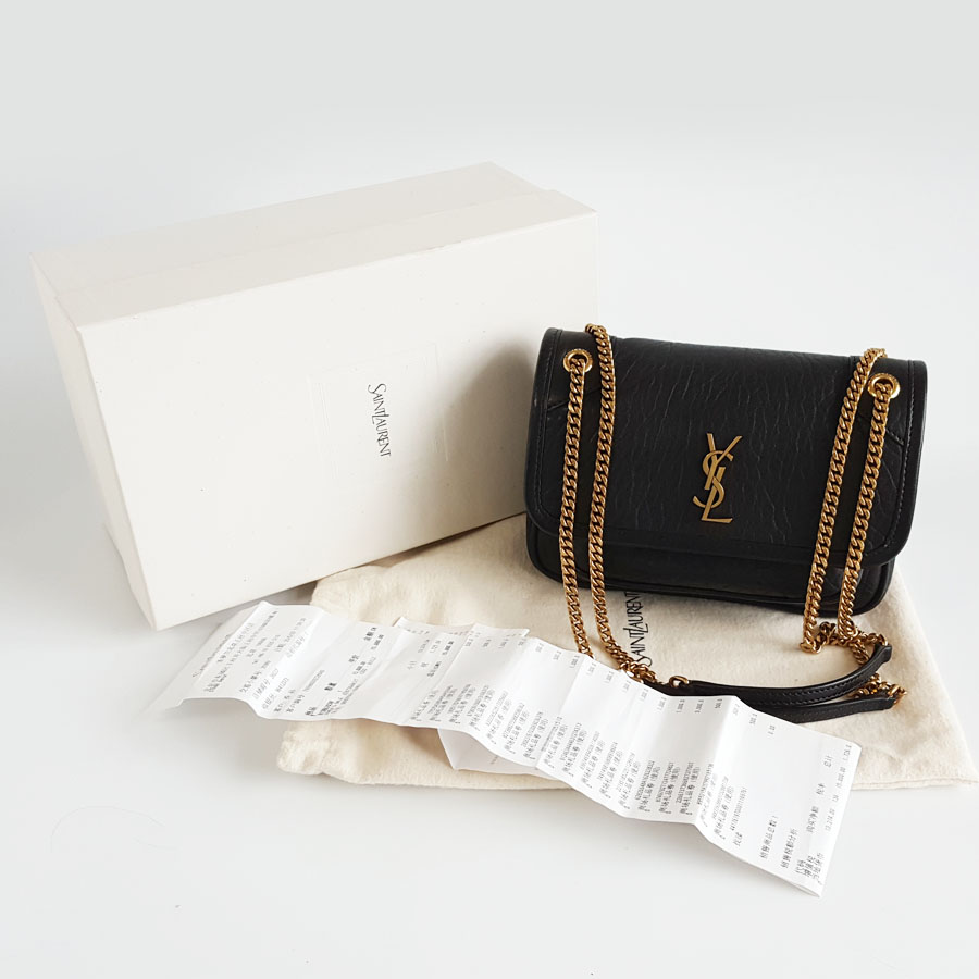 【98新】YSL圣罗兰niki828736黑金迷你羊皮niki链条包单肩斜挎包女士现售价:9000!050725TJ07