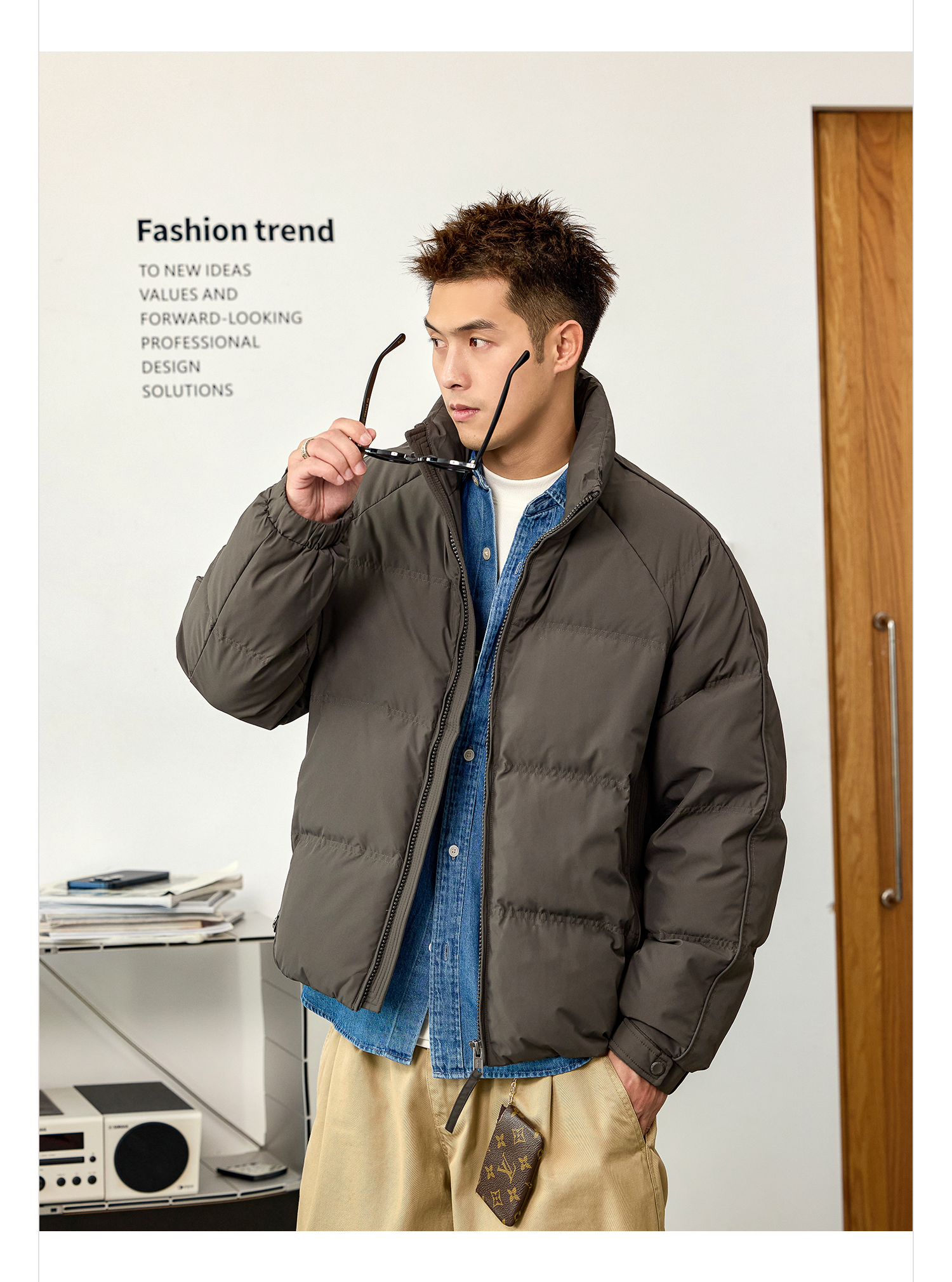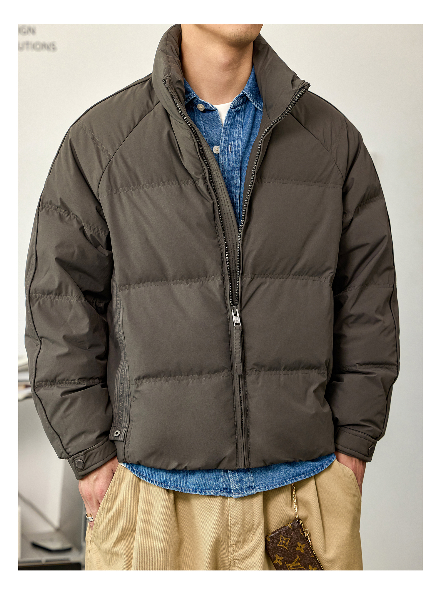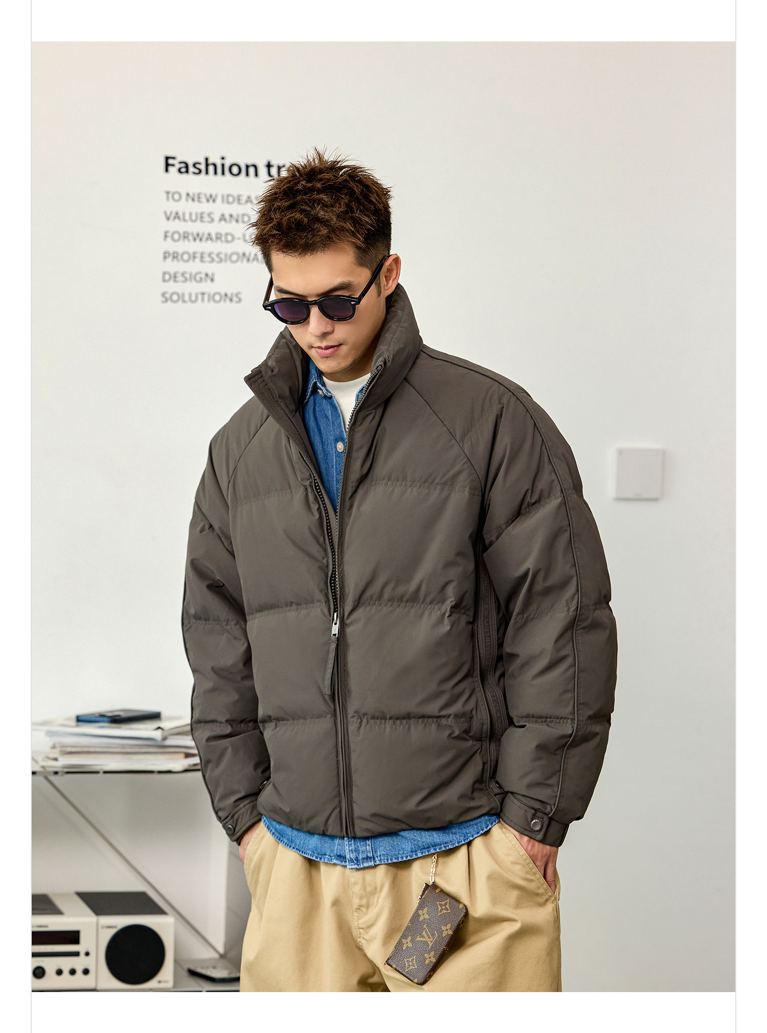 徐太浪【辑行保暖 纯色百搭】立领羽绒服男秋冬季厚款防寒服外套
