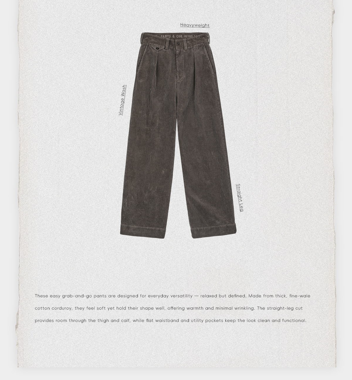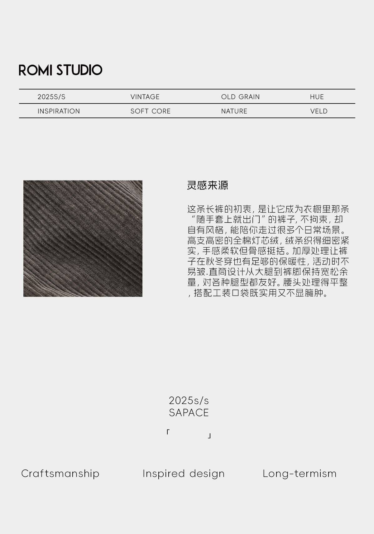 ROMI STUDIO"复古韵味"高支高密加厚定染灯芯绒直筒裤RWDSXY1556