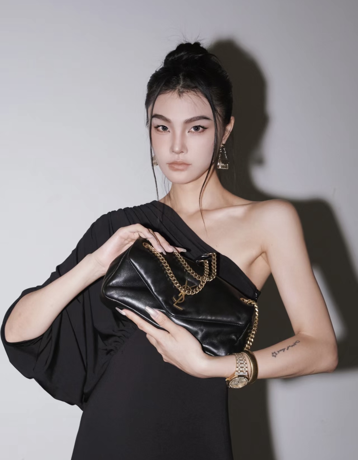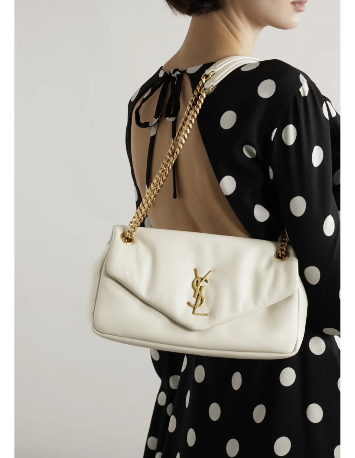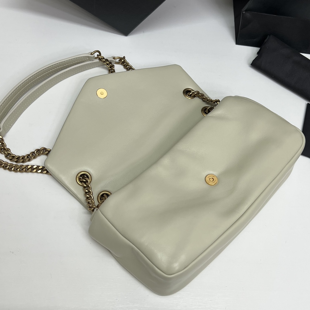 复古白羊皮手袋饰以经典YSL标志,搭配皮革和链条斜挎背带,亦可以双链肩背!