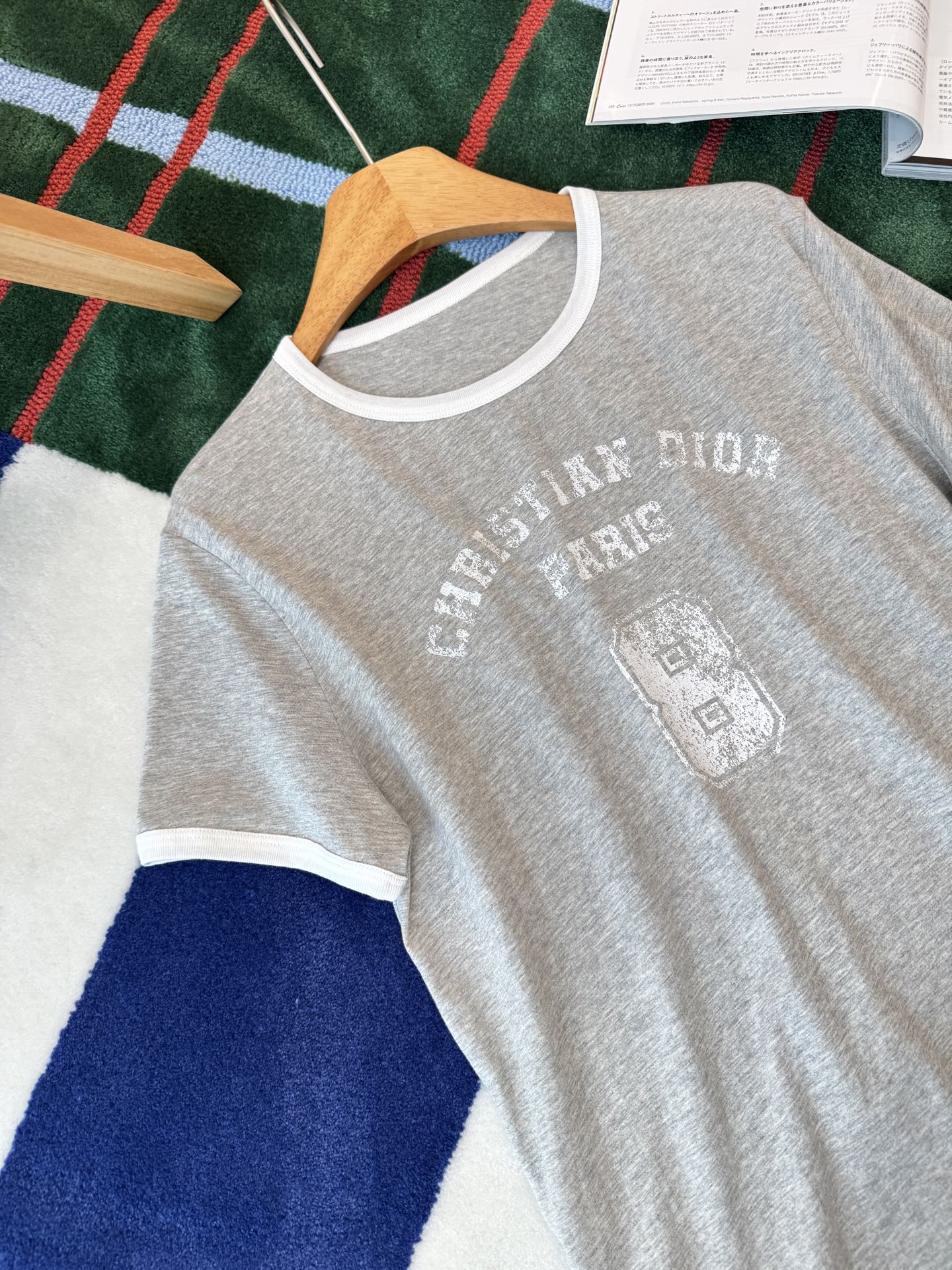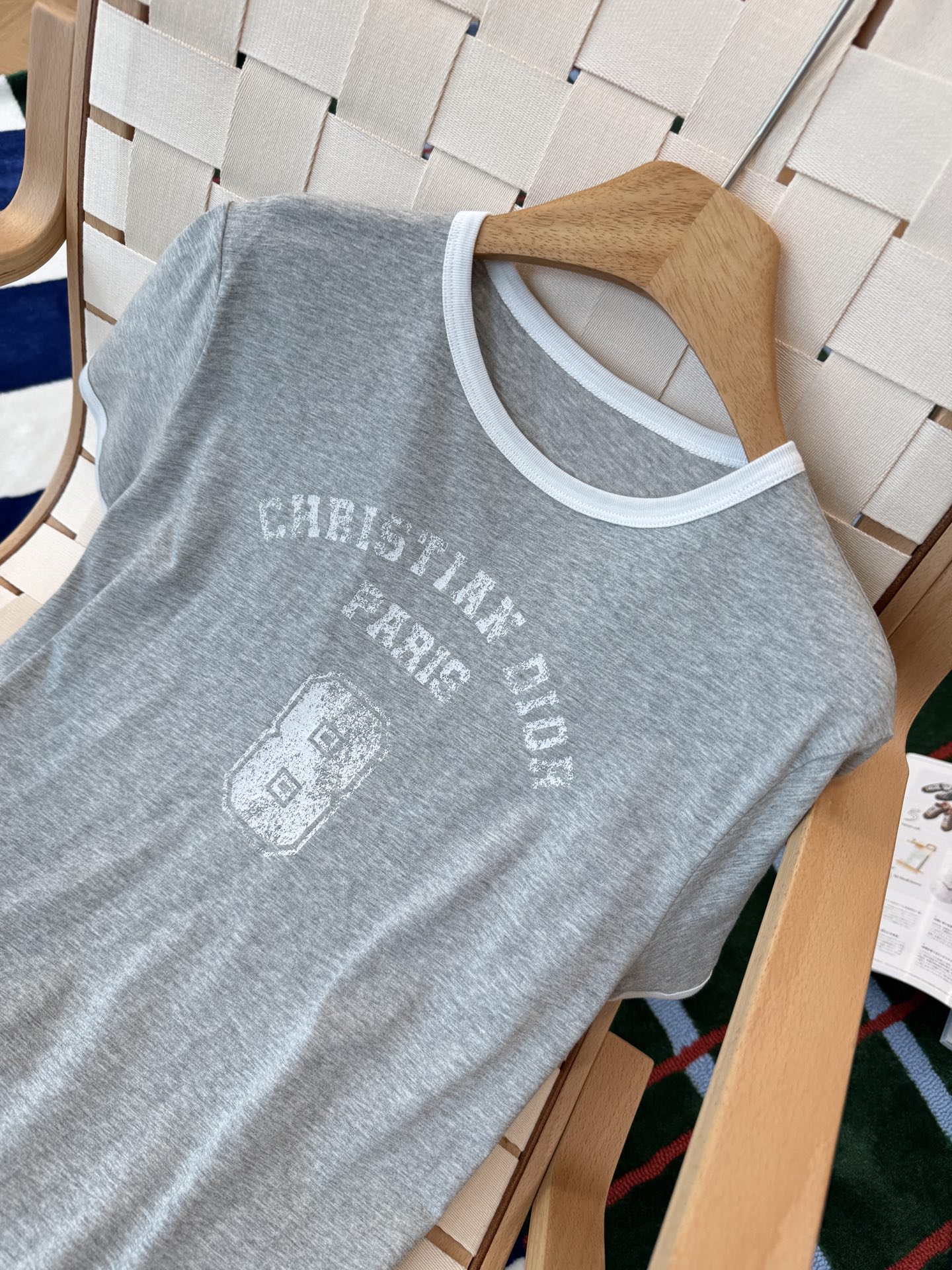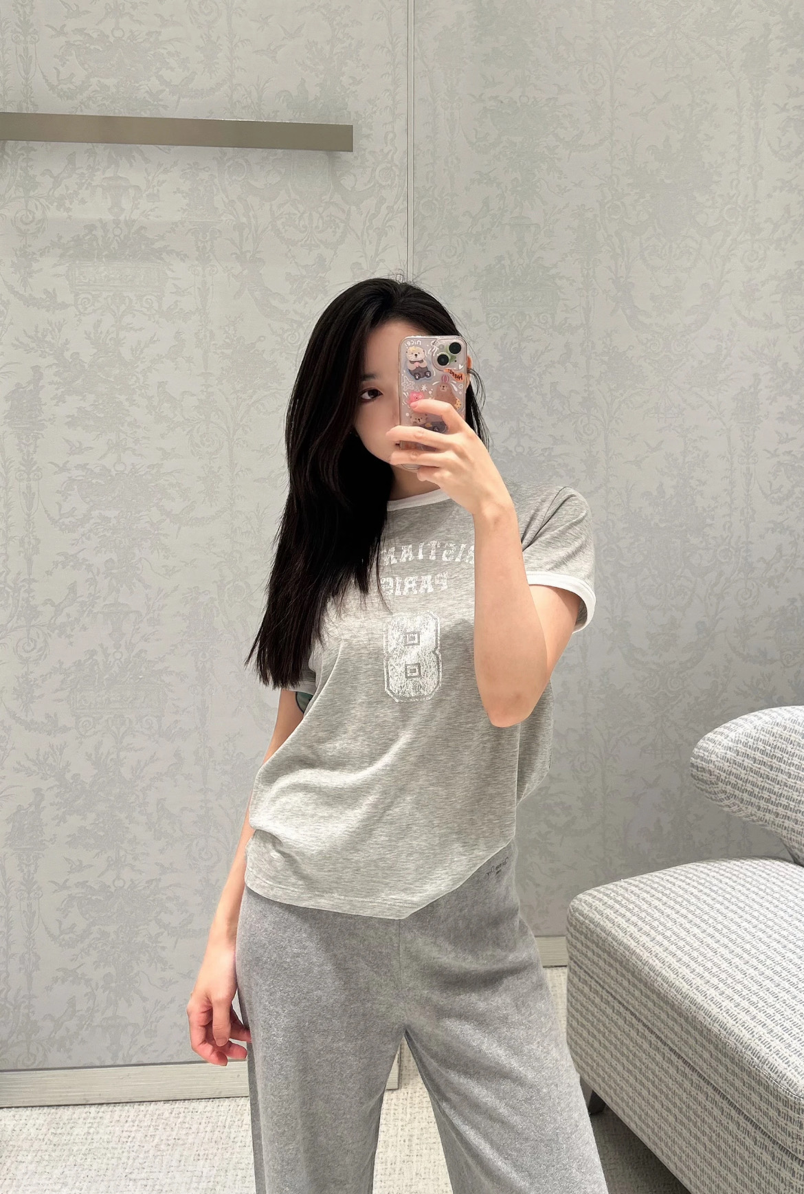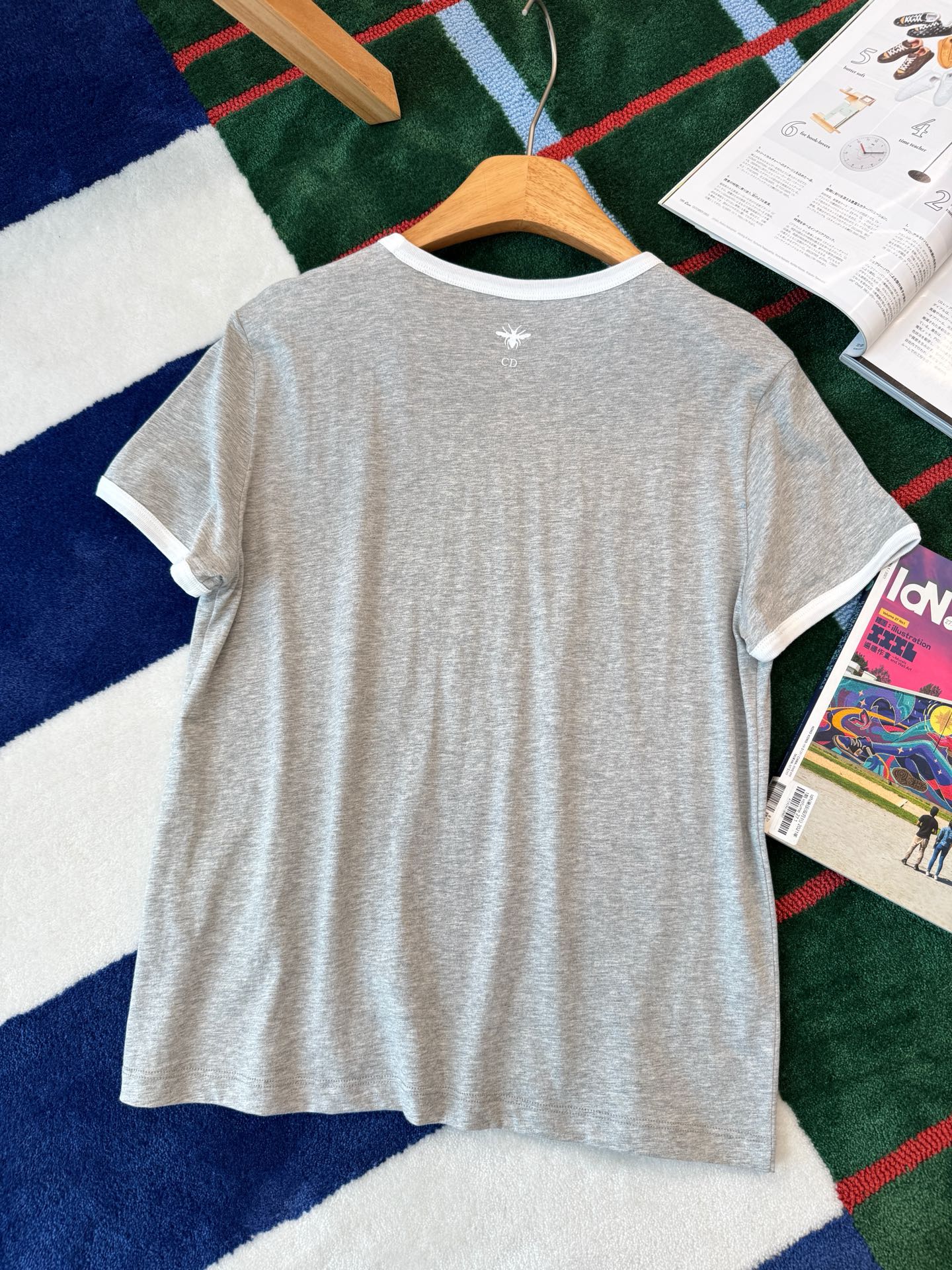 26年早春 T恤, 采用灰色棉质平纹针织面料精心制作,圆领和衣袖饰以白色饰边,成为了衣柜中不可或缺的一款单品☑️ 基础常规的版型,无论是喜欢休闲风格的你,还是追求简约设计的你,都能在这款T恤中找到属于你的那份风格,定染面料,颜色很特别很洋气,千万别错过,码数SML