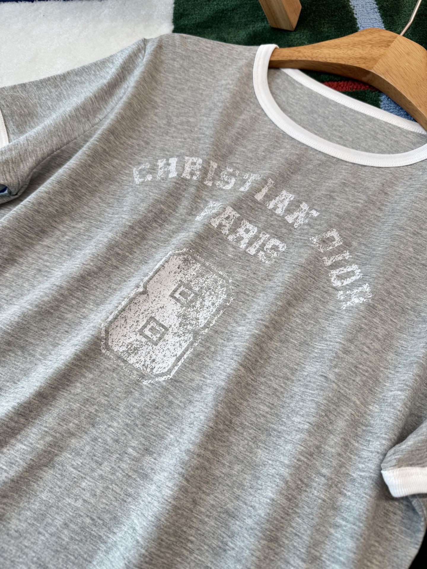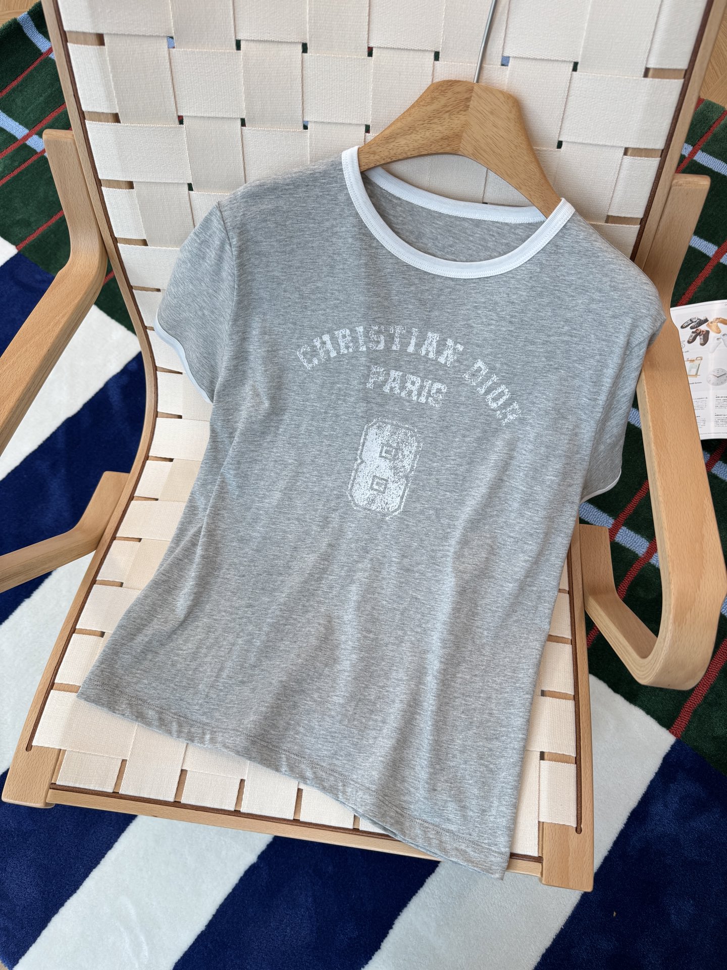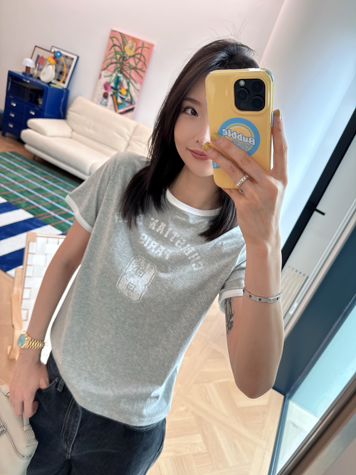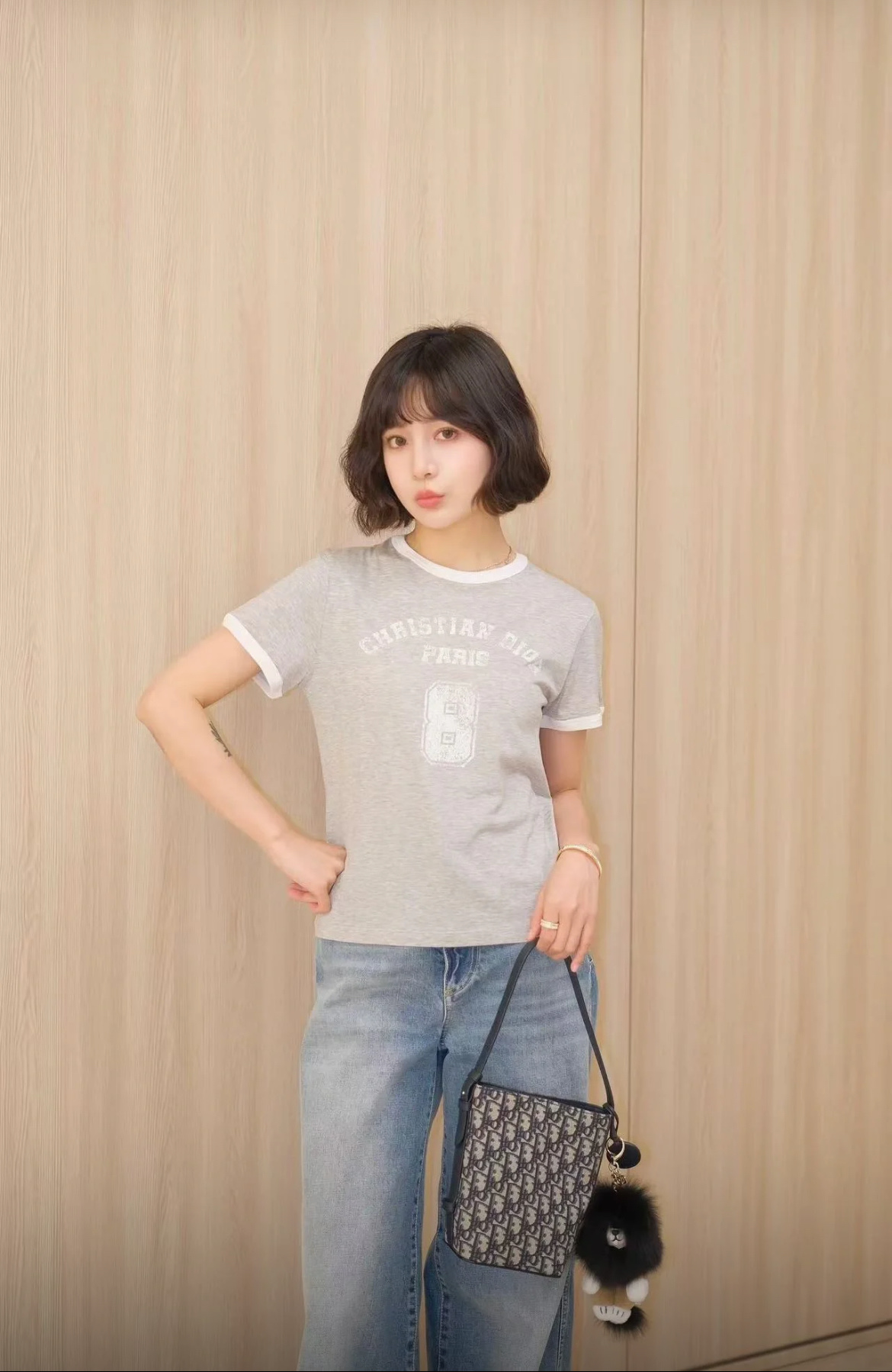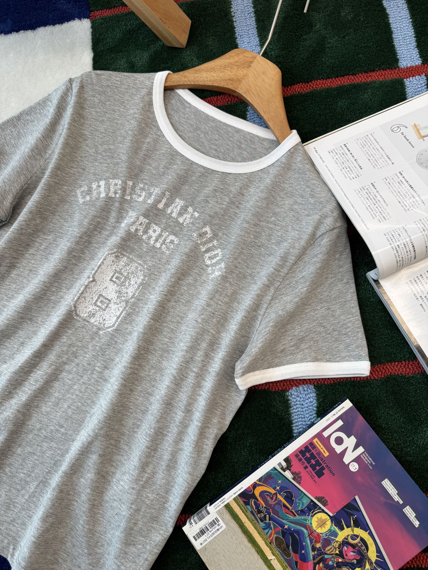 26年早春 T恤, 采用灰色棉质平纹针织面料精心制作,圆领和衣袖饰以白色饰边,成为了衣柜中不可或缺的一款单品☑️ 基础常规的版型,无论是喜欢休闲风格的你,还是追求简约设计的你,都能在这款T恤中找到属于你的那份风格,定染面料,颜色很特别很洋气,千万别错过,码数SML