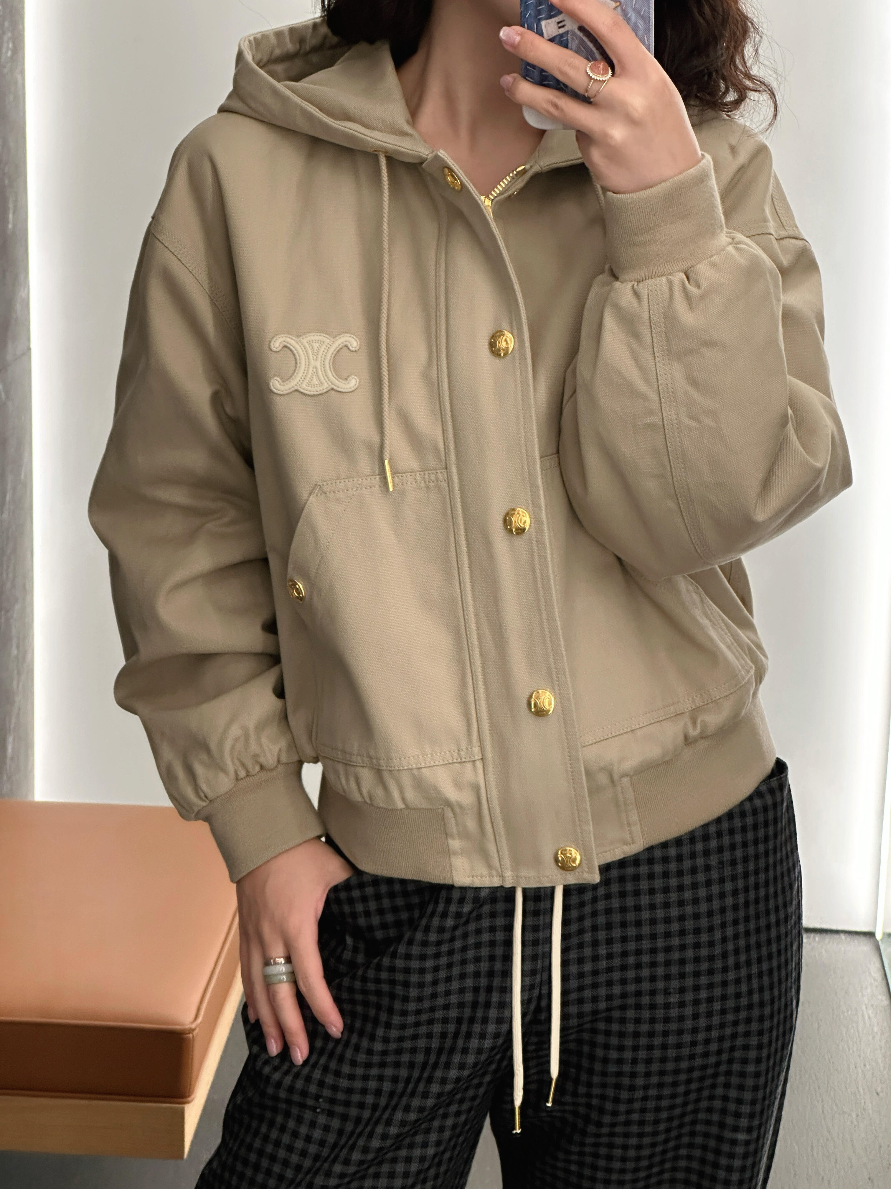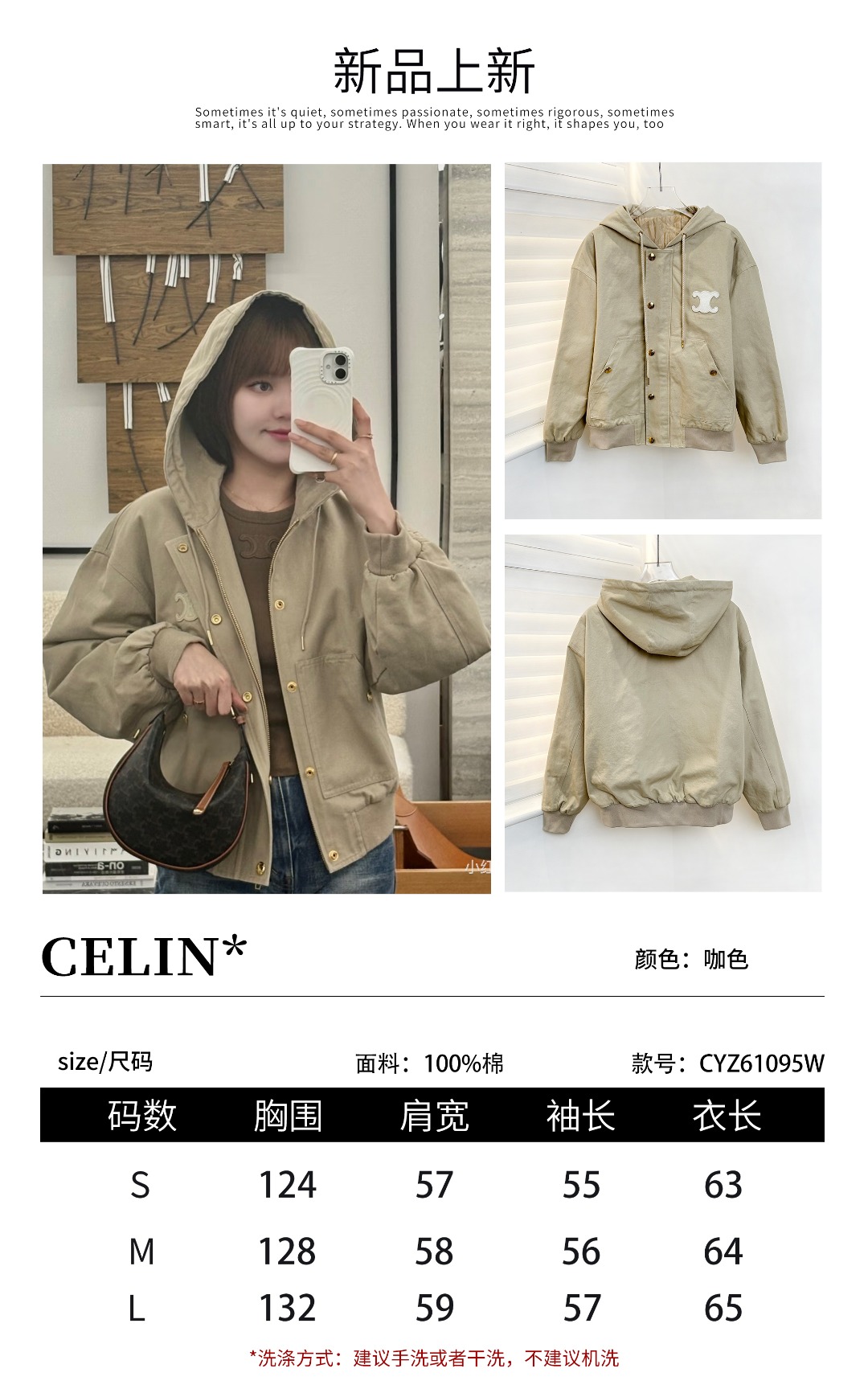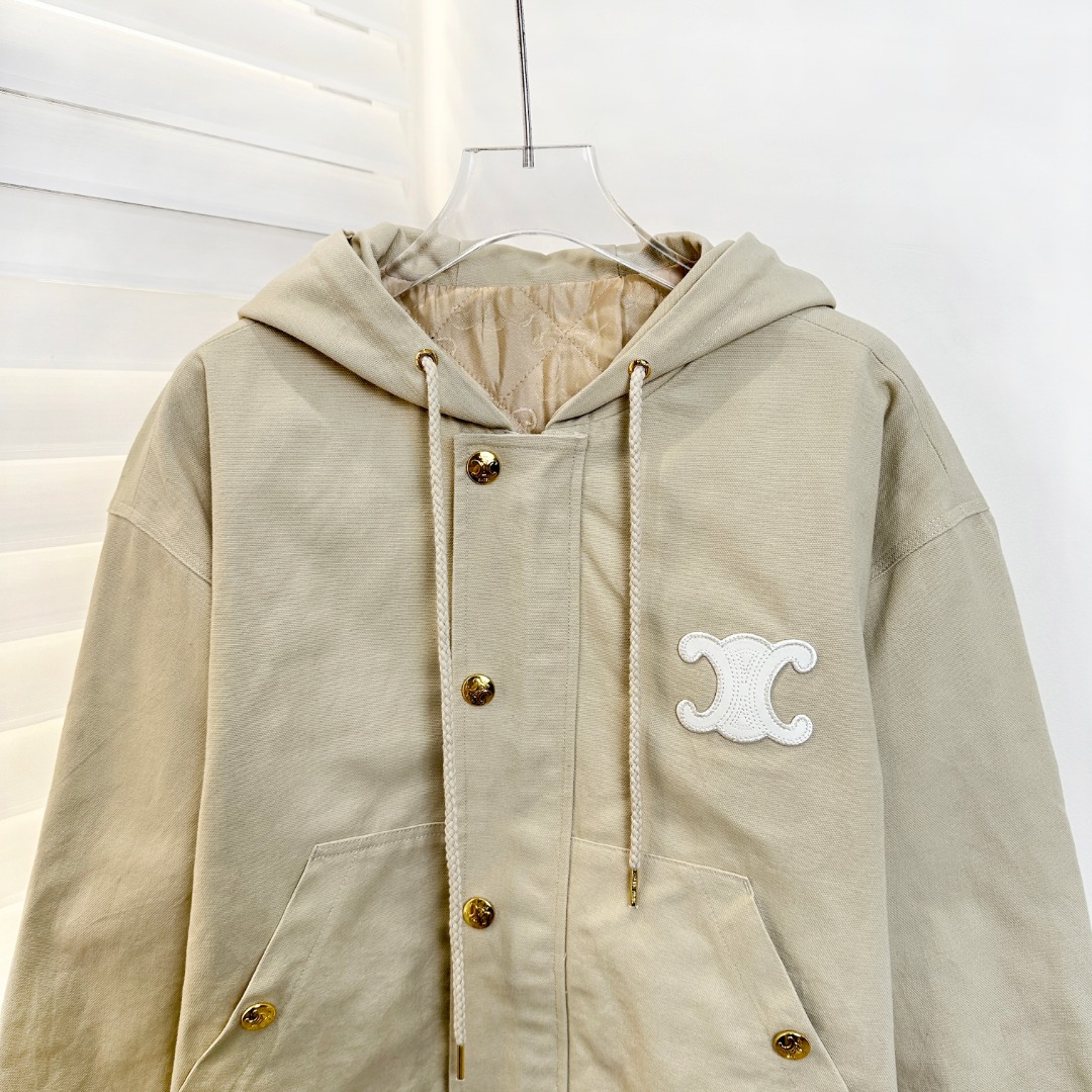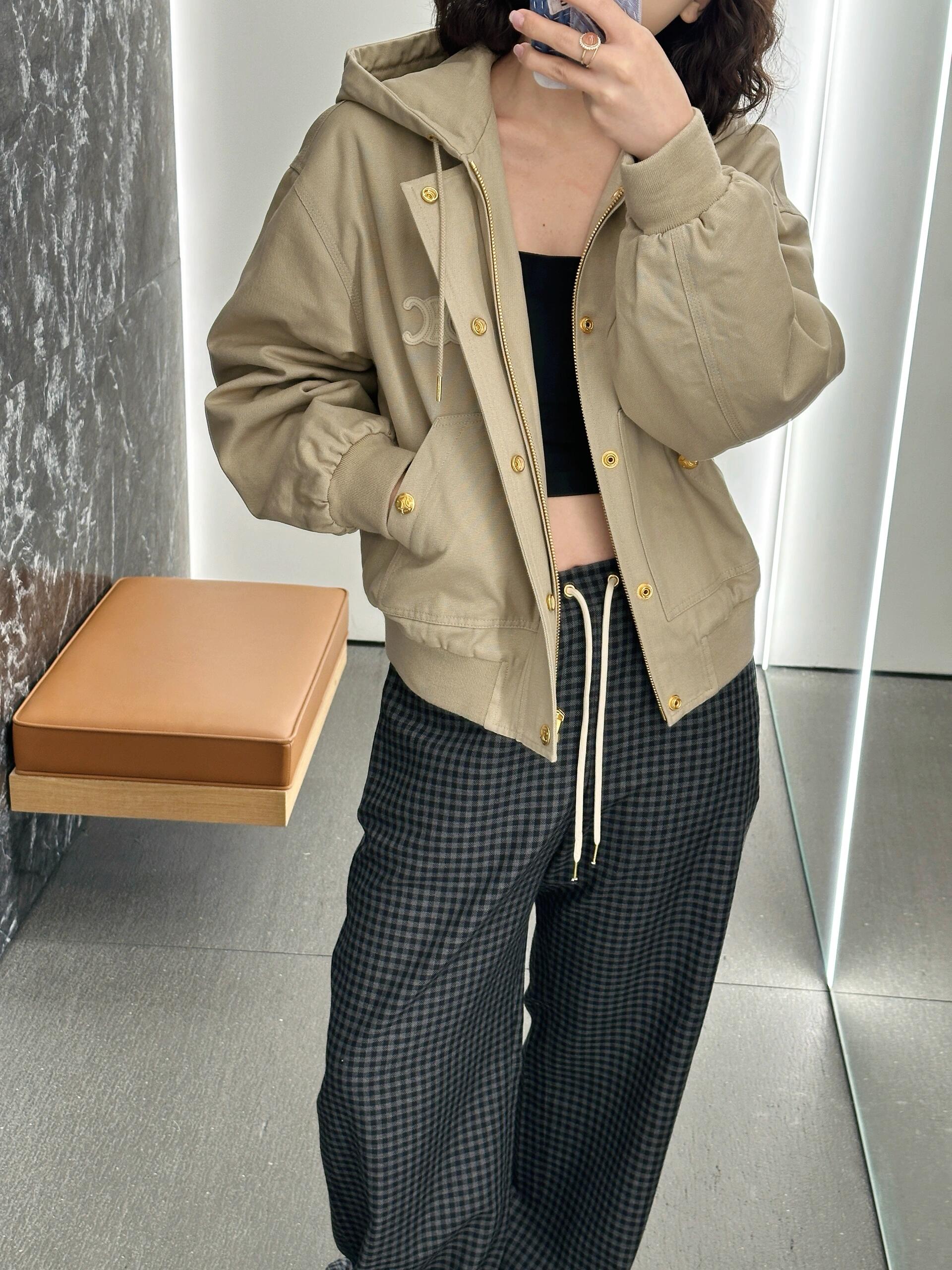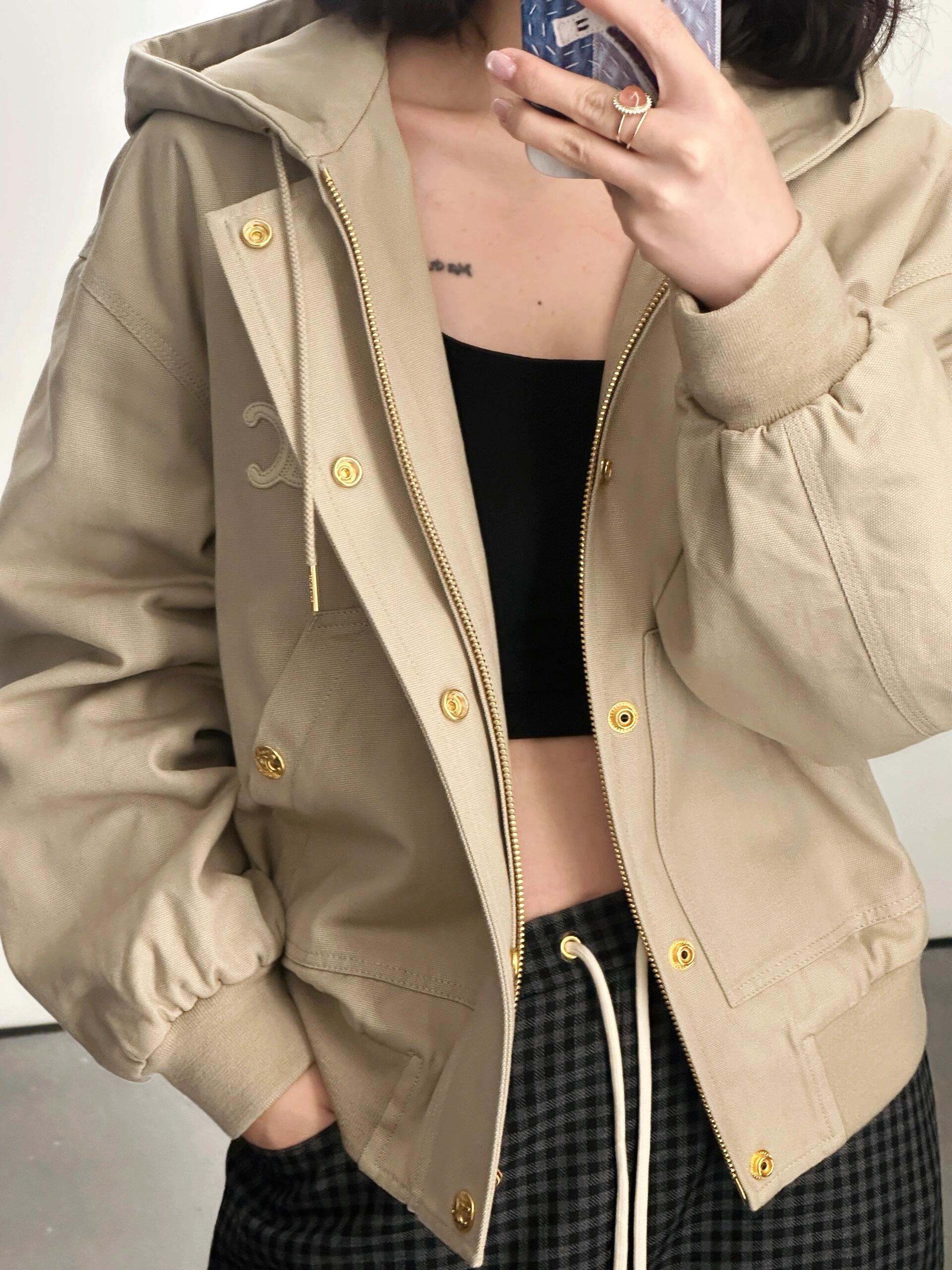 𝐂𝐄𝐋𝐈𝐍*|连帽夹克外套 25SS秋冬新款上新!连帽夹克,主打复古风,浅棕色调+金属纽扣,简约又有质感,正面条纹拼接+品牌刺绣,细节满分,连帽设计实用,休闲通勤都能轻松驾驭。