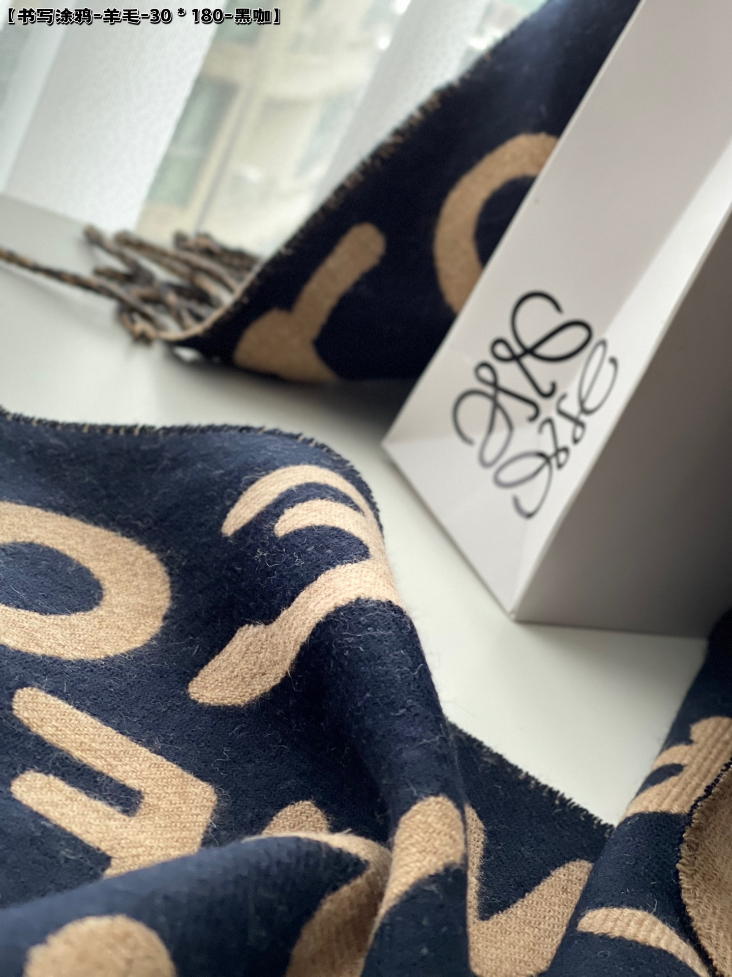 书写涂鸦 面料:羊毛 尺寸:30*180 颜色:蓝粉 蓝灰 黑咖 羊毛 肤感极佳 软软糯糯 涂鸦围巾,饰有Anagram图案。 涂鸦艺术风格 色彩简明 独特的色彩魅力 低调华贵 让人入眼就难以忘记 在寒冷的日子或温和的夜晚