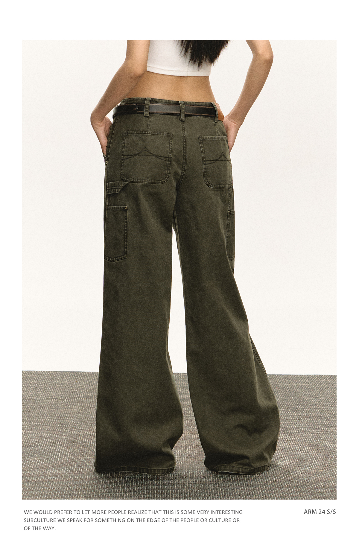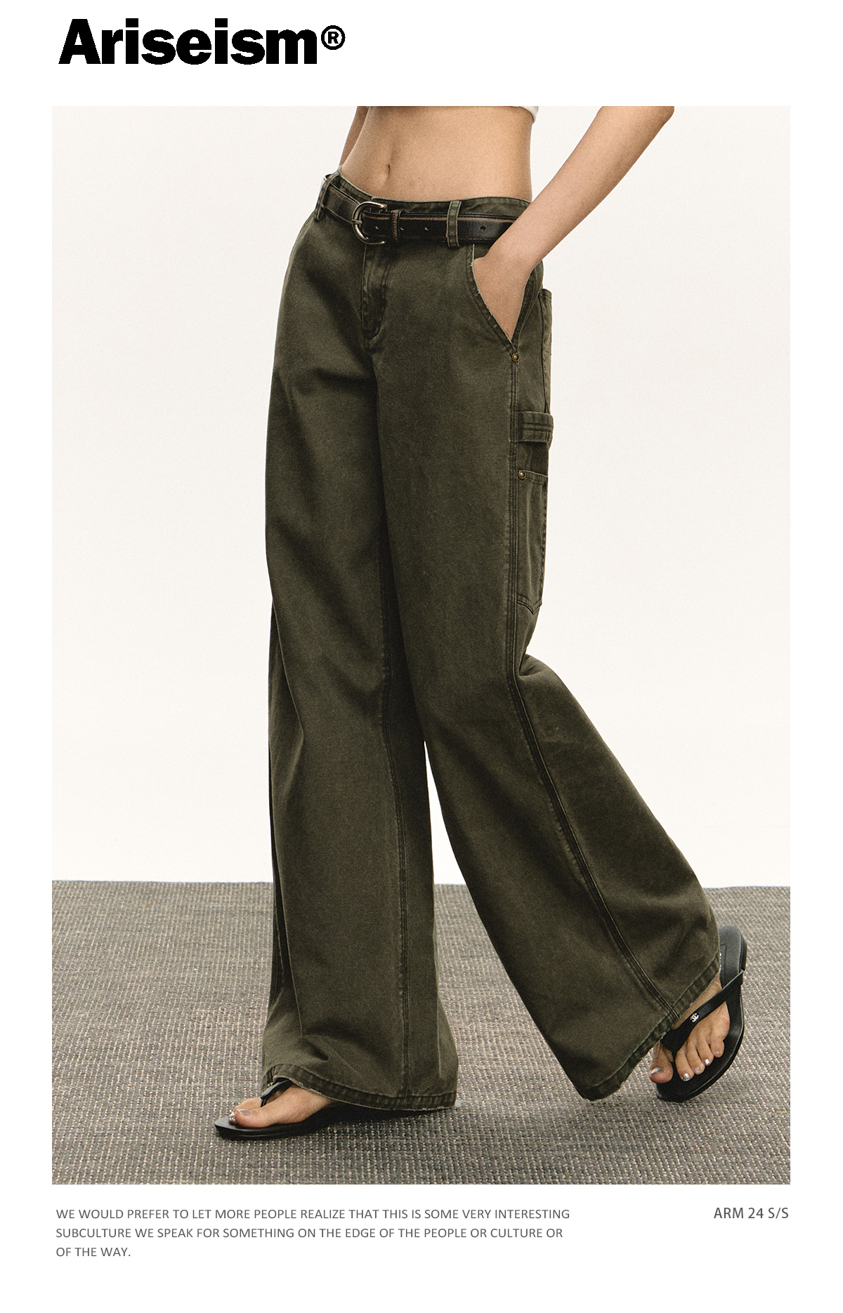 Ariseism 美式复古牛仔裤女秋季新款修身阔腿长裤子
