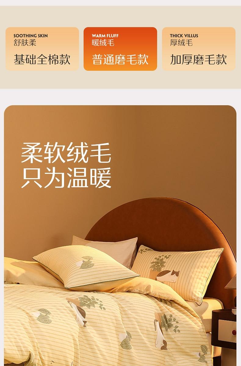 水星家纺 磨毛四件套加厚保暖床上用品秋冬天床单被套