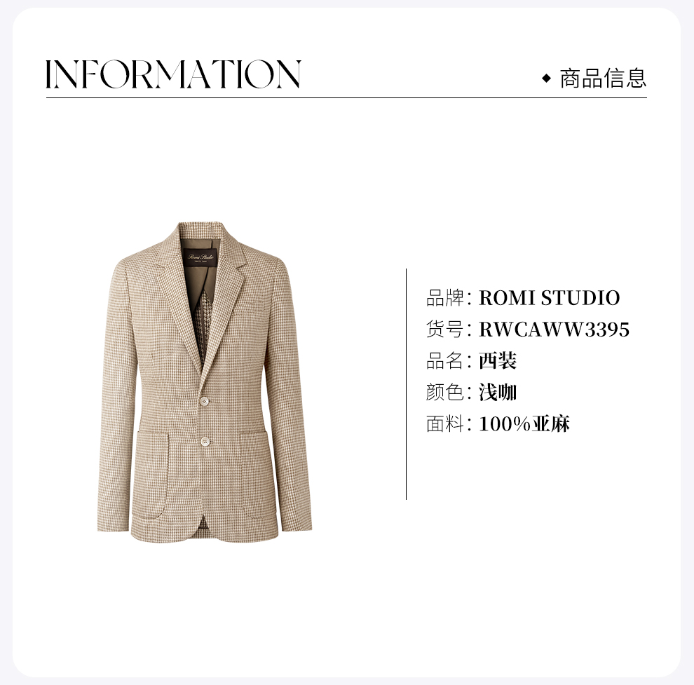 ROMI STUDIO"腔调老钱"亚麻挺括不易皱千鸟格纹西装 RWCAWW3395 【发货时间25-30天】