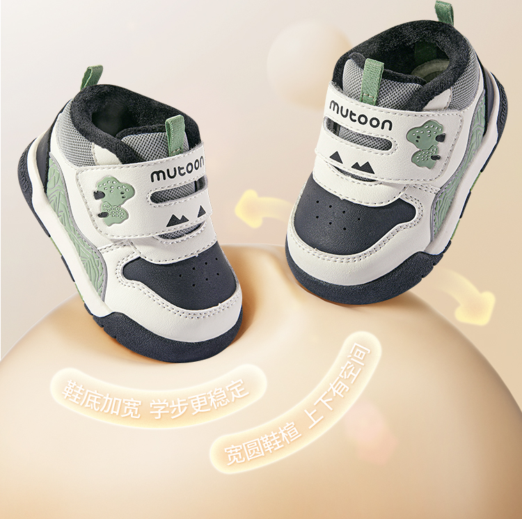 牧童2025冬季运动机能鞋新款高帮板鞋保暖加绒幼儿园鞋宝宝稳步鞋