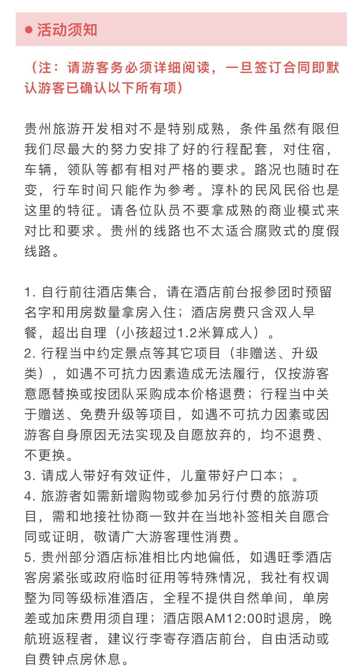 5.其他:"费用包含"中未列明费用;