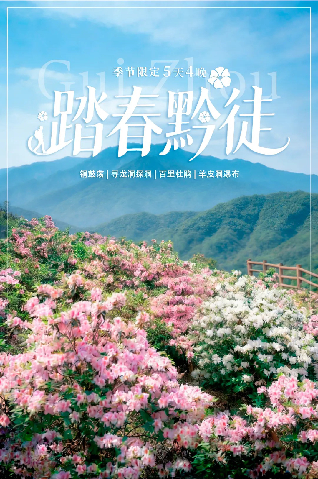 贵州|3.28-4.1季节限定一年一度赏杜鹃花5天4晚,更多排期:4.1-4.5,4.11-4.15,百里杜鹃/铜鼓荡/寻龙洞探洞、羊皮洞瀑布,踏春黔徒轻徒步精致小团