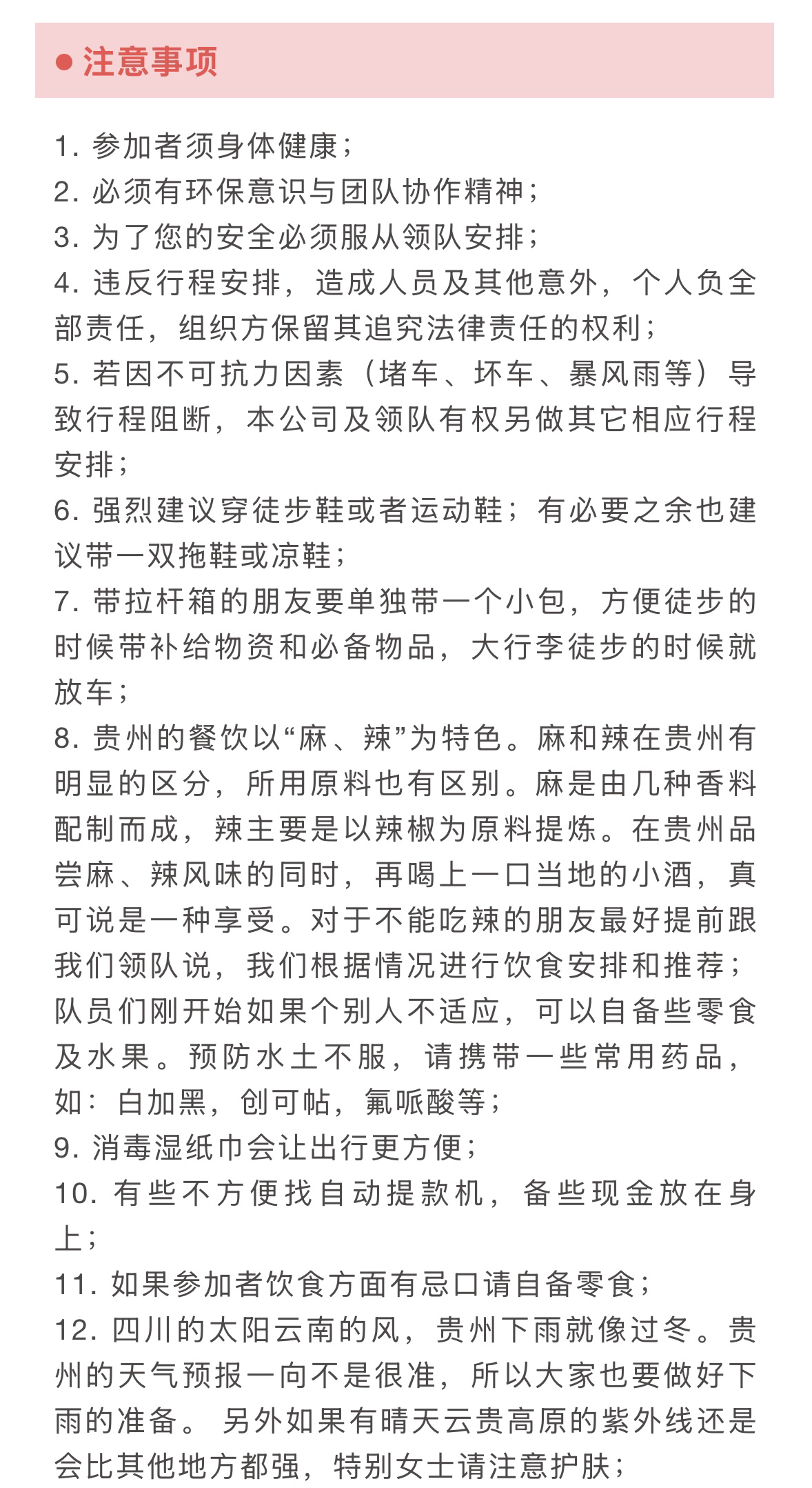 3.活动提供装备中说明的:头盔/头灯/探洞服/登山杖/户外小背包各一件免费租借(用后回收,如需要双杖请提前告知),赠送户外魔术头巾(不回收)。
