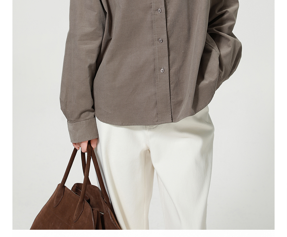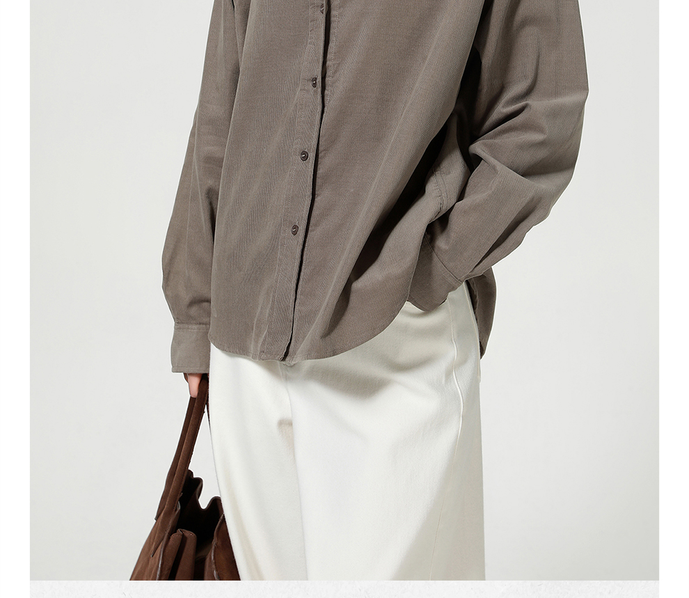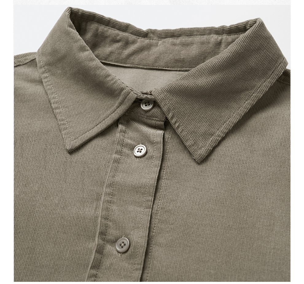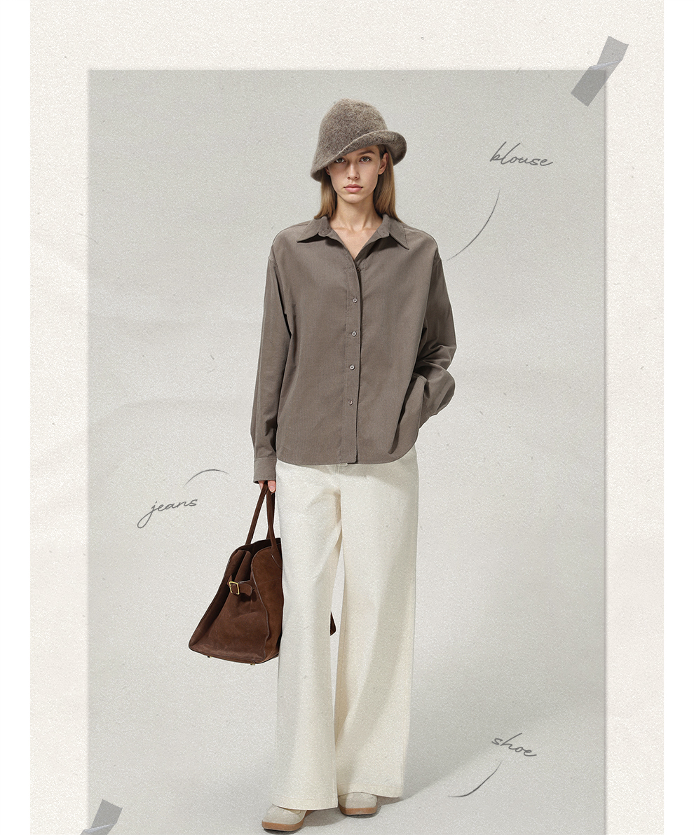 ROMI STUDIO“松弛复古”100%棉灯芯绒雾感廓形翻领衬衣 RWCSSM1697