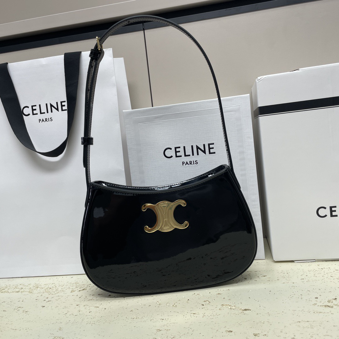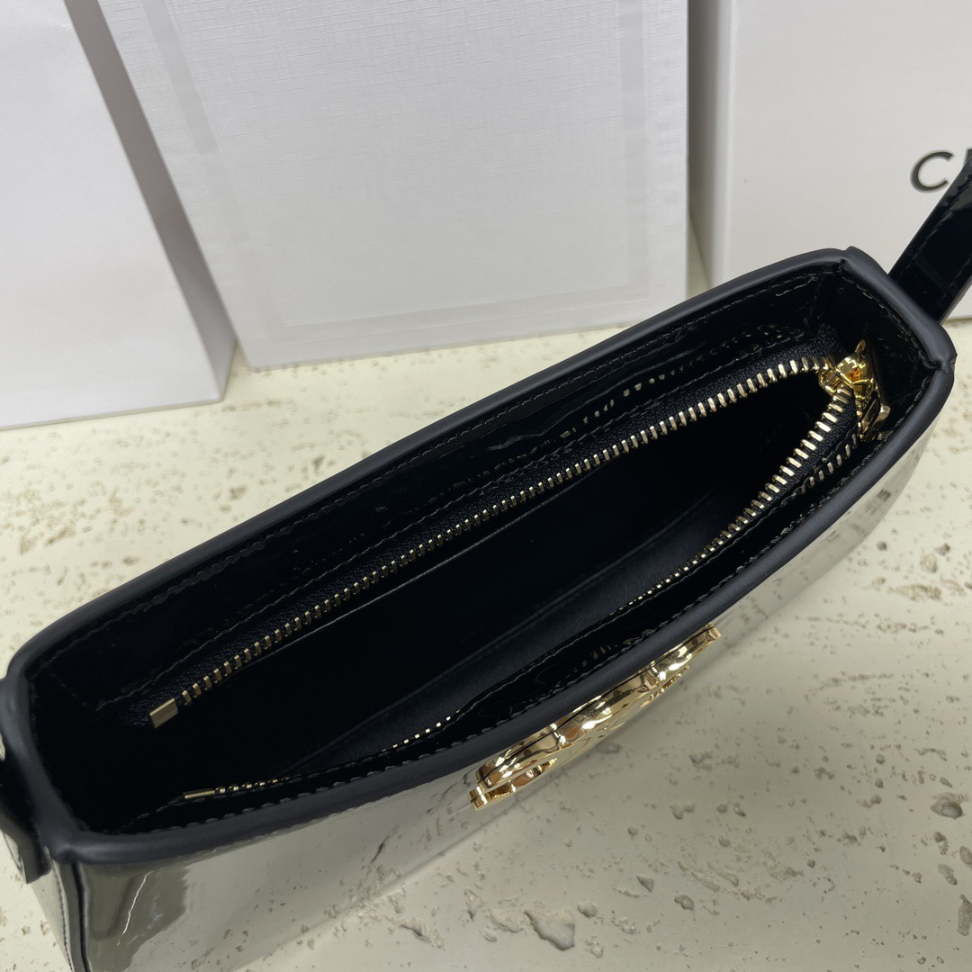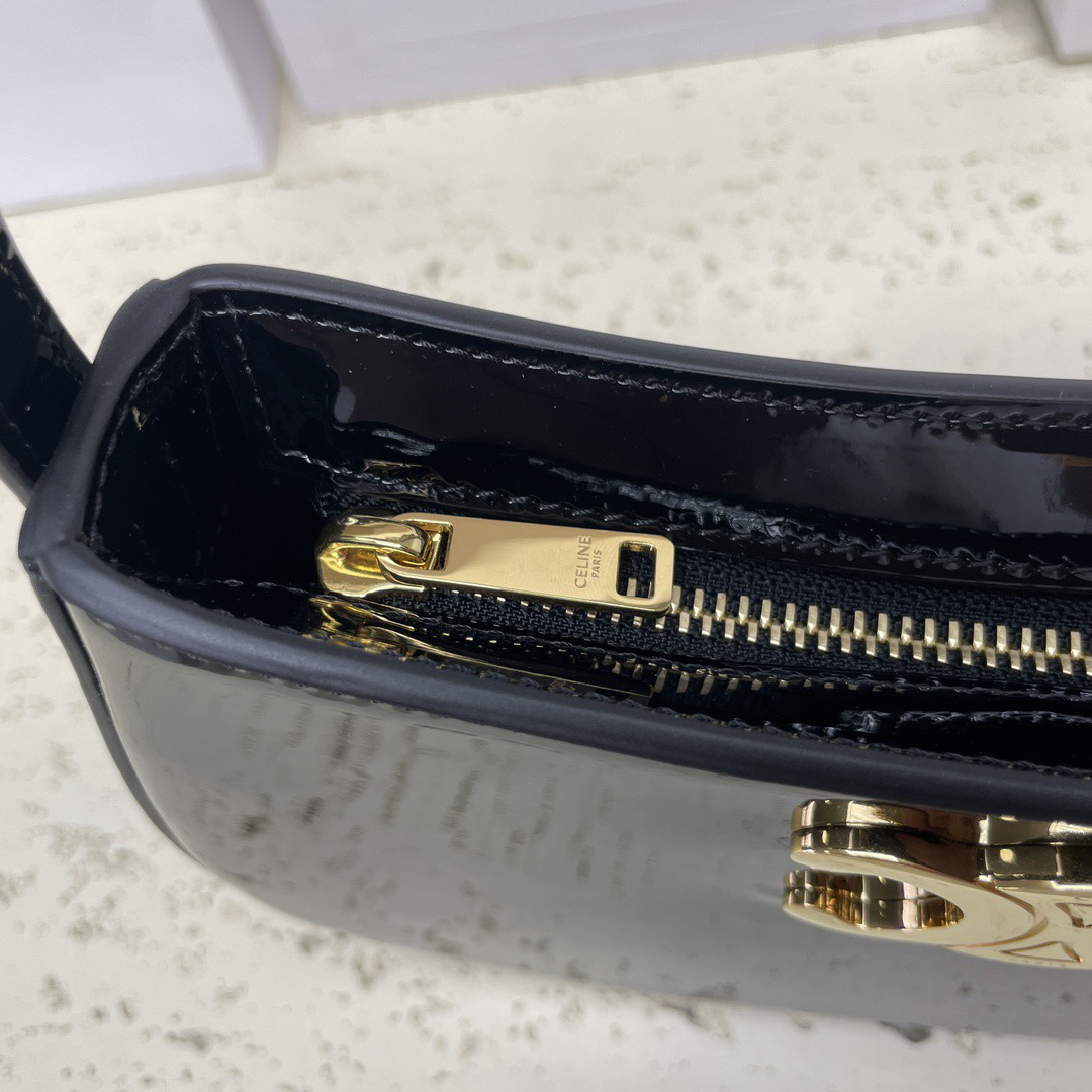CELINE赛琳 TILLY 品牌徽标Logo拉链开合 漆面牛皮革 手提单肩包 女款 黑色(HH)