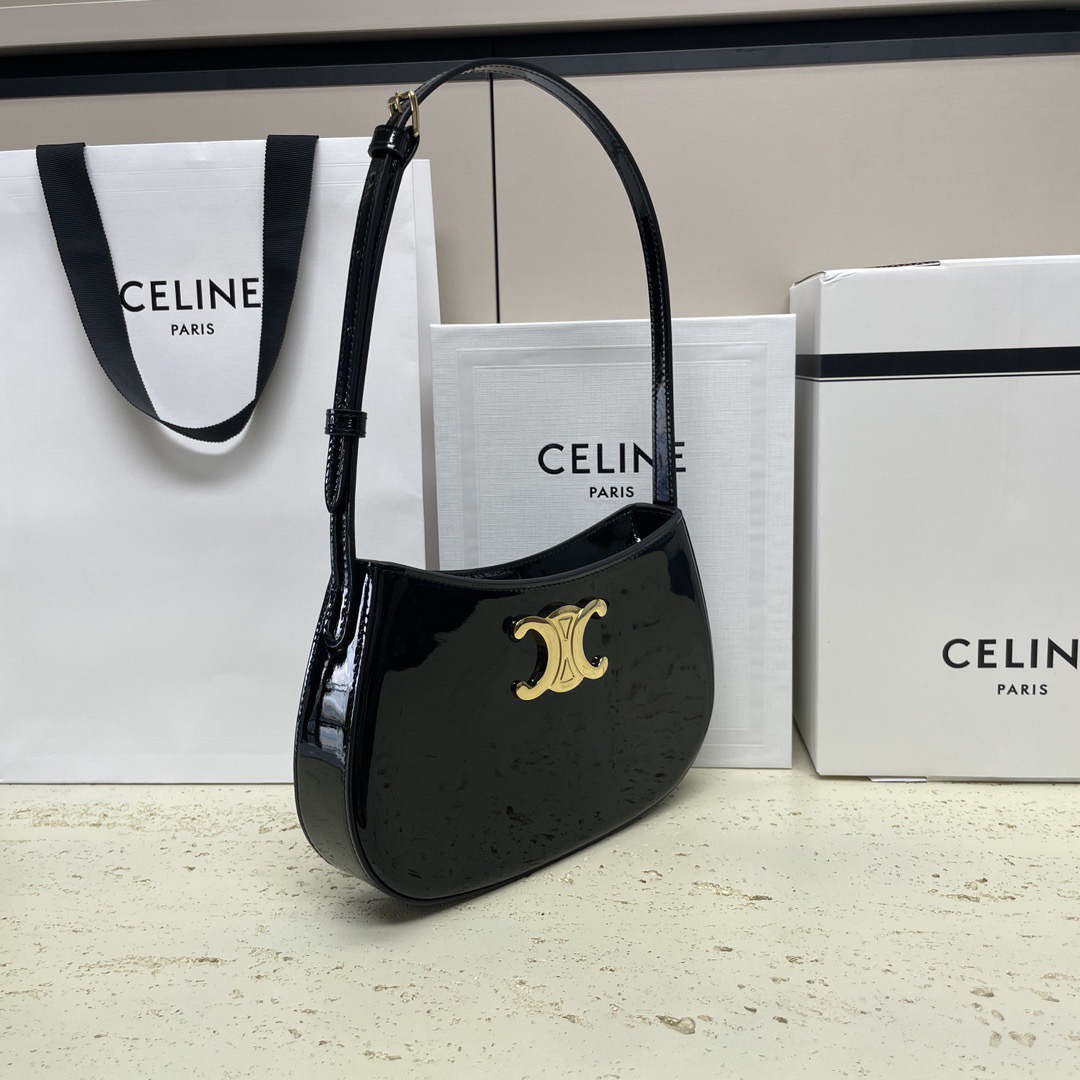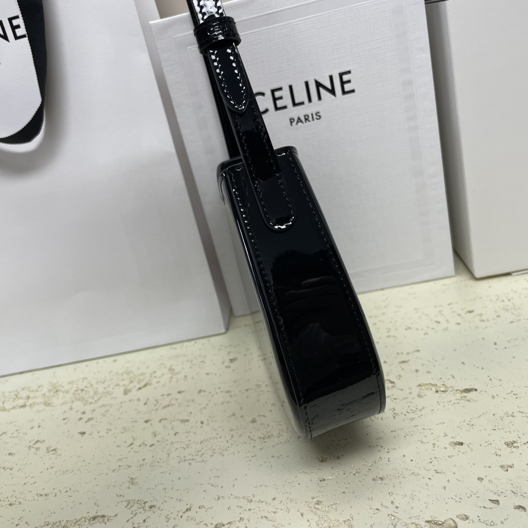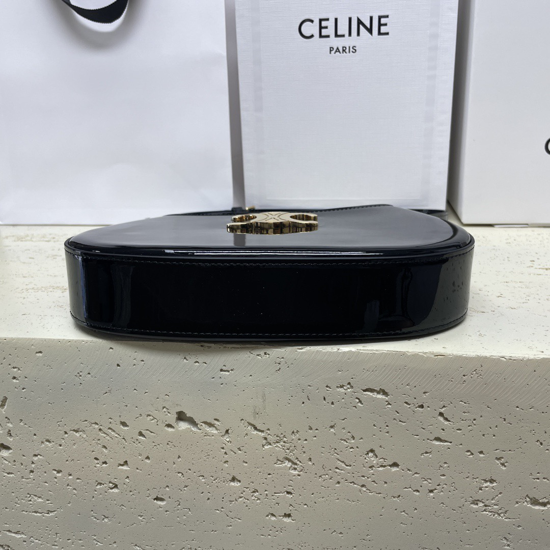 CELINE赛琳 TILLY 品牌徽标Logo拉链开合 漆面牛皮革 手提单肩包 女款 黑色(HH)