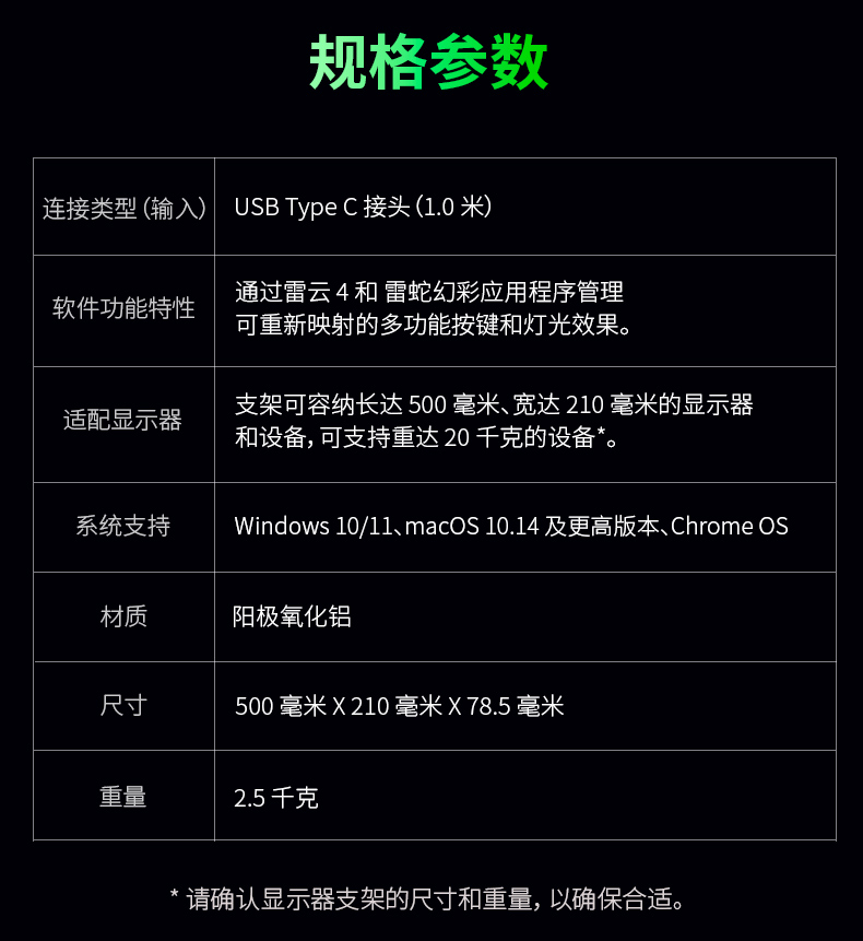Razer雷蛇显示器增高架幻彩版【雷蛇官方直营,2年有限质保】