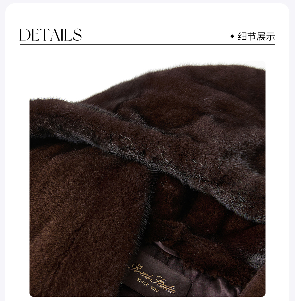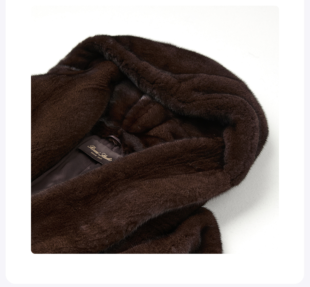 ROMI STUDIO“丹麦天鹅绒“咖本色水貂连帽轻奢皮毛外套RWCWWG5272