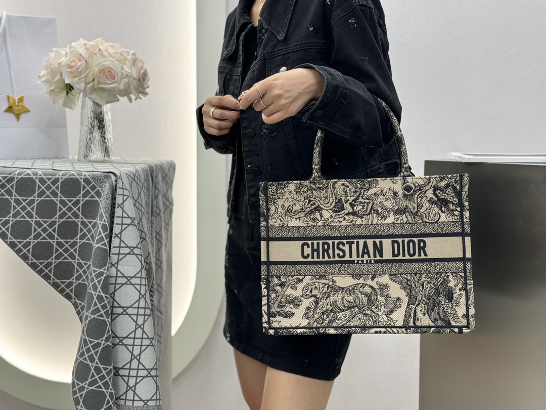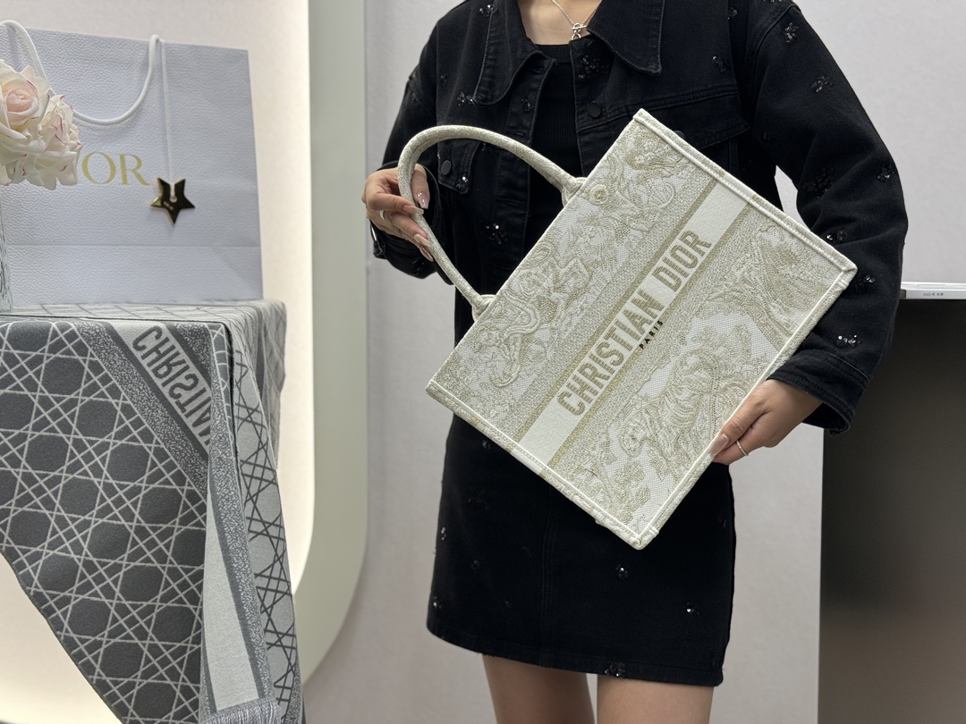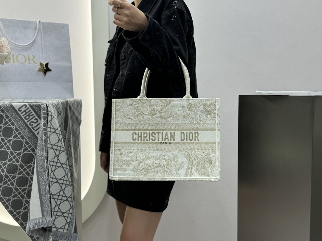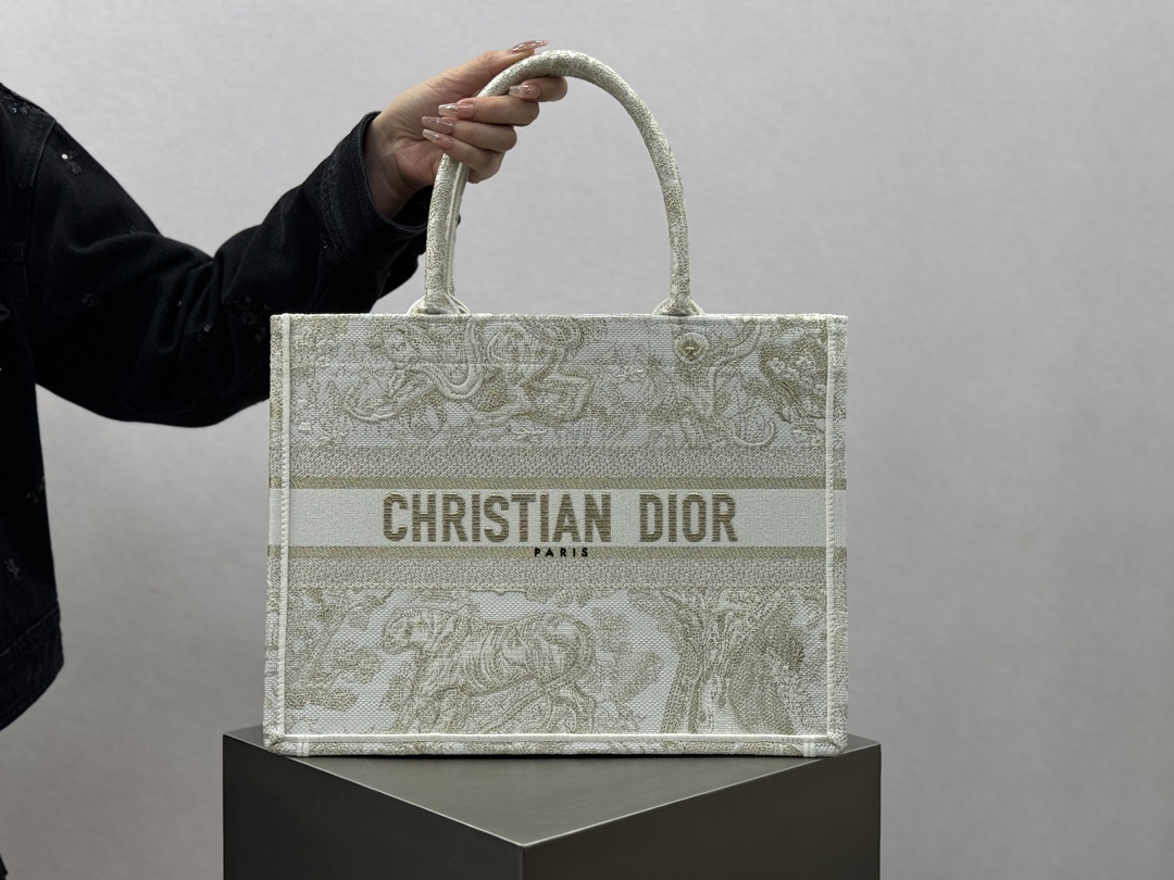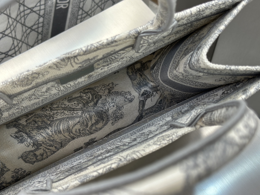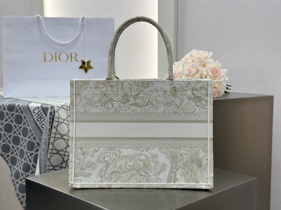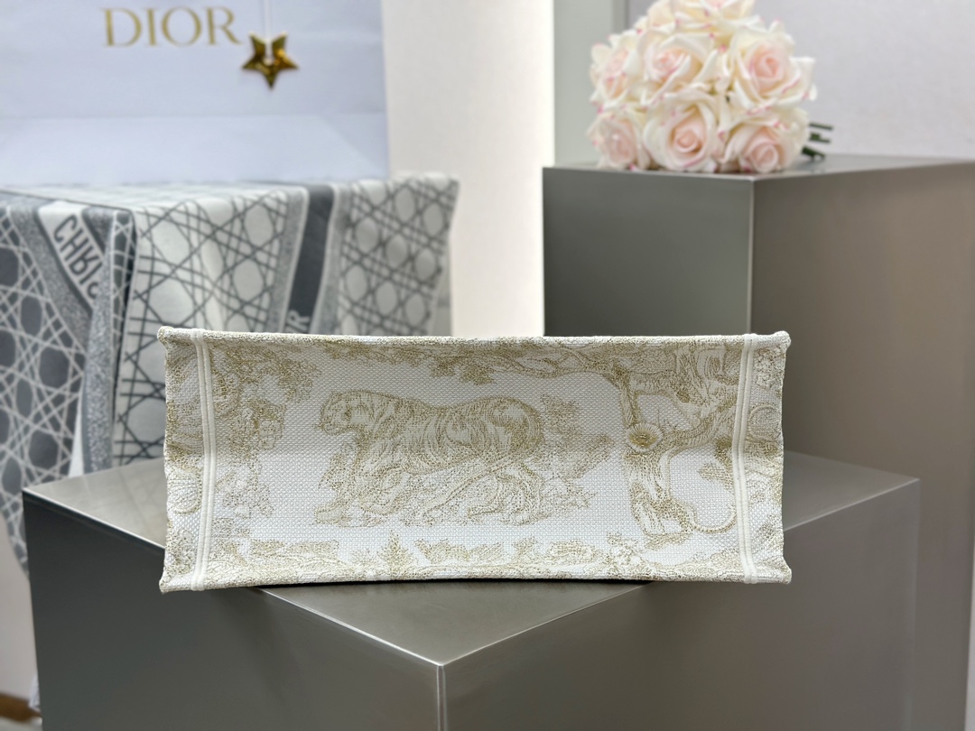 𝗗𝗶𝗼𝗿 𝗕𝗼𝗼𝗸 𝗧𝗼𝘁𝗲 中号托特❗ 白金老虎中号现货🔥 动物园系列𝒕𝒊𝒈𝒆𝒓搭配金线刺绣✨ 白金配色温柔梦幻 即有奢华感又具时尚。