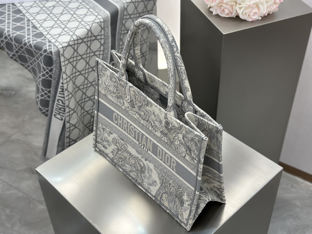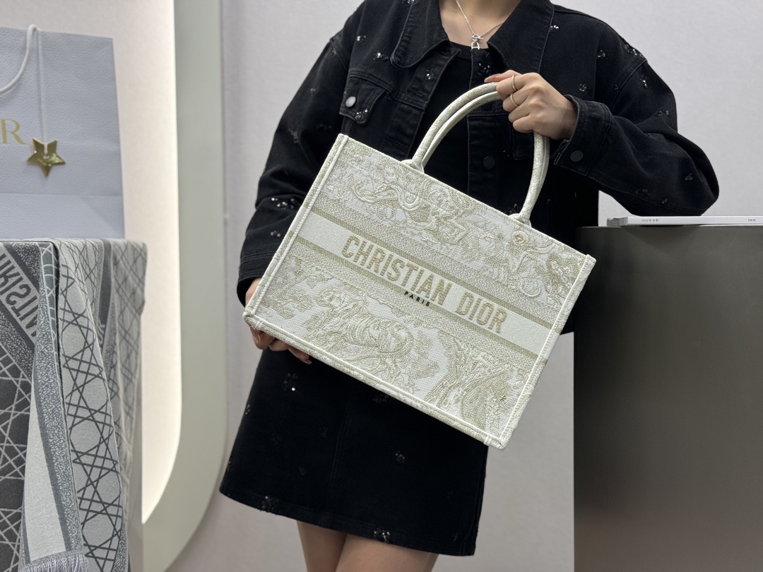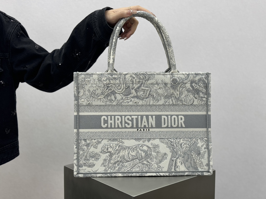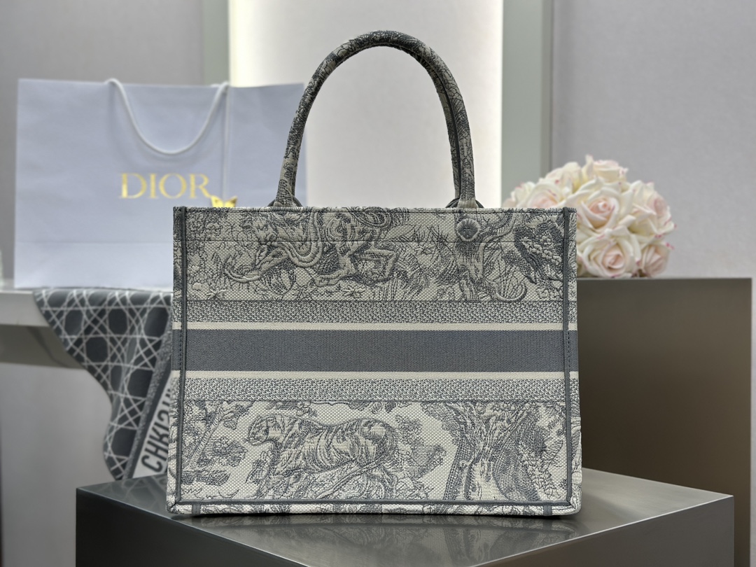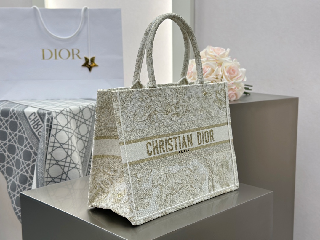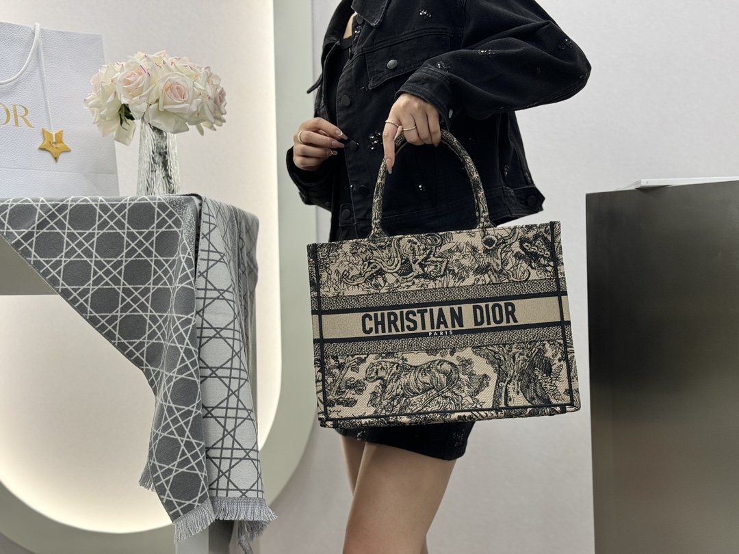 𝗗𝗶𝗼𝗿 𝗕𝗼𝗼𝗸 𝗧𝗼𝘁𝗲 中号托特❗ 白金老虎中号现货🔥 动物园系列𝒕𝒊𝒈𝒆𝒓搭配金线刺绣✨ 白金配色温柔梦幻 即有奢华感又具时尚。