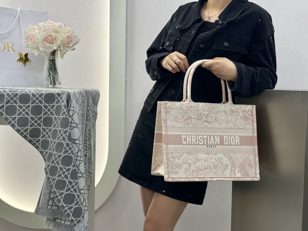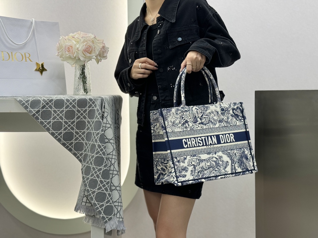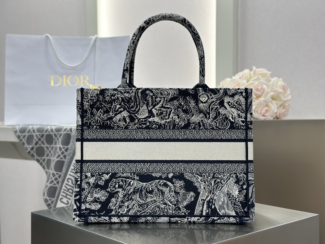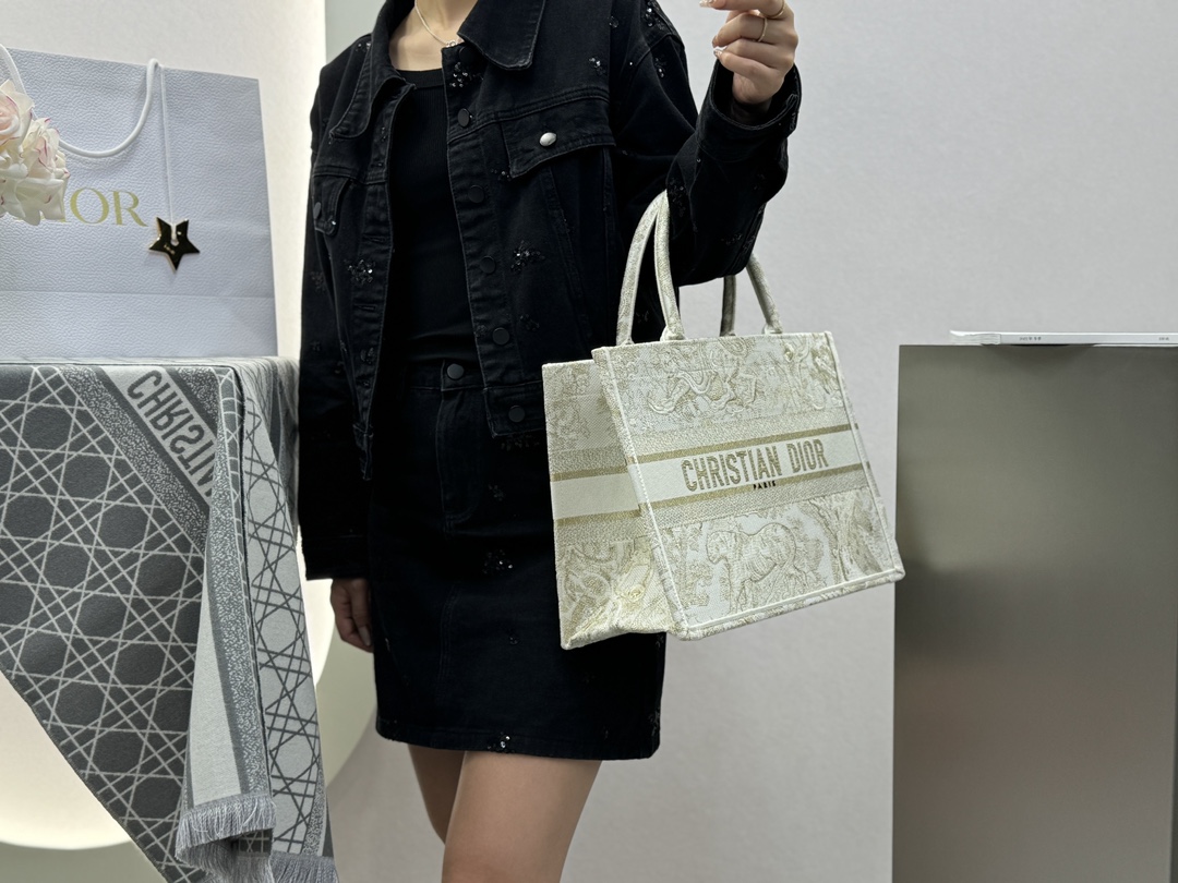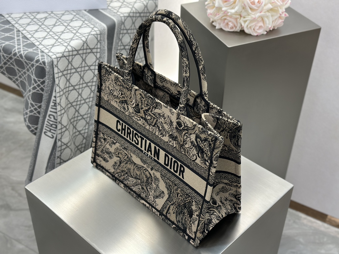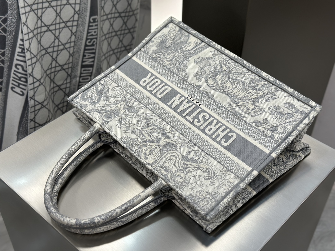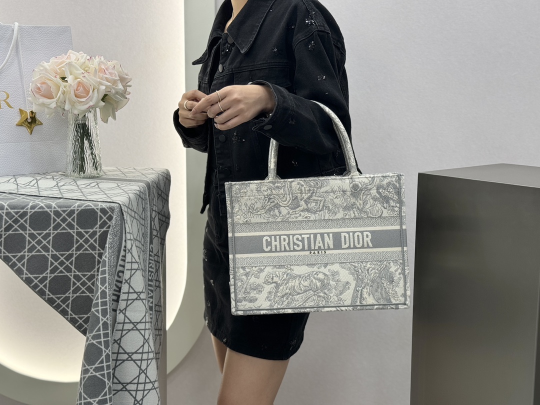 𝗗𝗶𝗼𝗿 𝗕𝗼𝗼𝗸 𝗧𝗼𝘁𝗲 中号托特❗ 白金老虎中号现货🔥 动物园系列𝒕𝒊𝒈𝒆𝒓搭配金线刺绣✨ 白金配色温柔梦幻 即有奢华感又具时尚。
