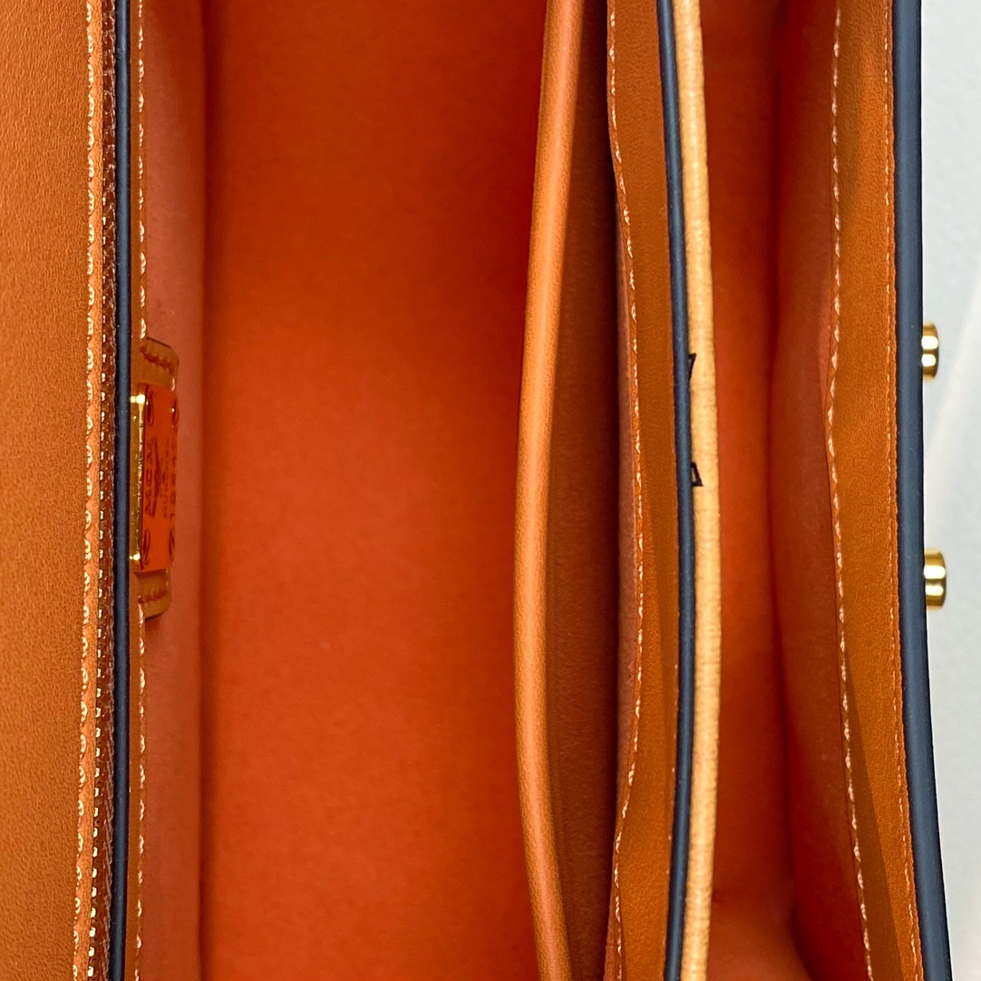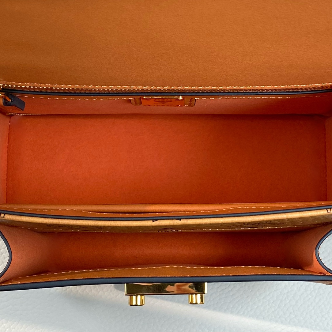 这款经典挎包是一款精致的配饰 可为您的造型增添优雅气质。采用经典Visetos材料制成 其设计的点睛之笔在于饰有雕花月桂叶锁扣的前翻盖设计 内部空间充裕 设有两个风琴式隔层 一个内侧拉链口袋 整体饰以金色调五金件 精致无比。