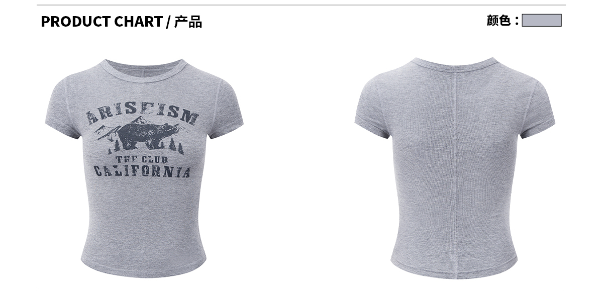 Ariseism 美式复古灰色圆领印花短袖t恤女夏新款辣妹修身显瘦上衣