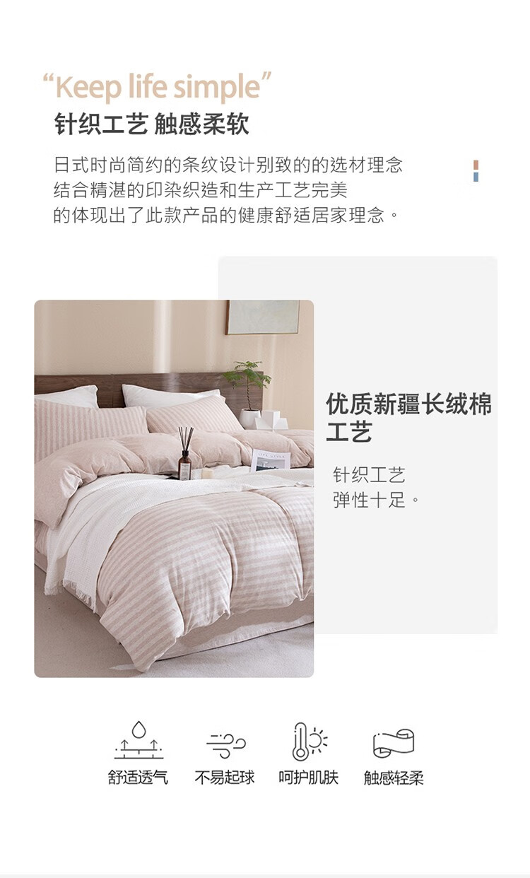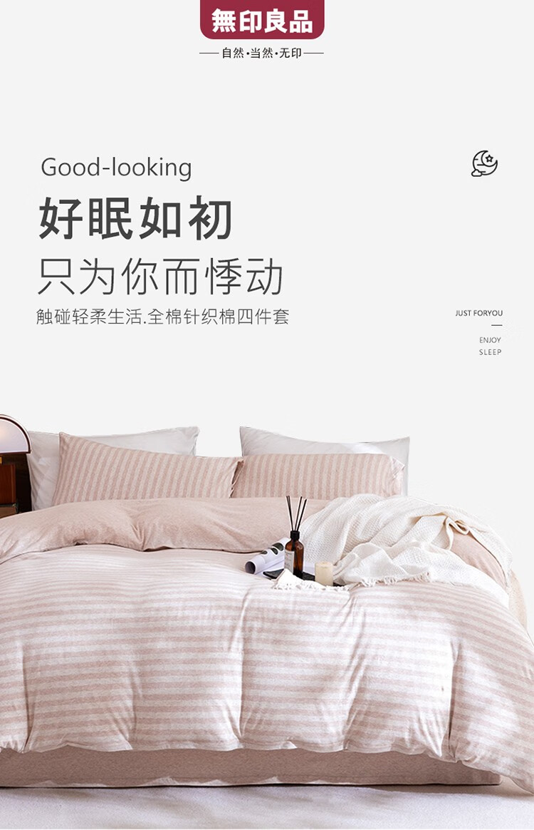 無印全棉针织棉四件套 摩登风尚 MUJI-TJ23-16 粉色 200*230cm